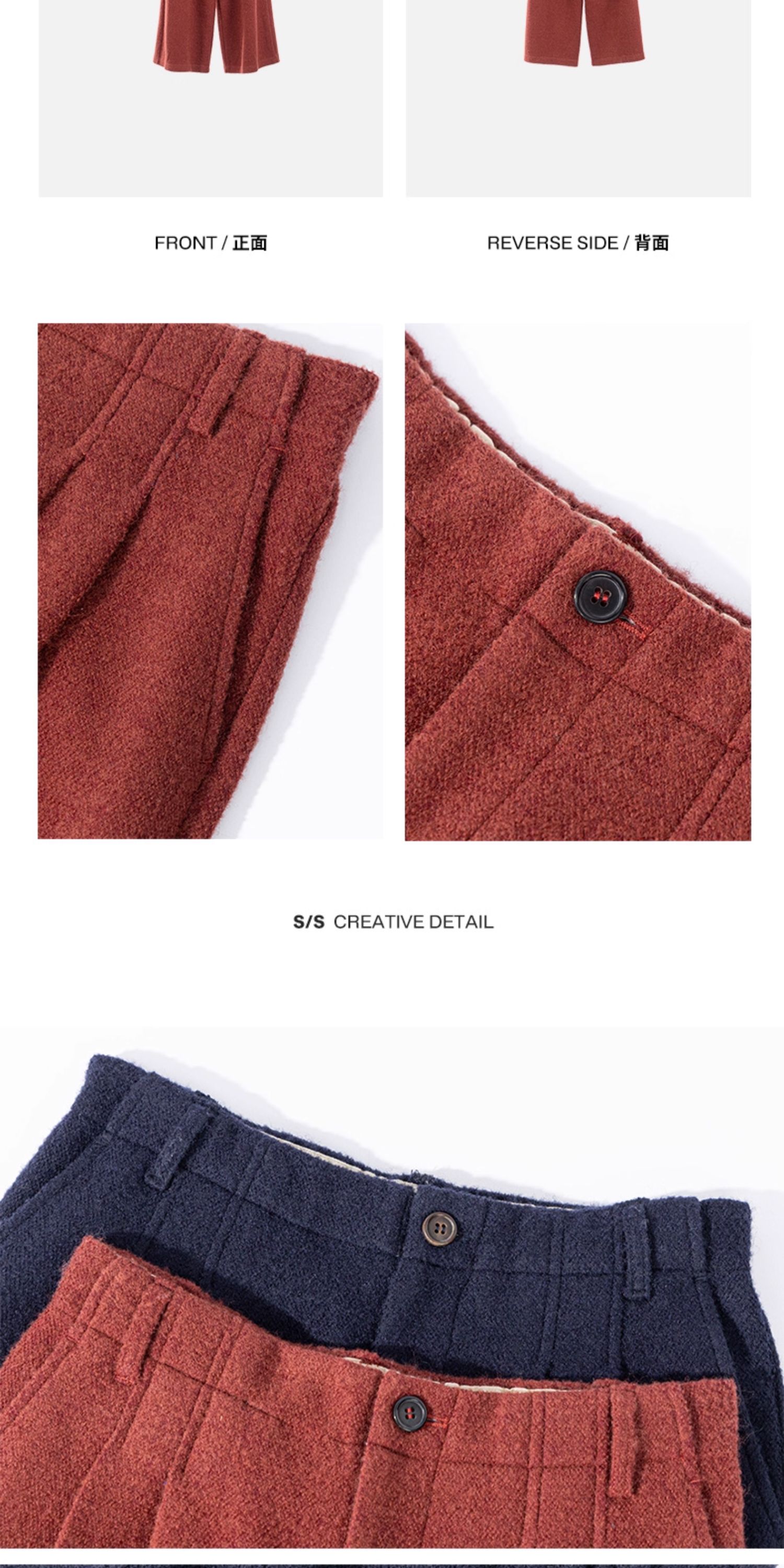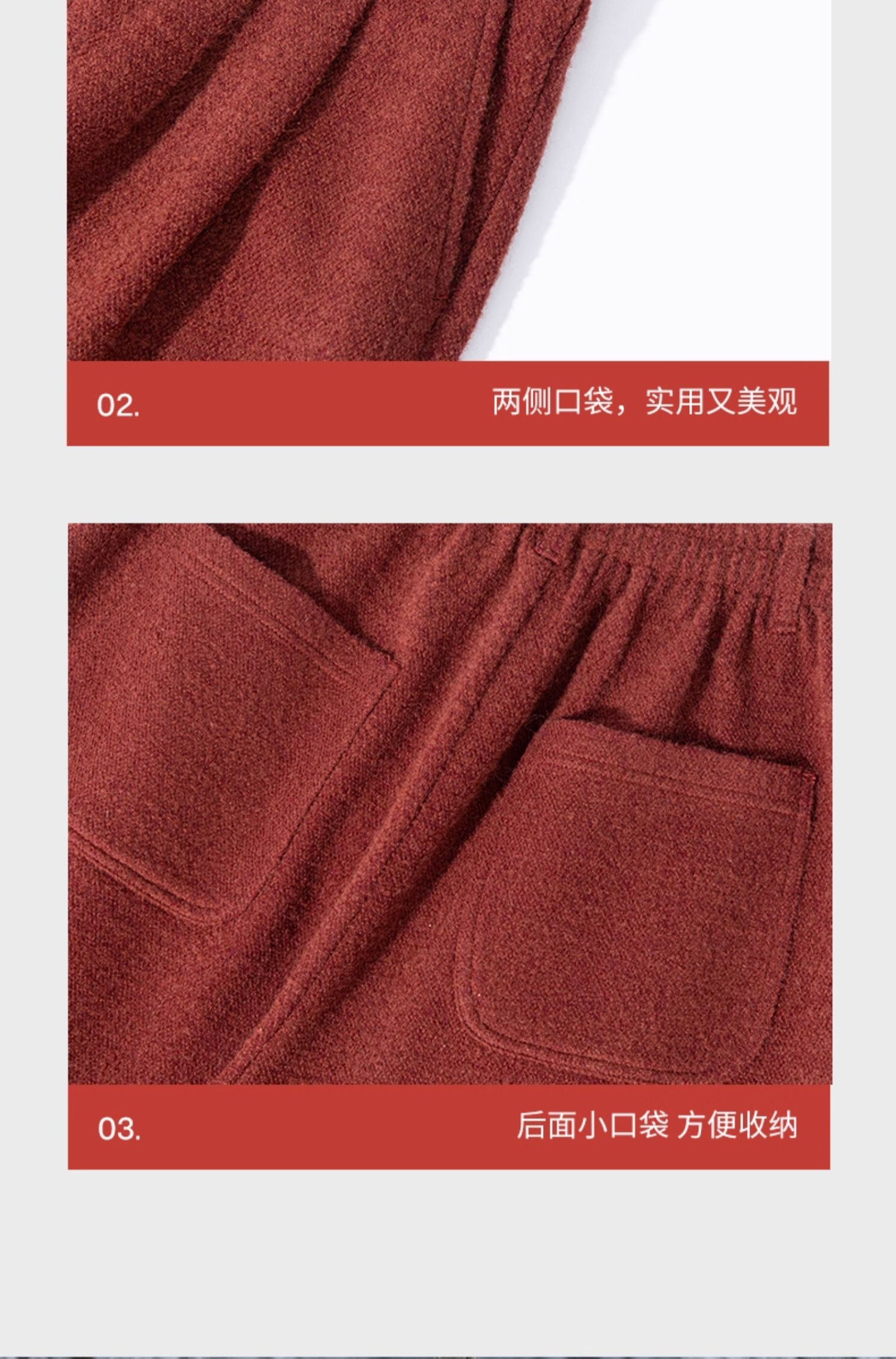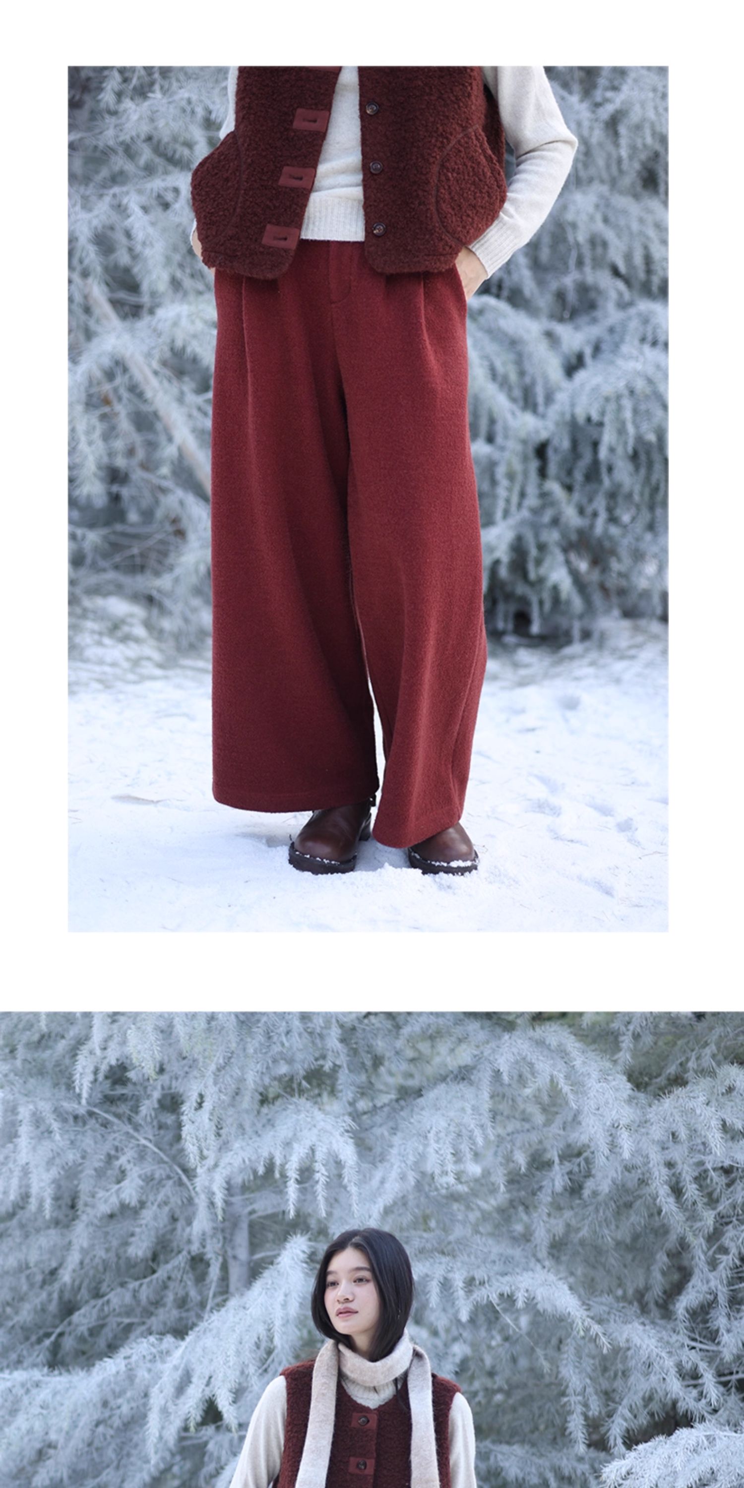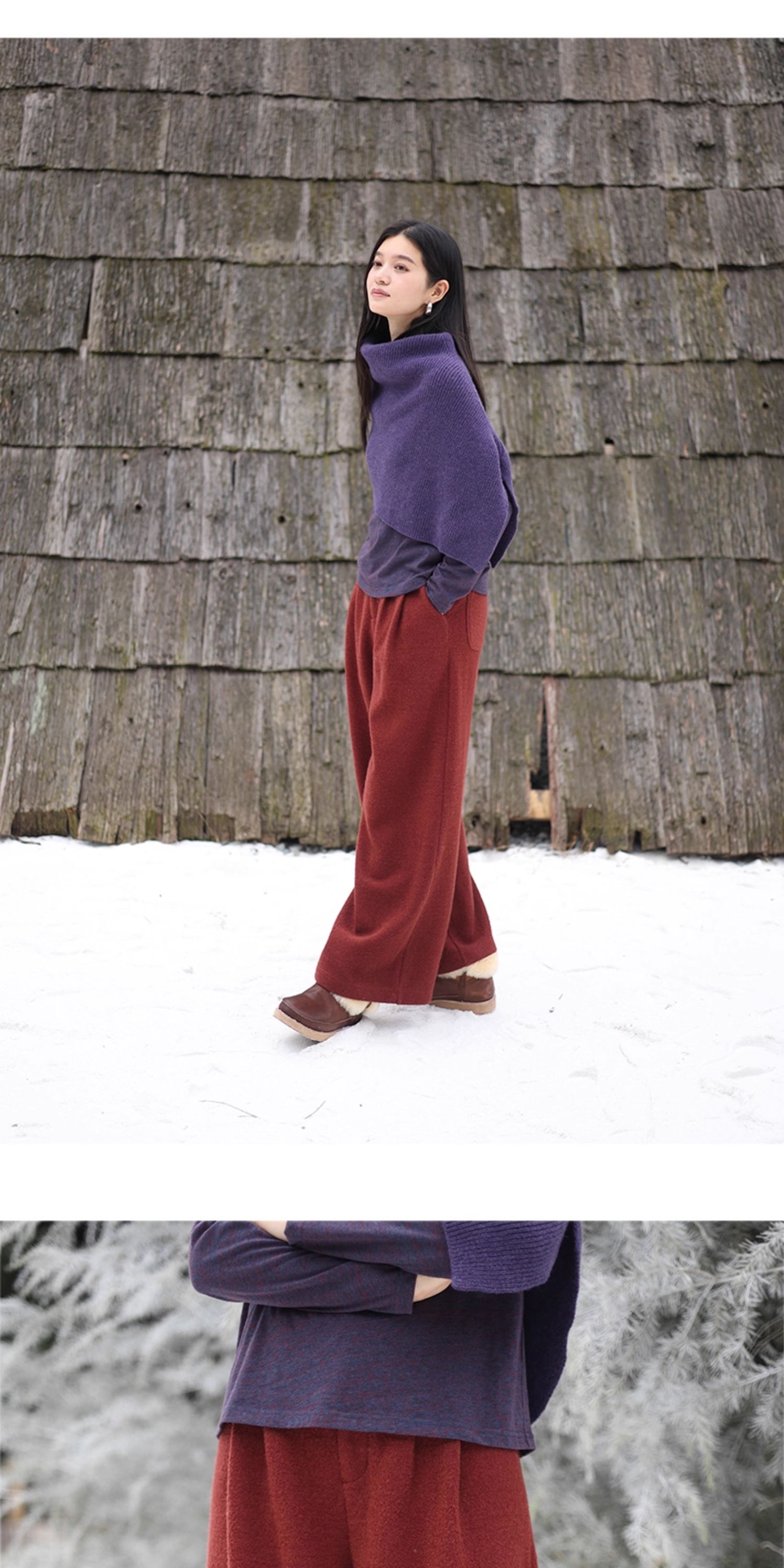 绽放726朵/热红酒·羊毛混纺针织毛呢半腰松紧捏褶休闲直筒长裤
