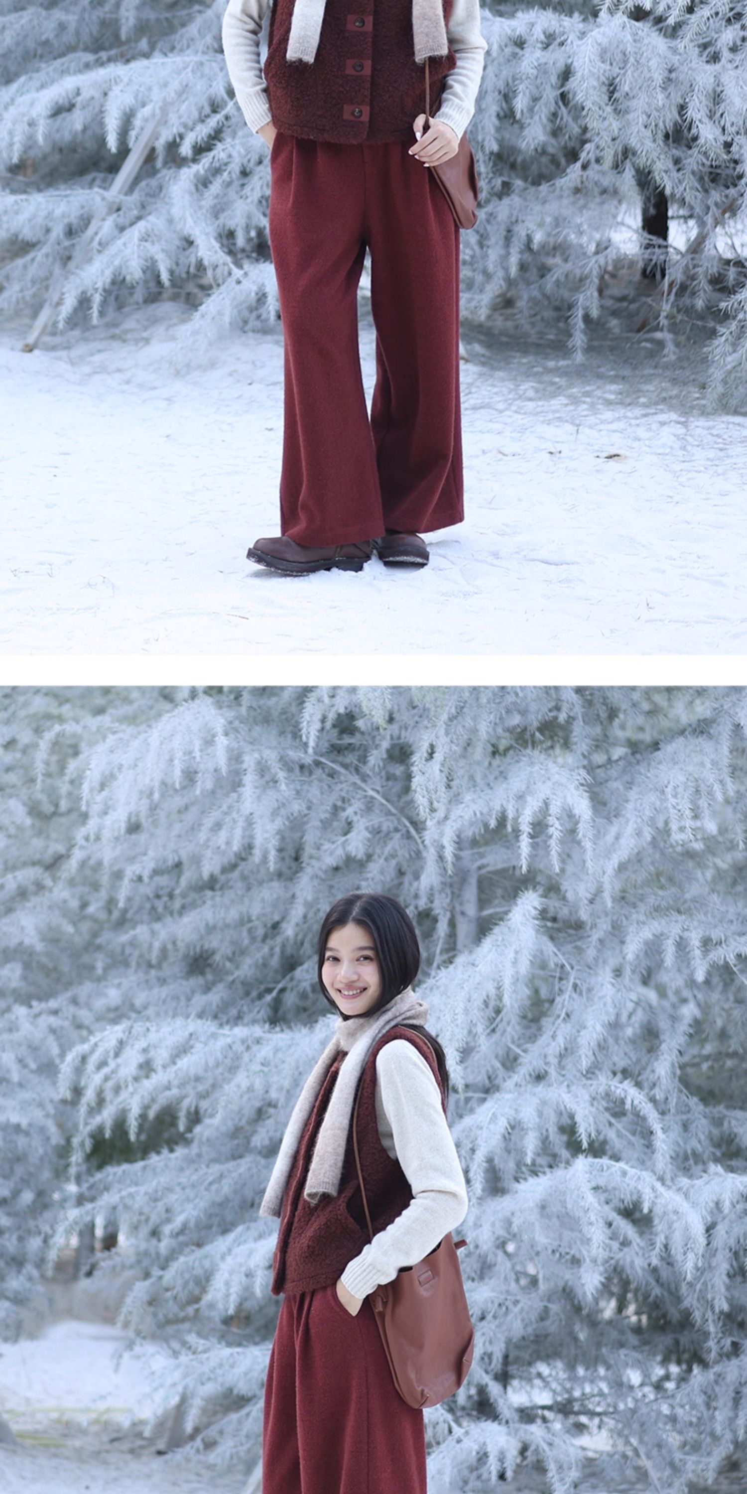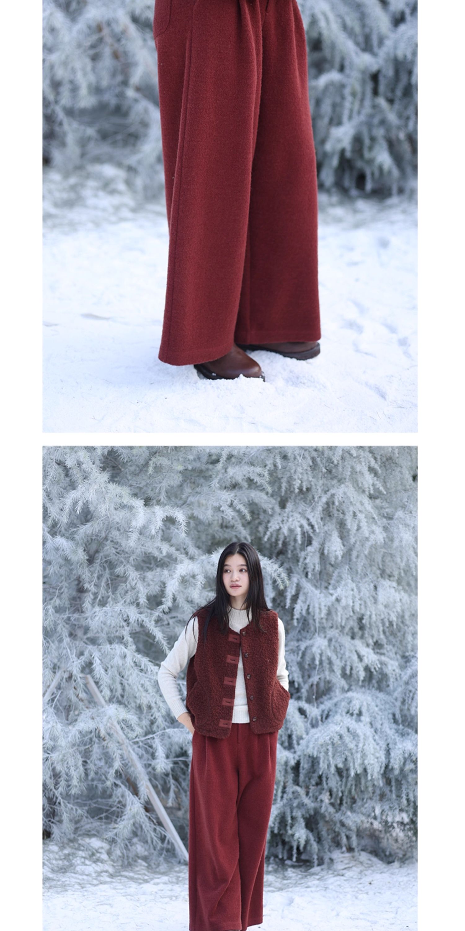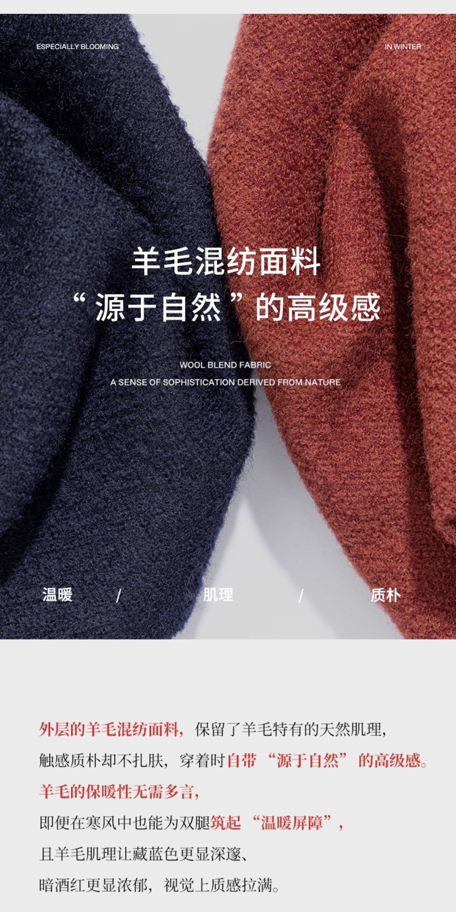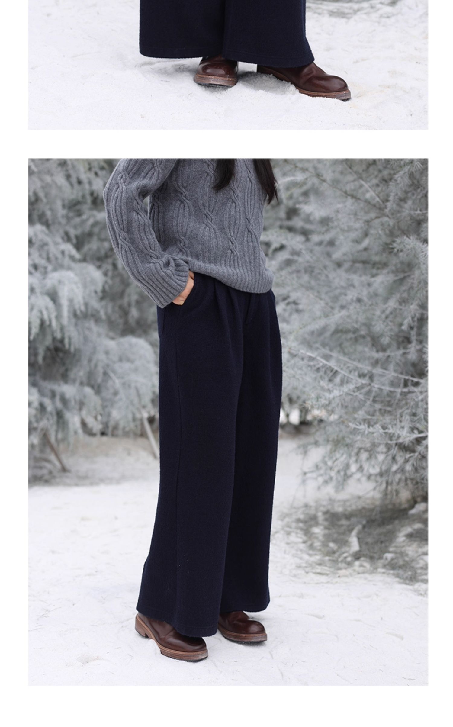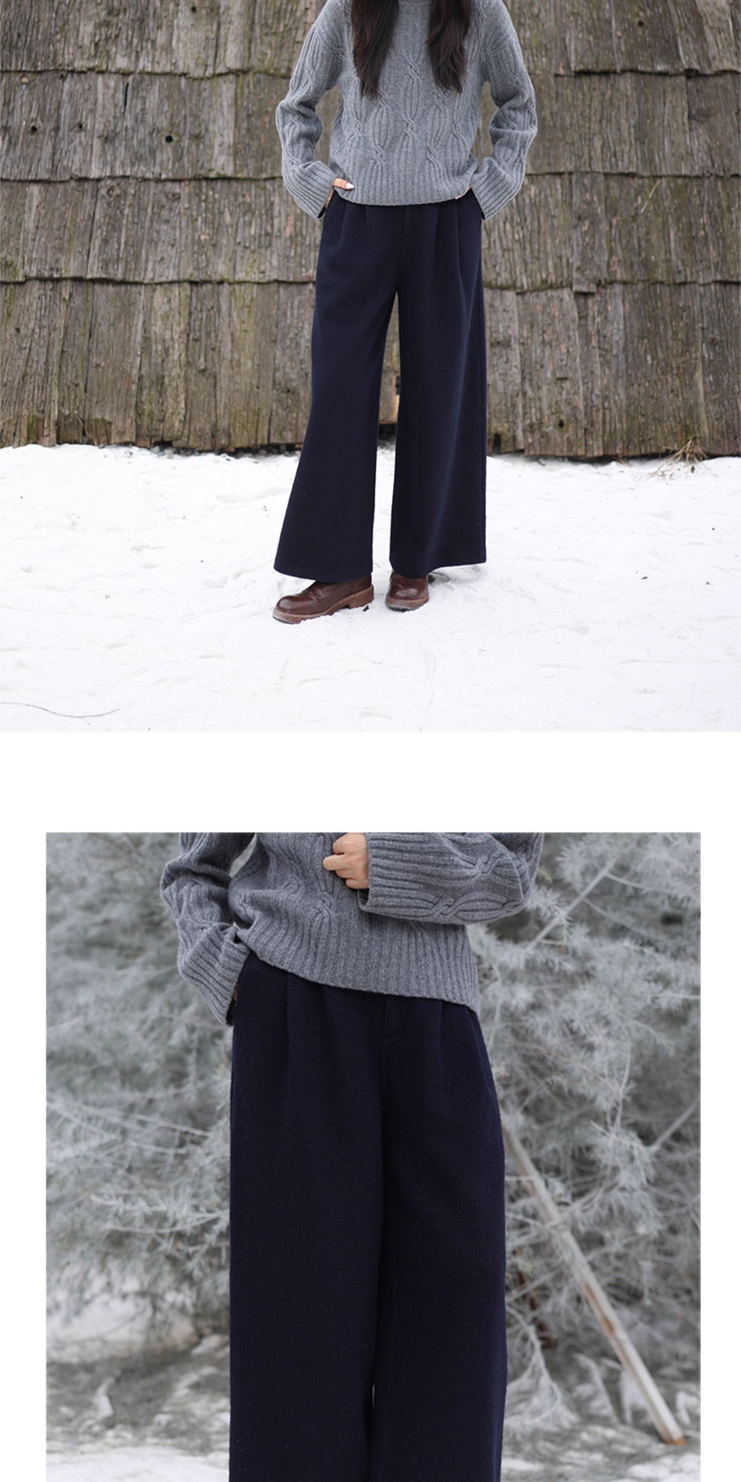 绽放726朵/热红酒·羊毛混纺针织毛呢半腰松紧捏褶休闲直筒长裤