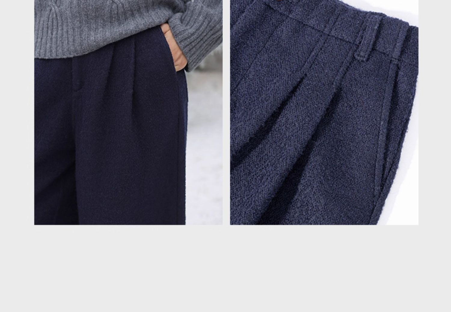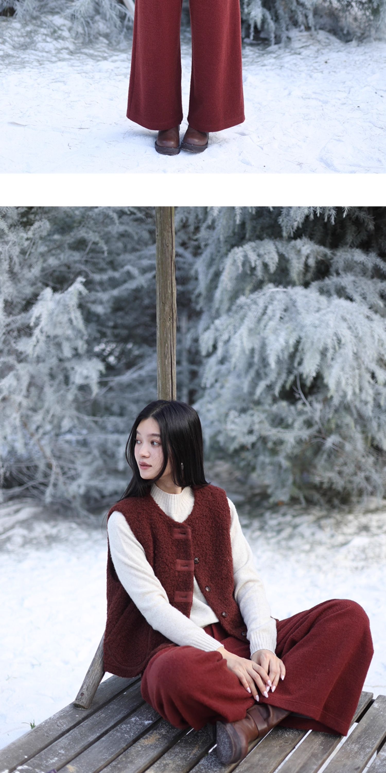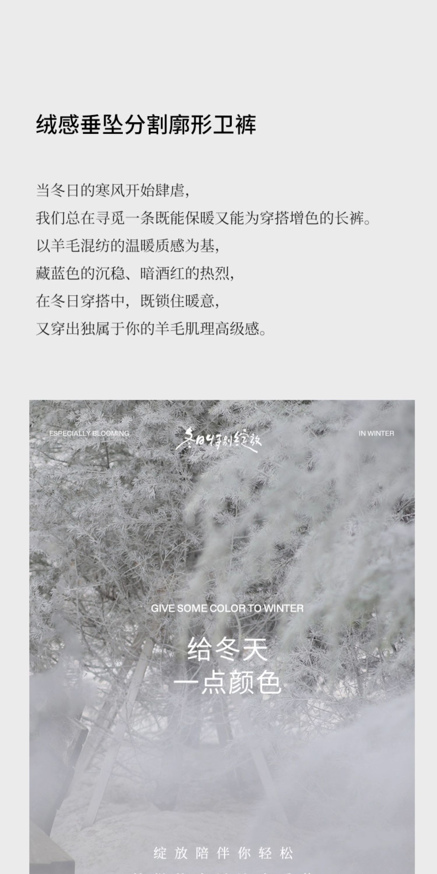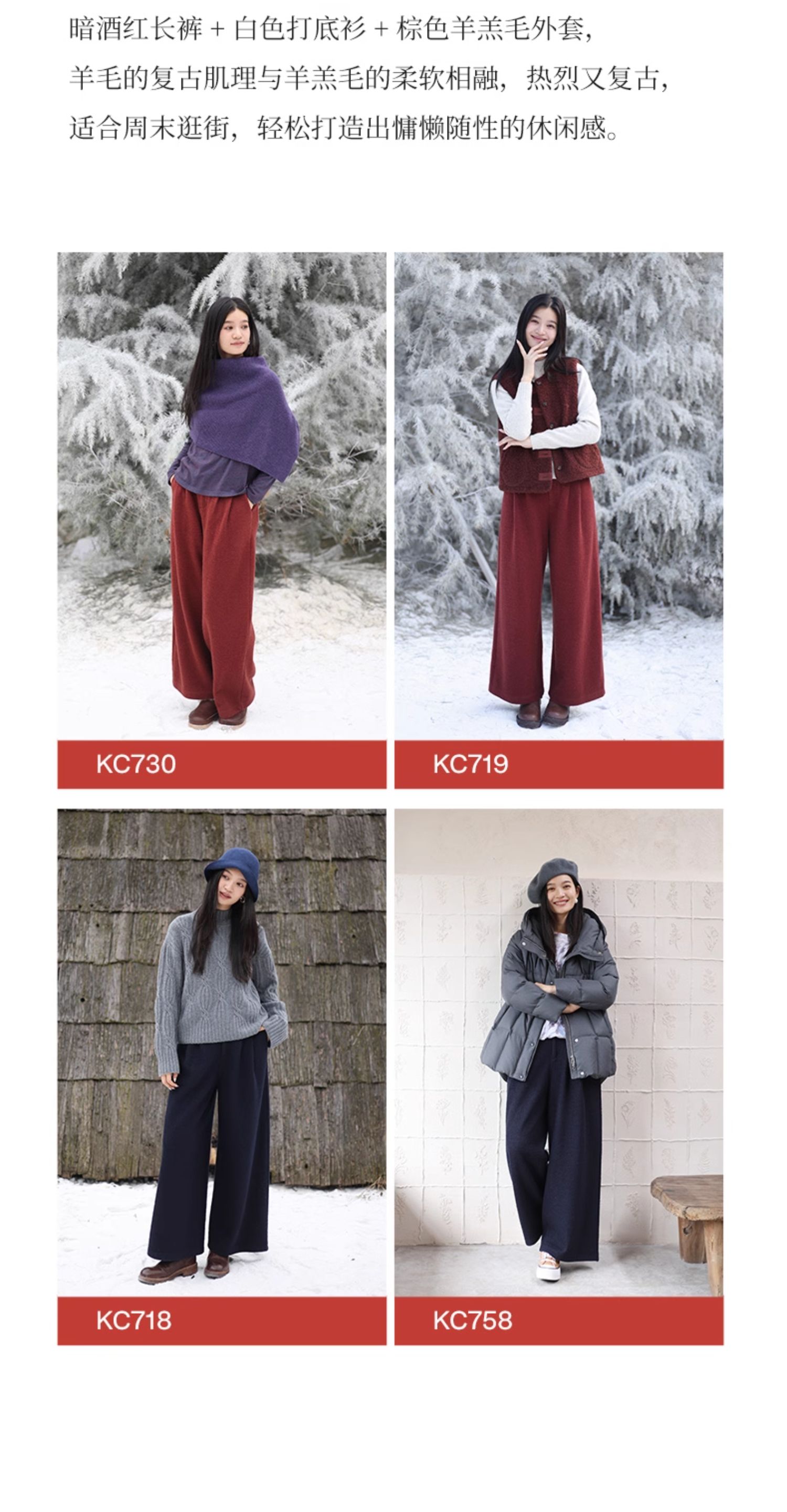 绽放726朵/热红酒·羊毛混纺针织毛呢半腰松紧捏褶休闲直筒长裤