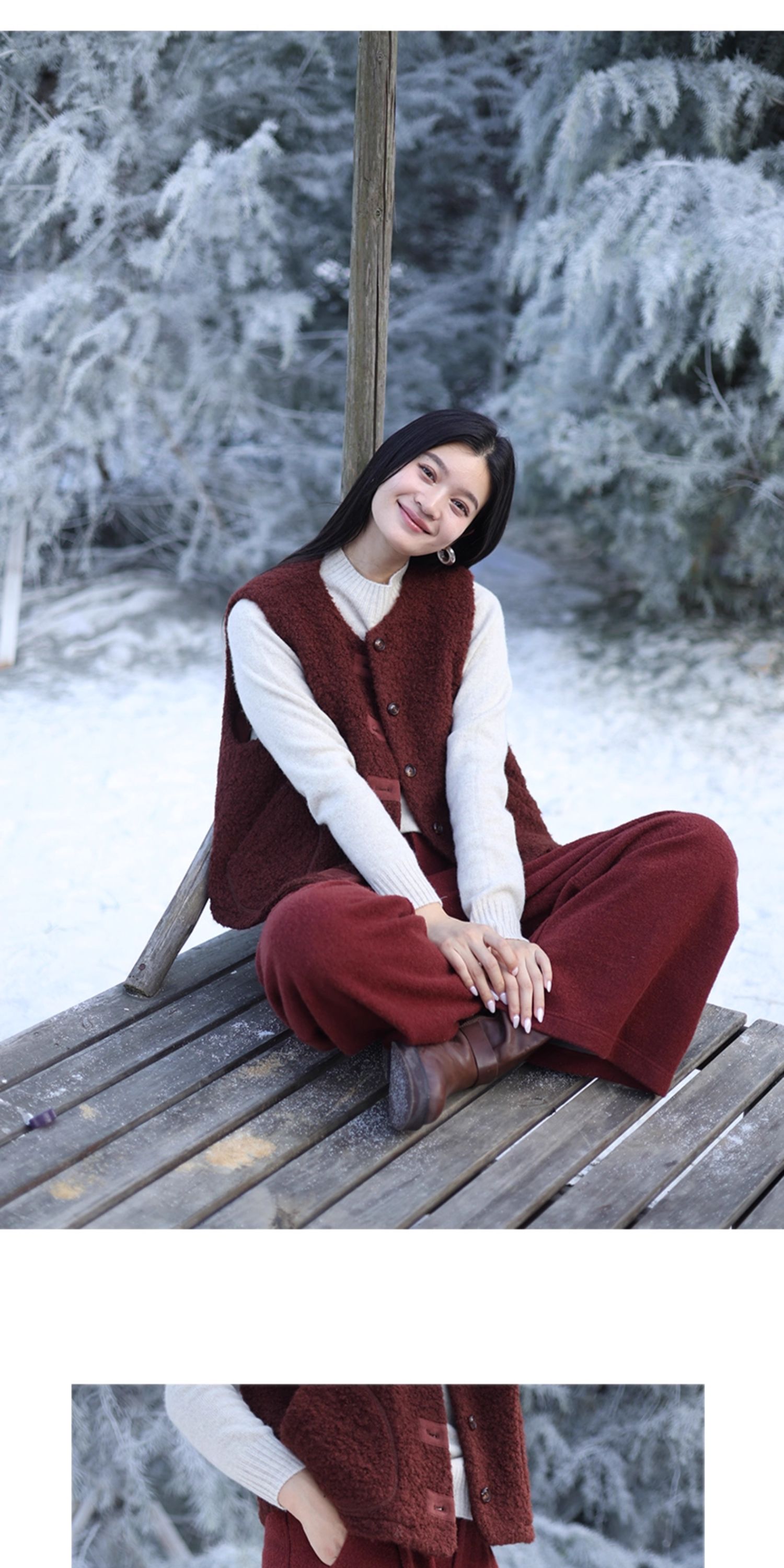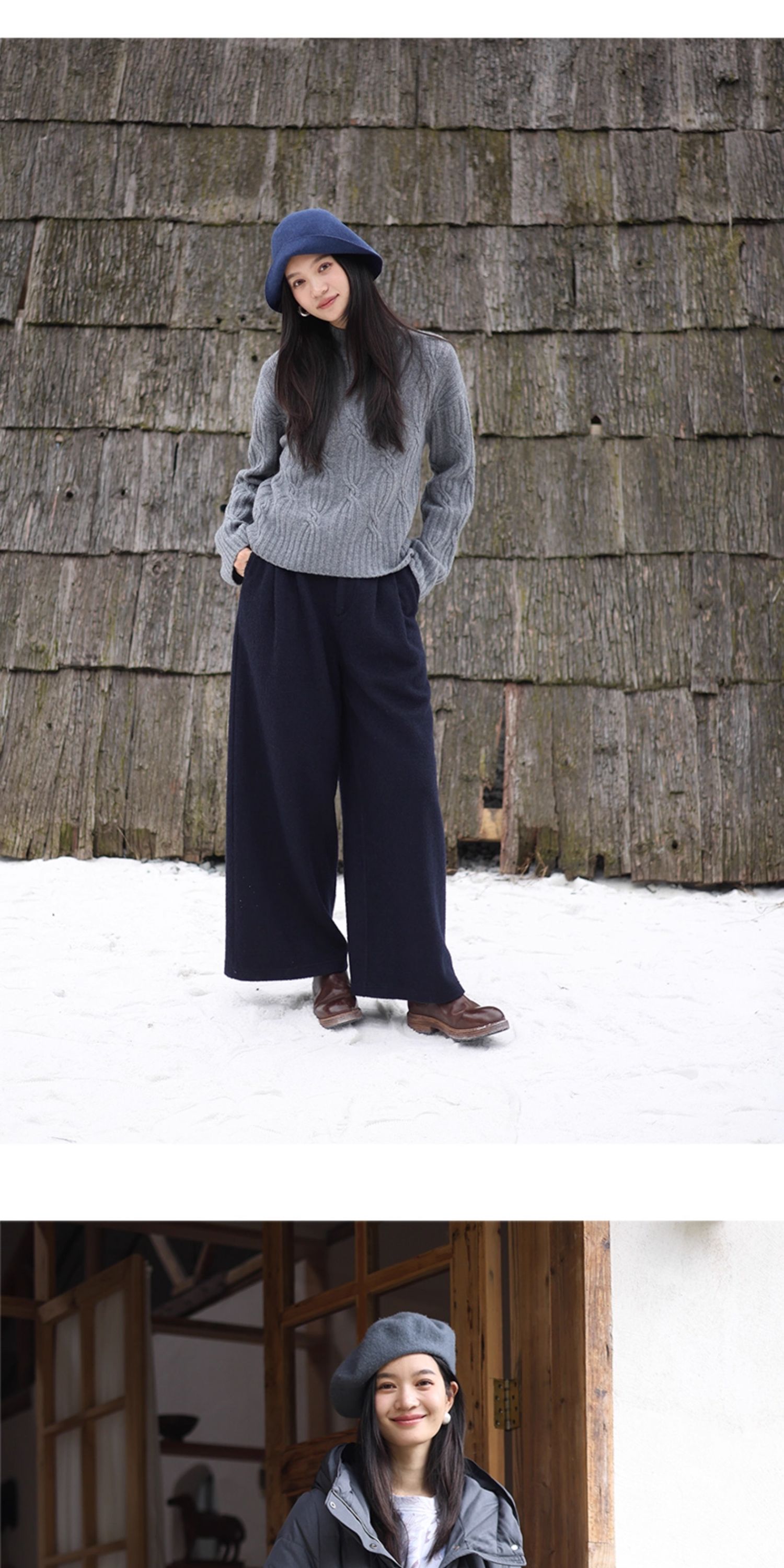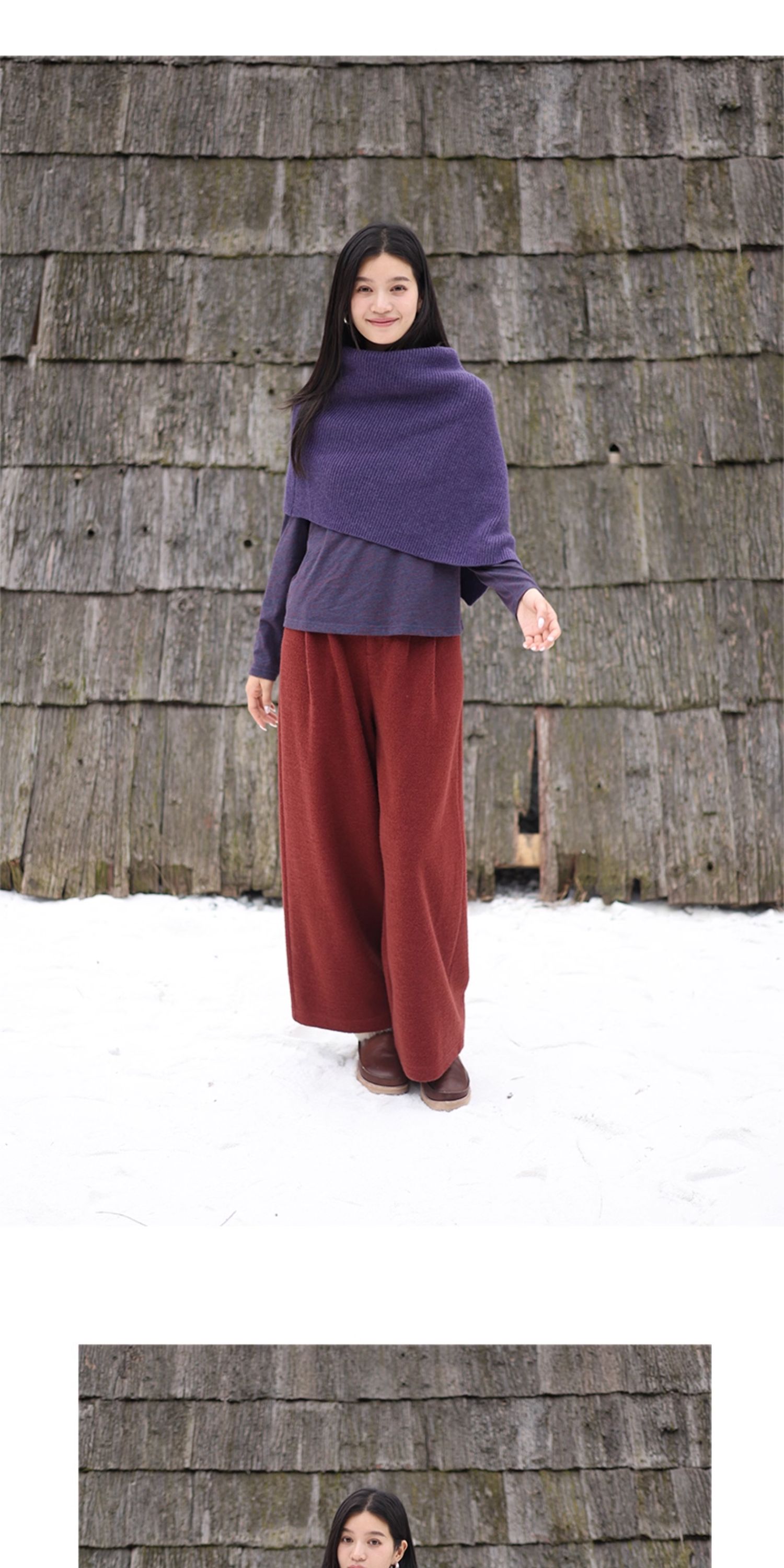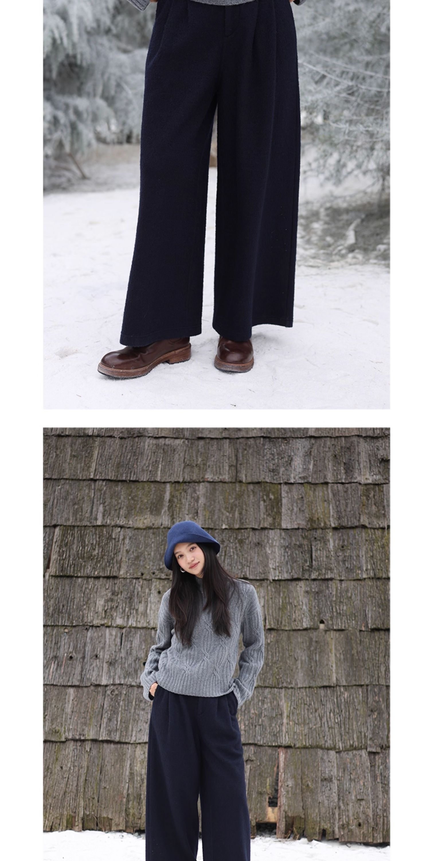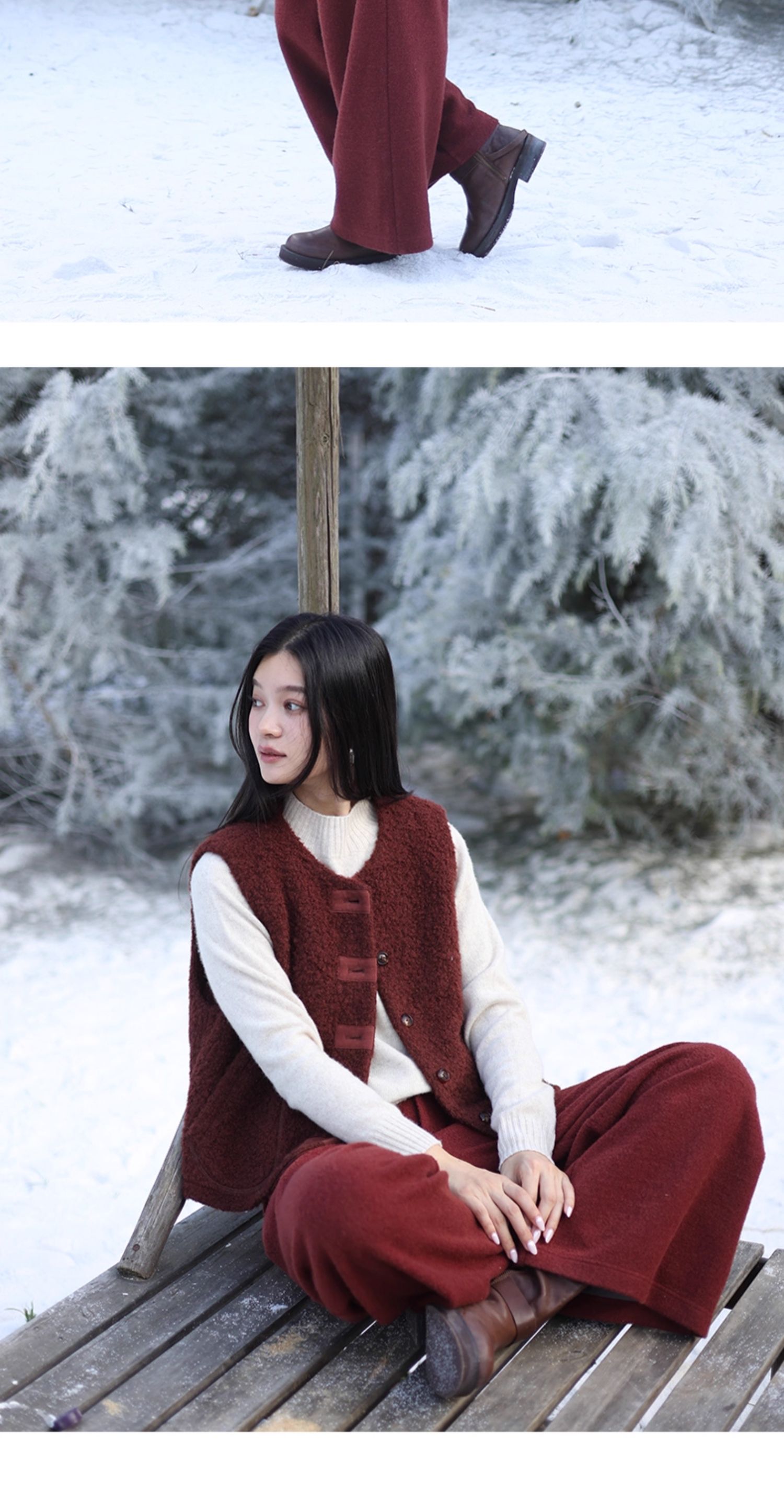 绽放726朵/热红酒·羊毛混纺针织毛呢半腰松紧捏褶休闲直筒长裤