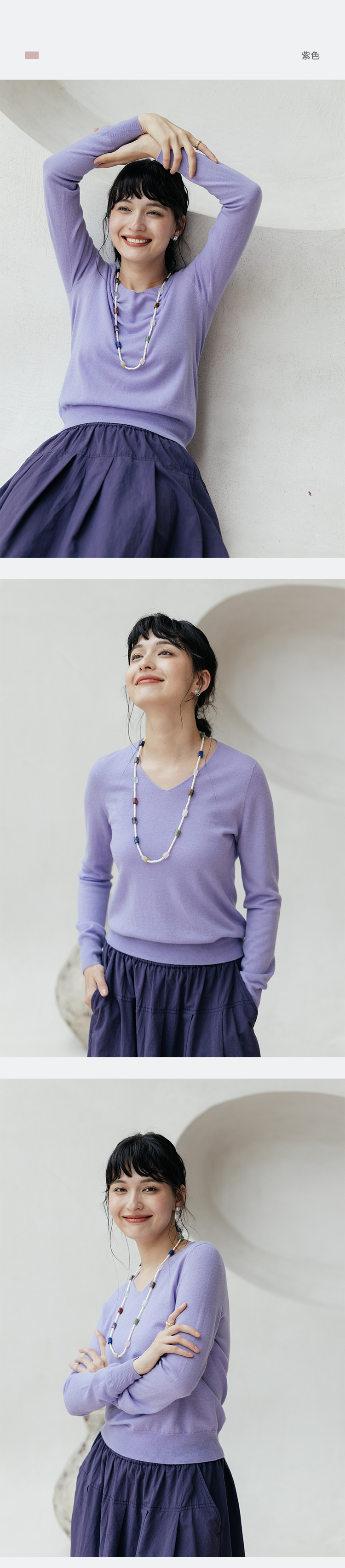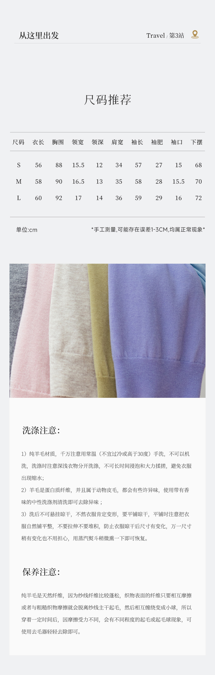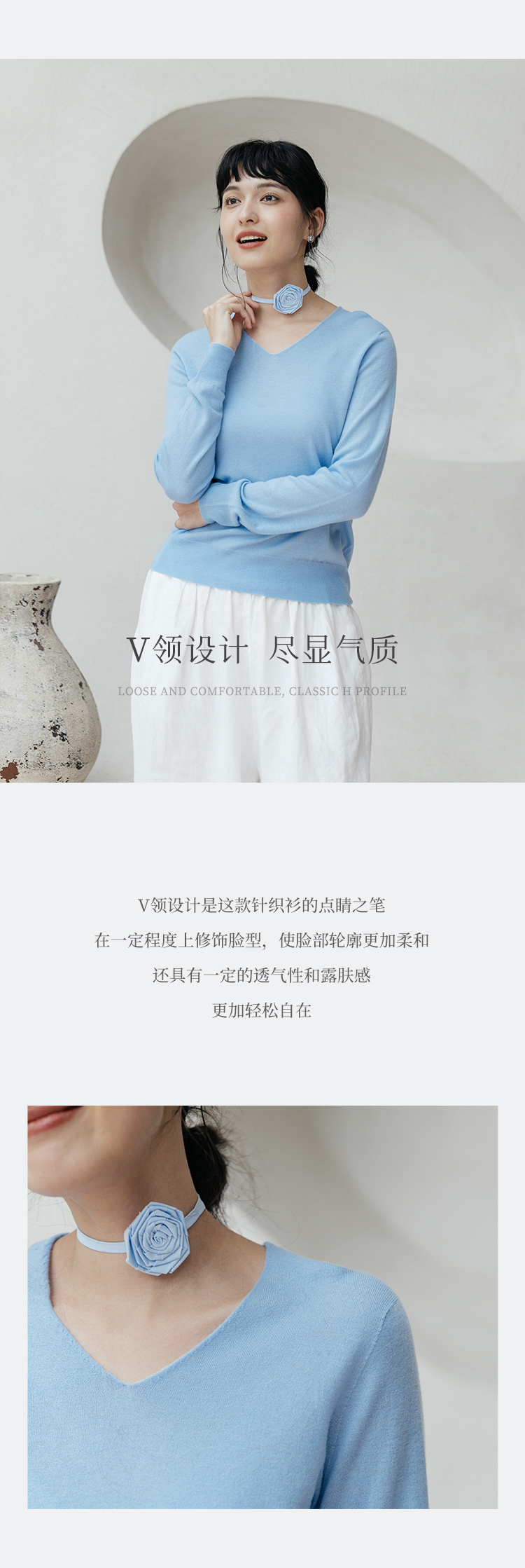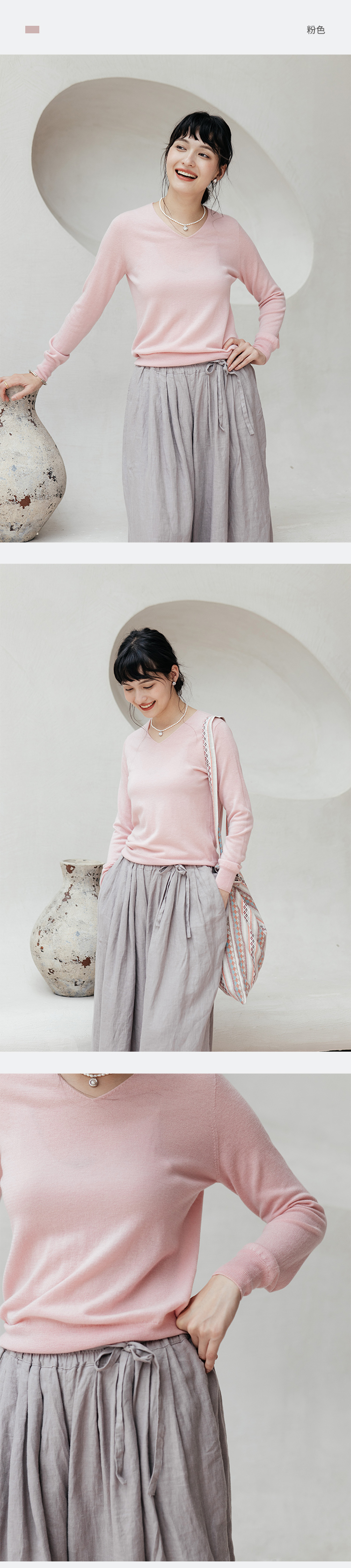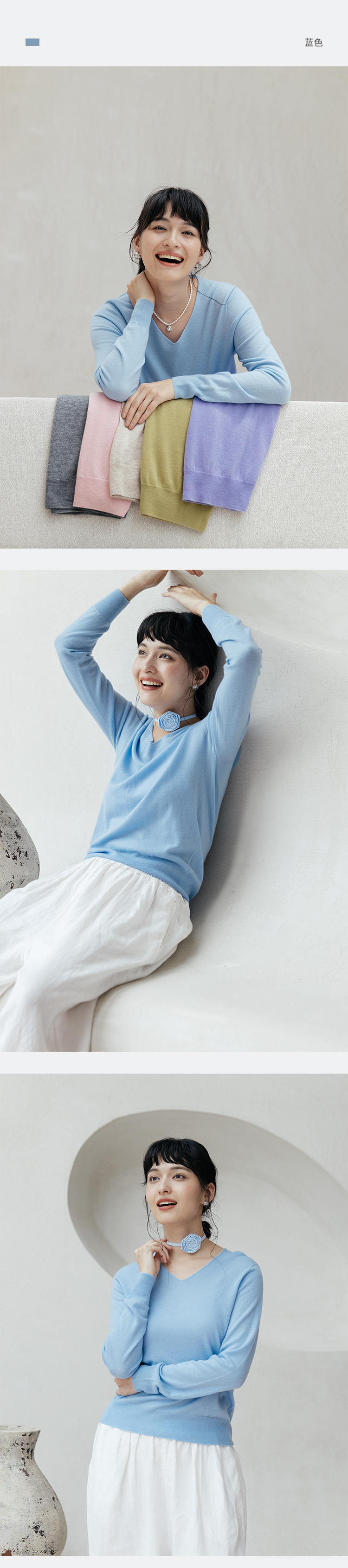 绽放旅行女装596朵/100%羊毛早秋多色宽松小衫显瘦v领套头针织衫
