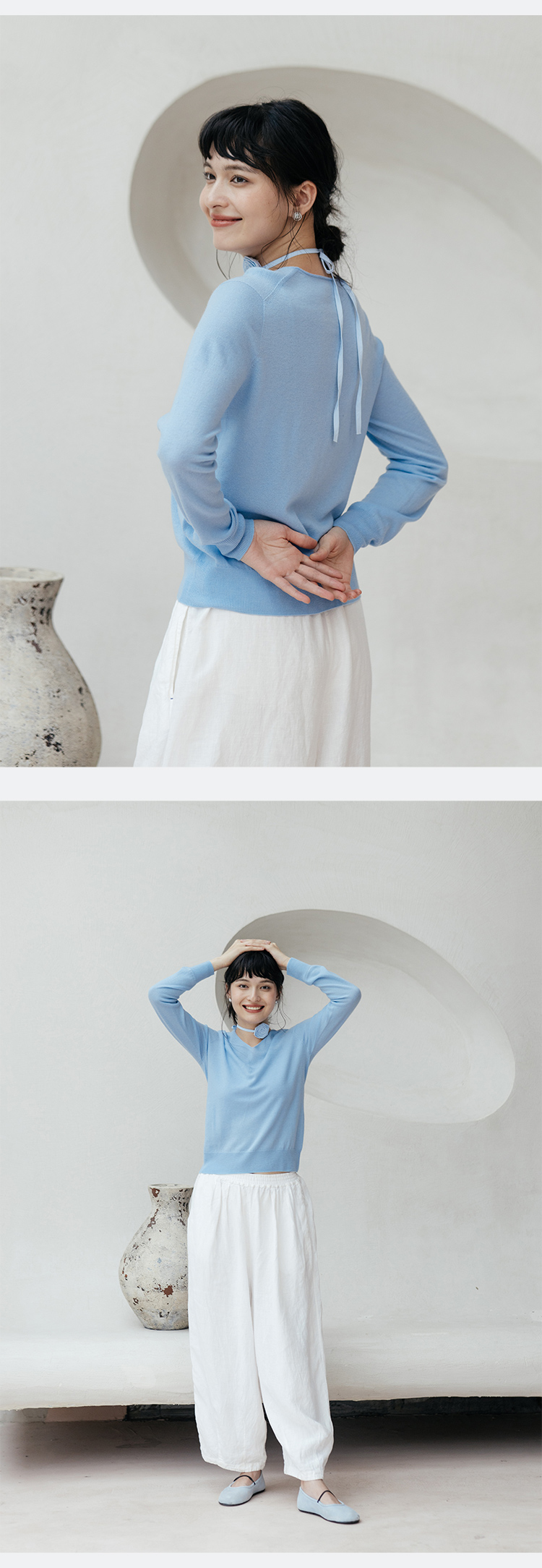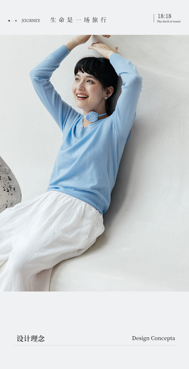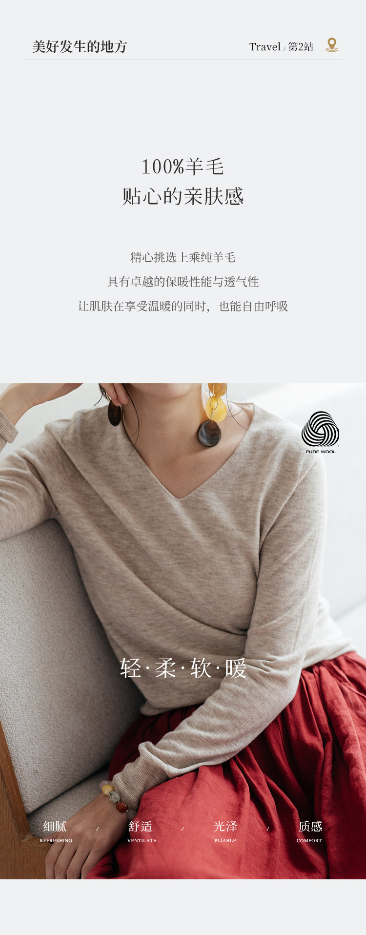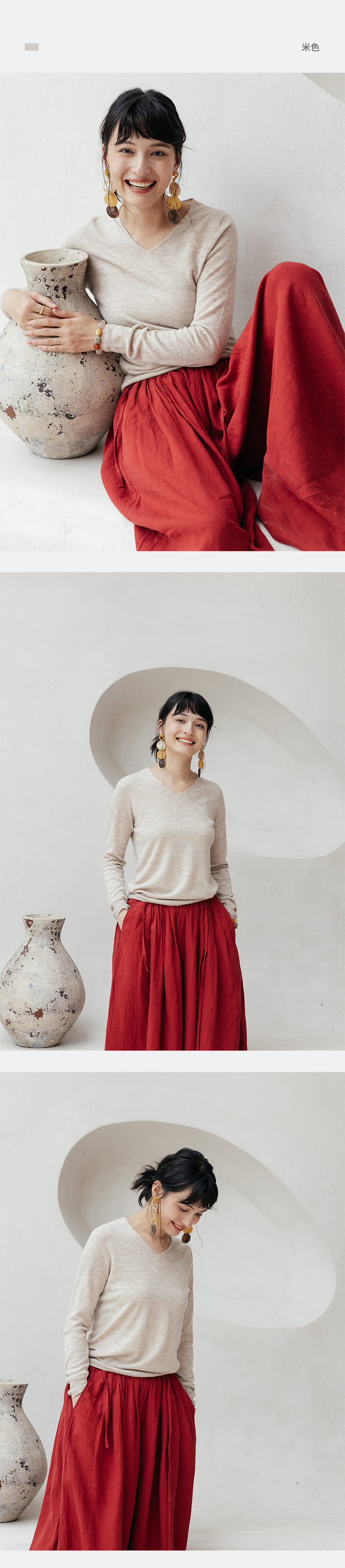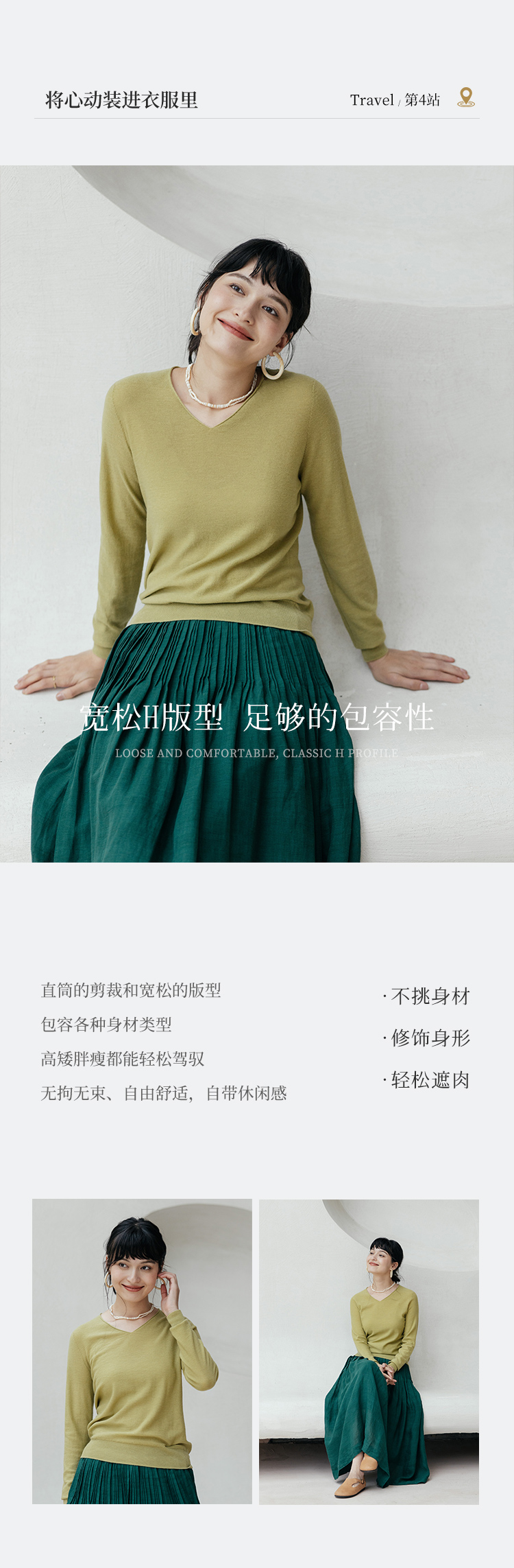 绽放旅行女装596朵/100%羊毛早秋多色宽松小衫显瘦v领套头针织衫