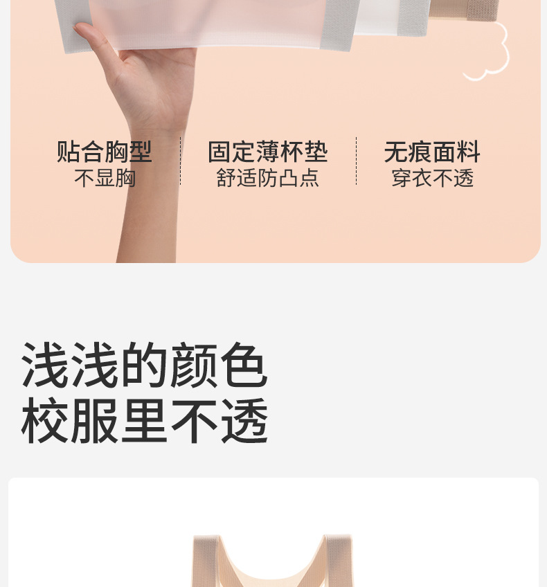 一阶段防凸点~小学生初发育运动内衣女童内衣7-12岁 薄棉垫抗菌背心青春期文胸