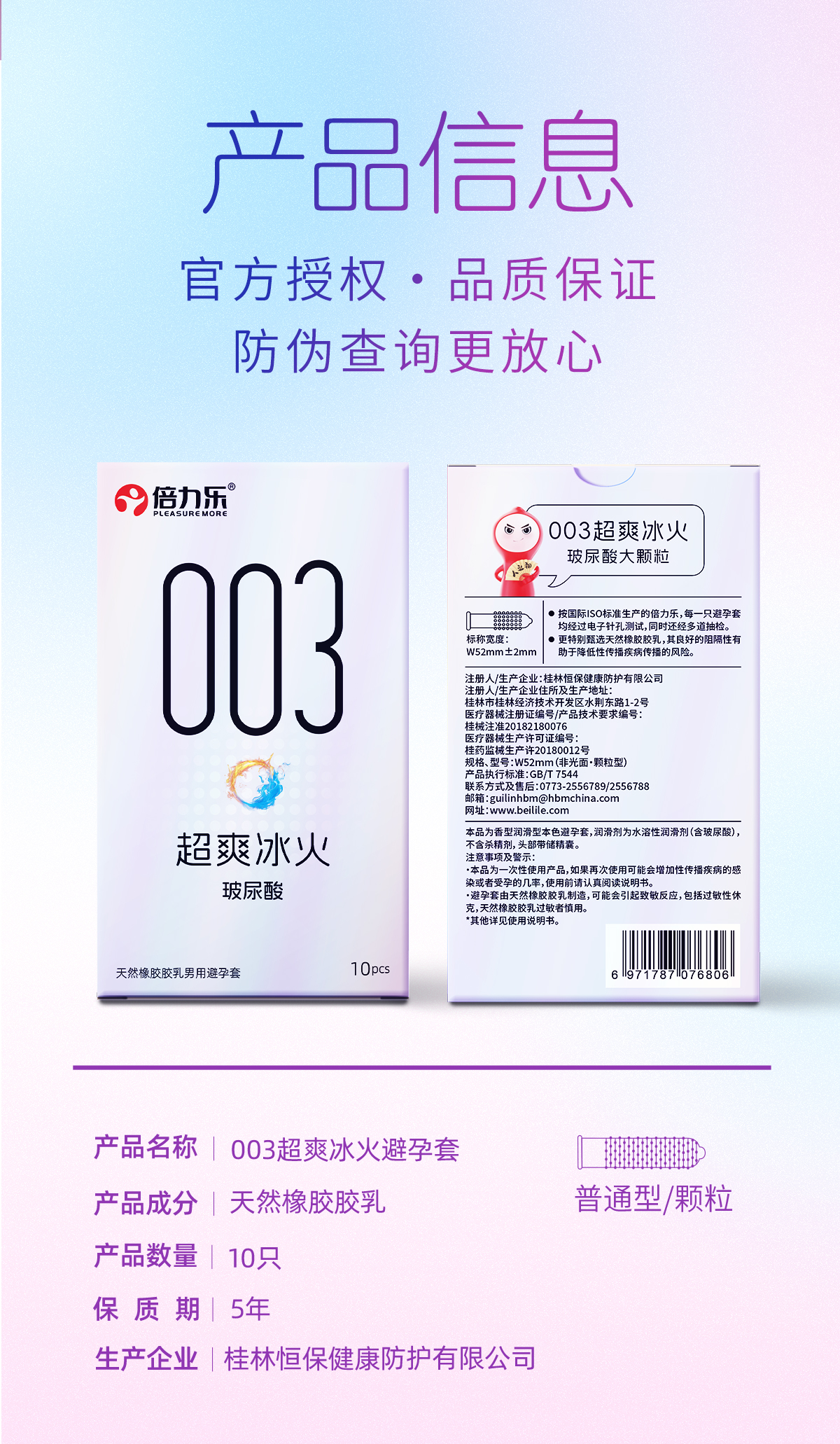 倍力乐003玻尿酸冰火颗粒安全套