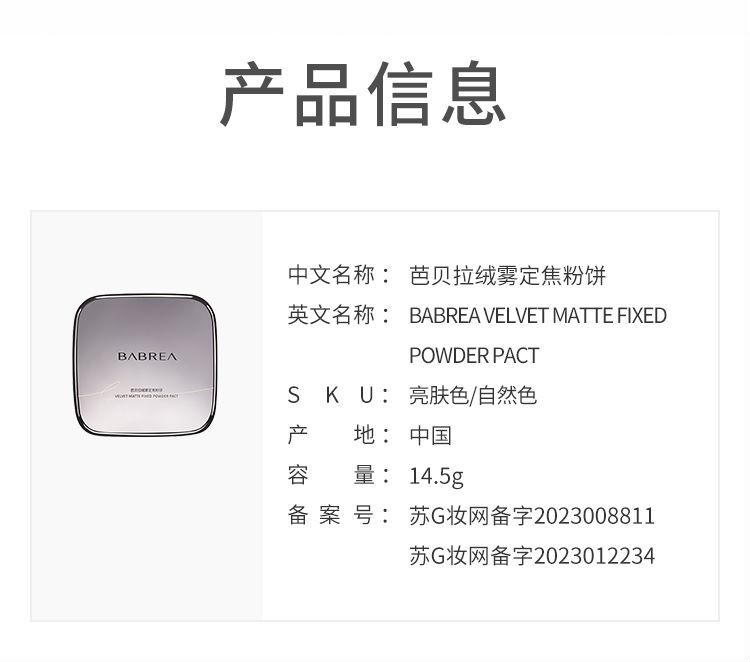 规格:14.5g芭贝拉绒雾定焦粉饼-自然色 6971870592244(赠小粉饼3.5g*1+植鞣粉扑*1)