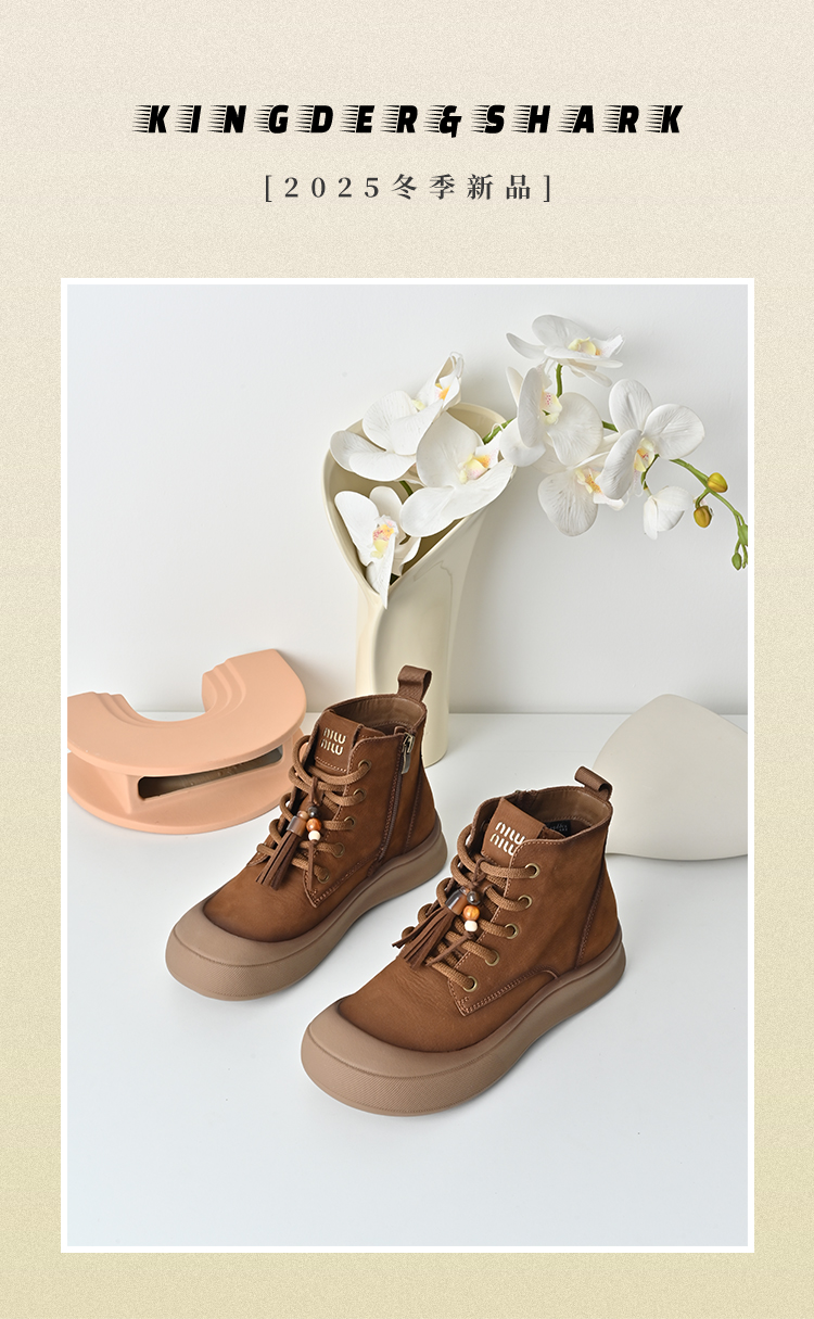经典鲨2025年冬季专柜新品牛皮革加绒保暖高帮休闲鞋棉鞋女KW57-558081