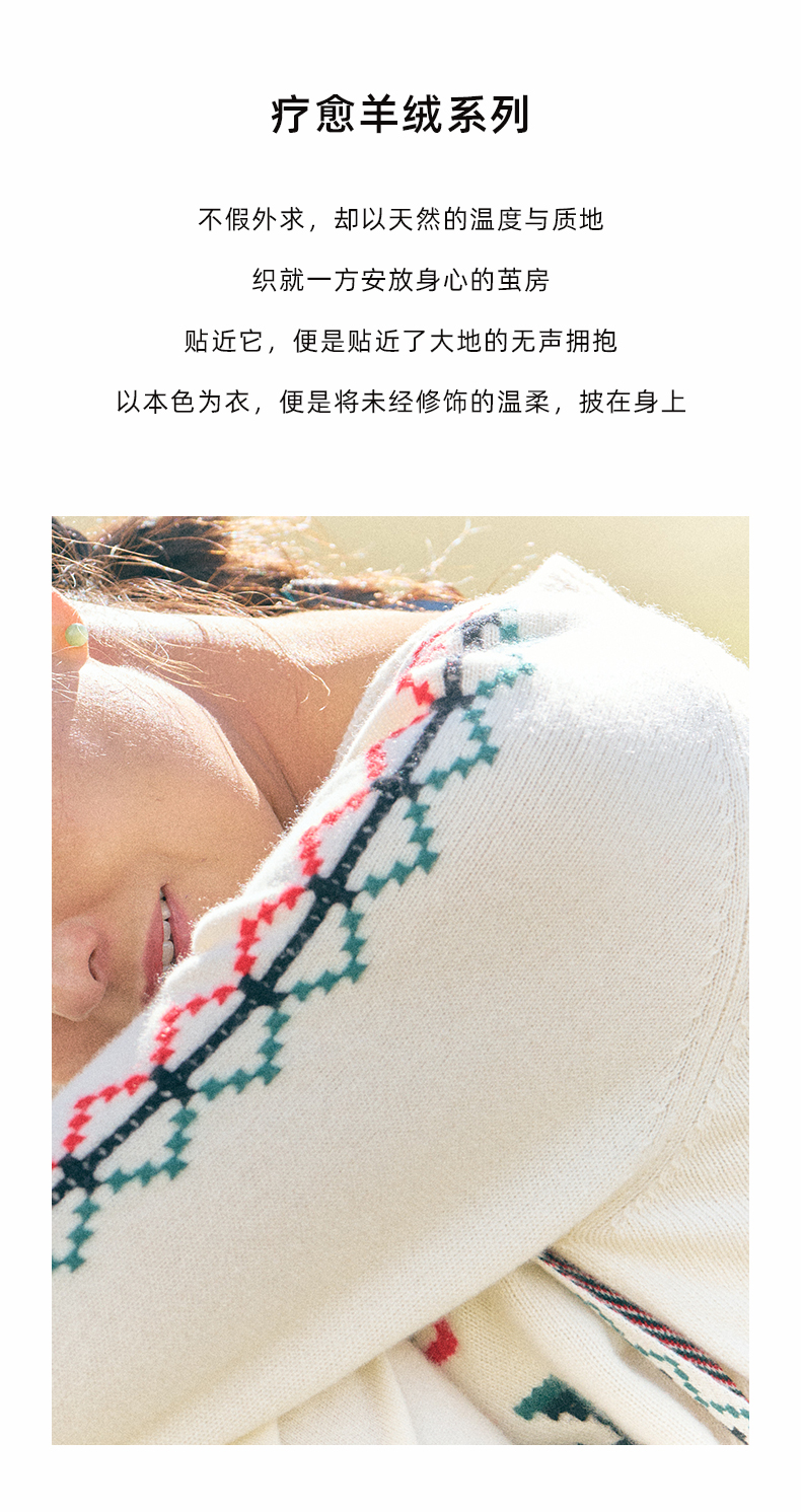 双翻领手工绣花羊绒女套衫 SJF93W419N
