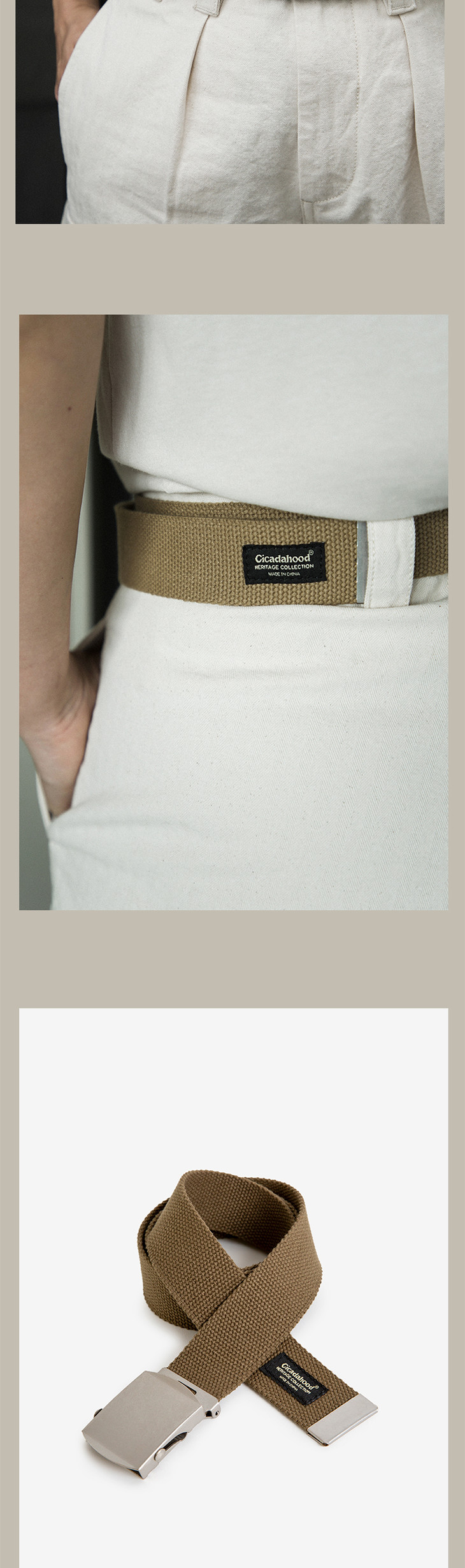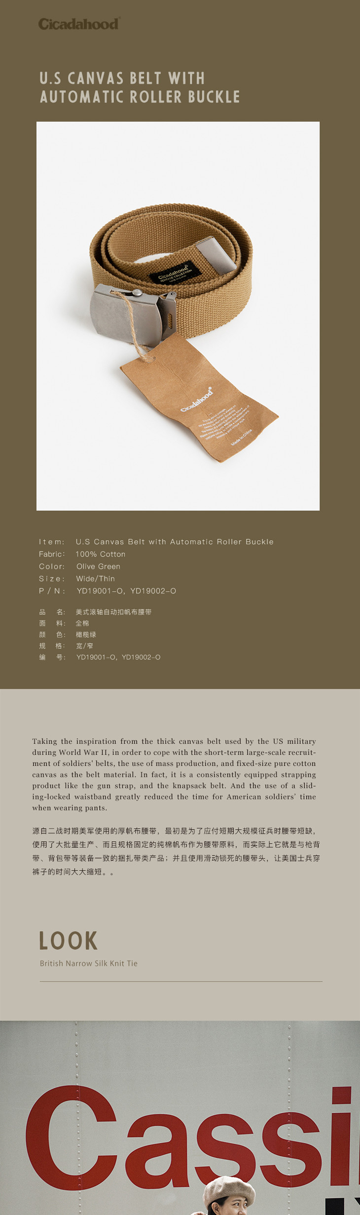 Cicadahood美式滚轴自动扣帆布腰带 橄榄绿 无性别款