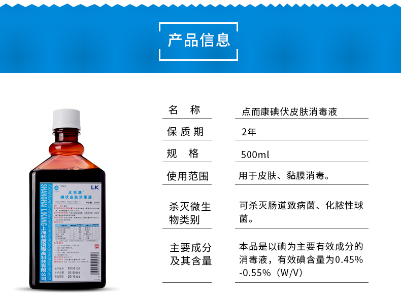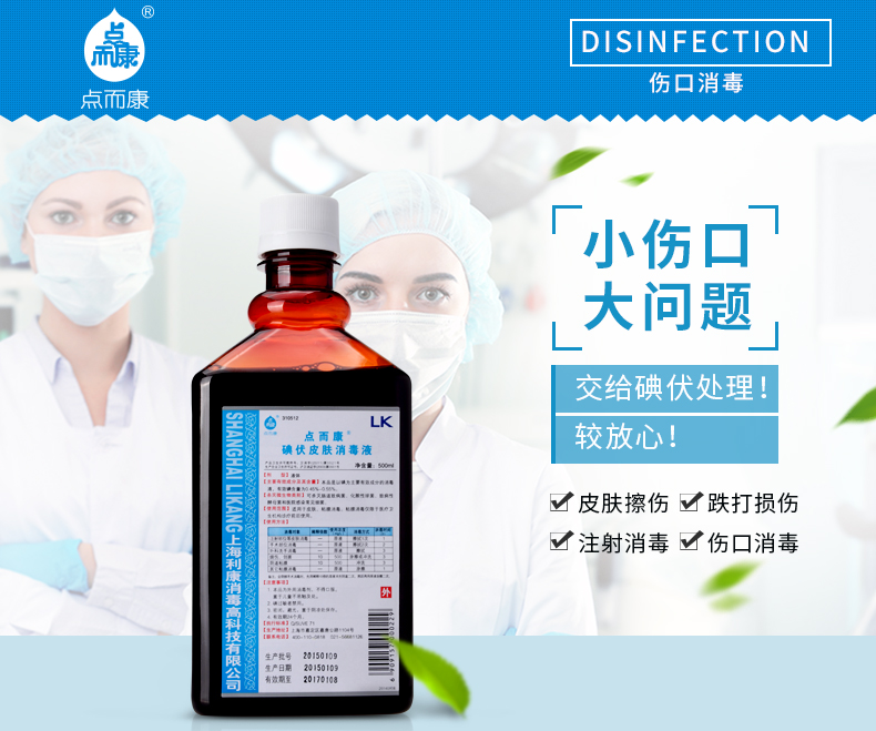 点而康 碘伏皮肤消毒液 500ml 替代紫药水红药水