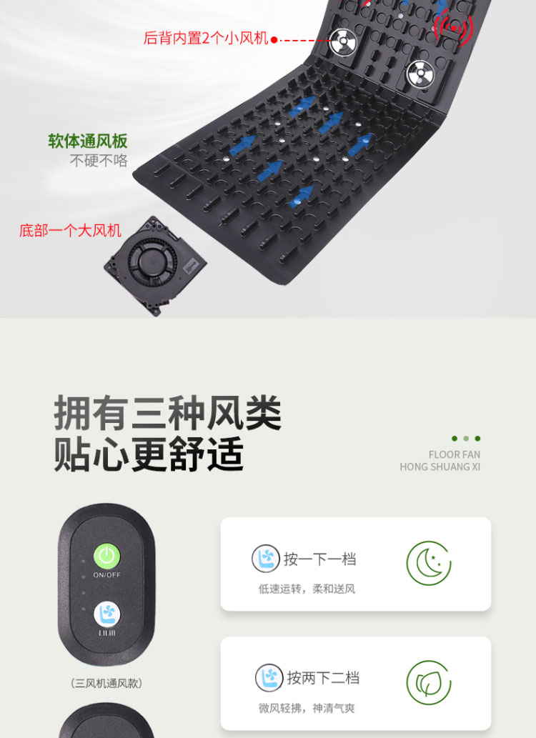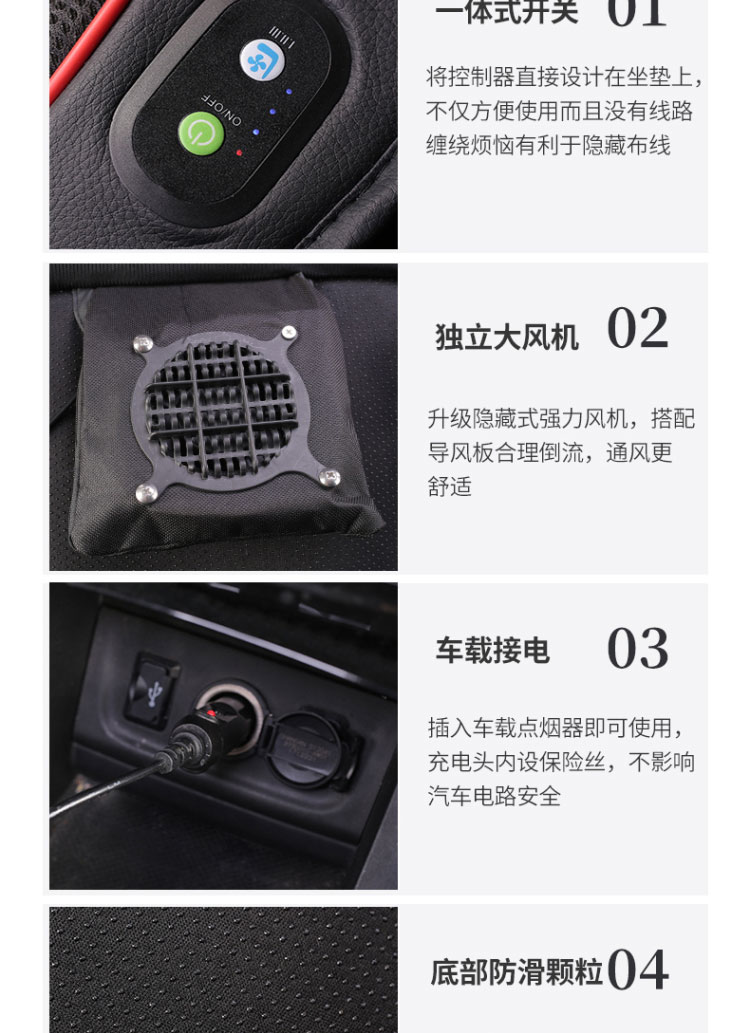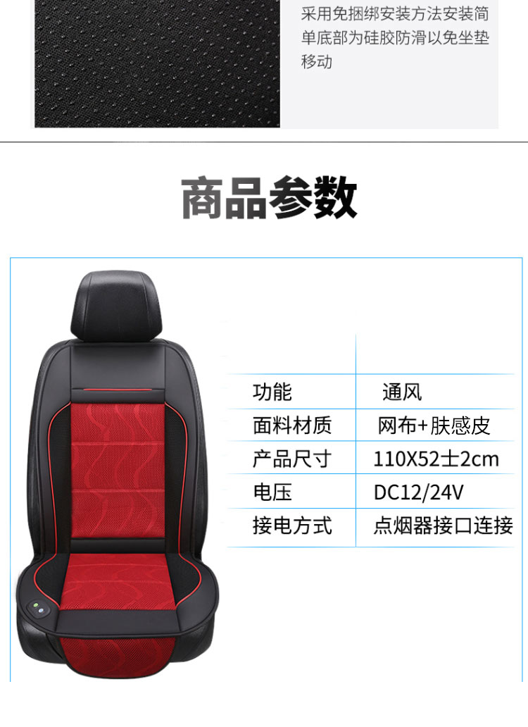 【三档风速 清凉透气】臻典 夏季汽车通风坐垫座椅垫 透气散热凉垫 独立大风机 防滑硅胶底 12V/24V适用