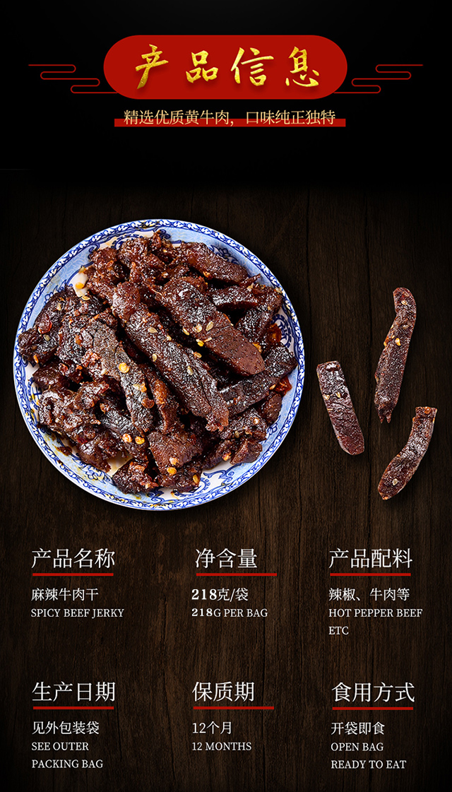 【恩施】晓姚农夫 牛肉干 硒都特产 土家风味 218g