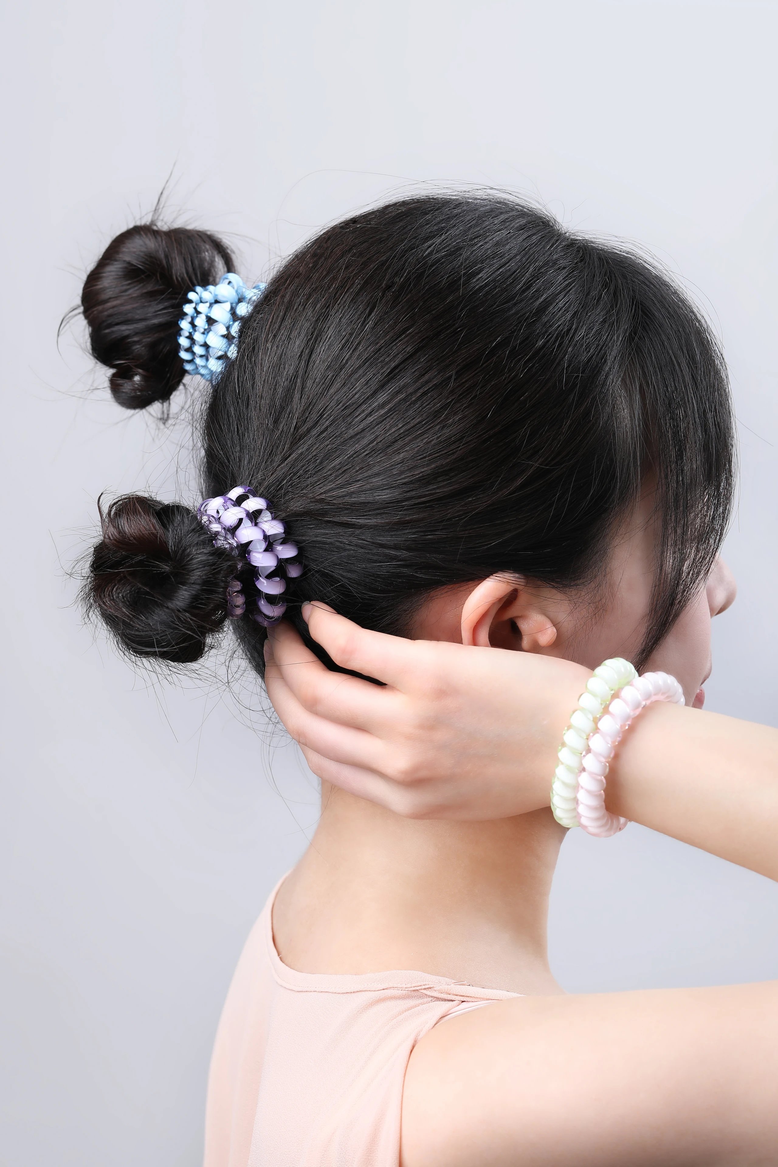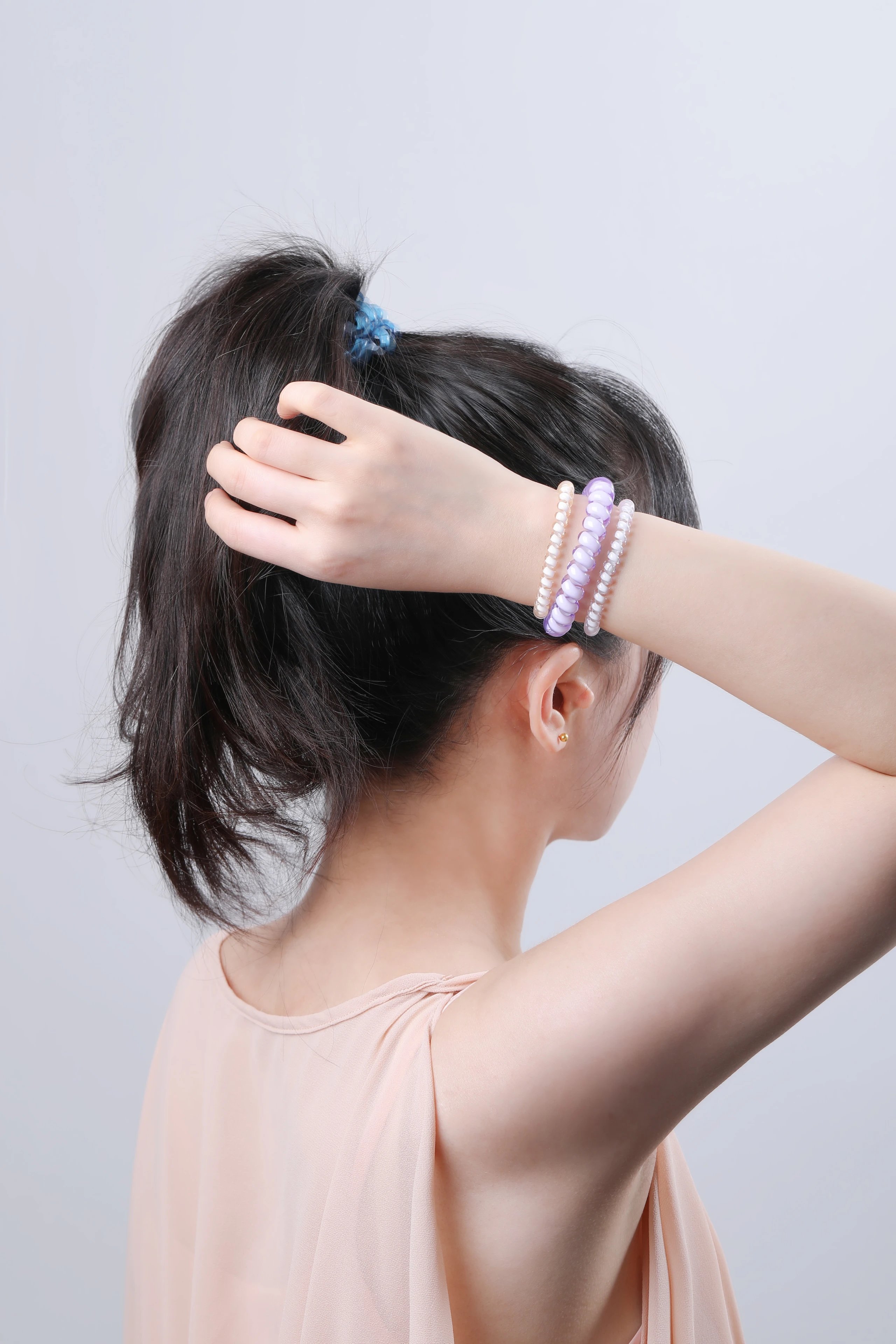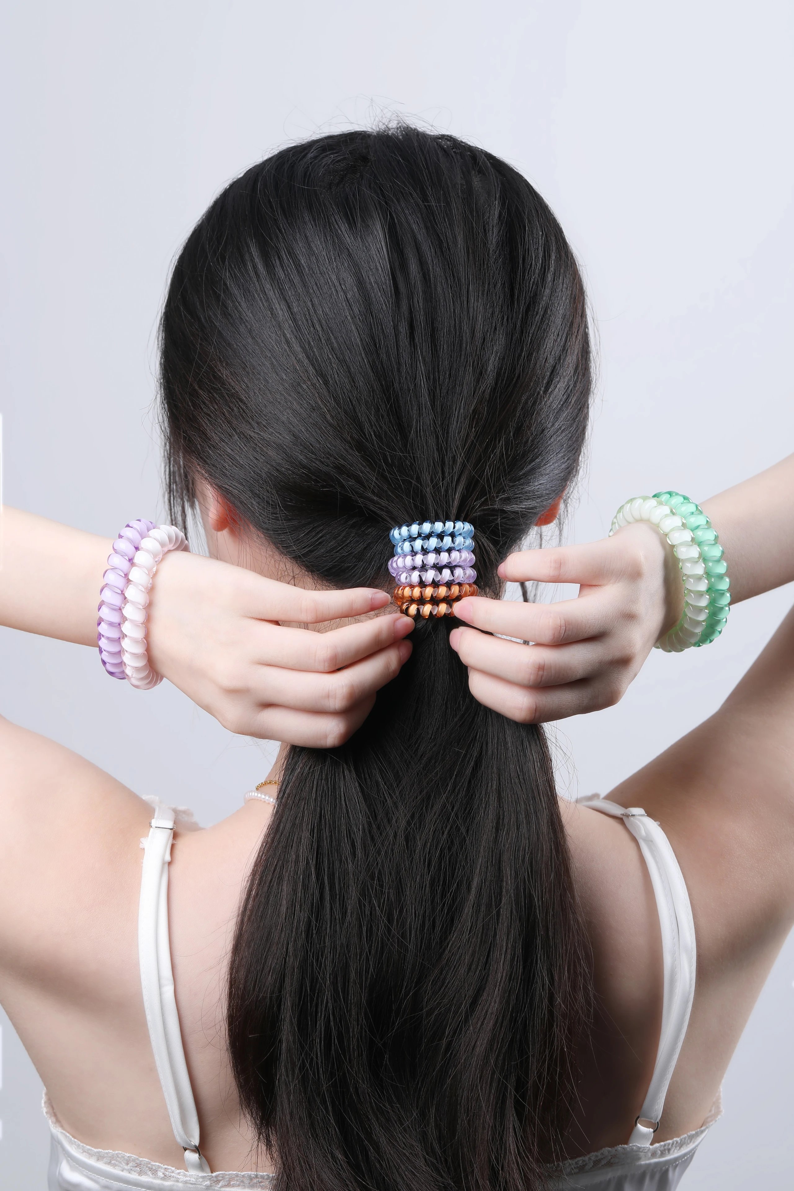 ✅能快速回弹无痕束发的同时,不勒头皮不扯头发