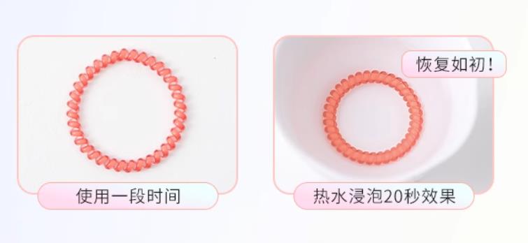 只要将使用过一段时间的发圈,浸泡在约80-95℃的热水里