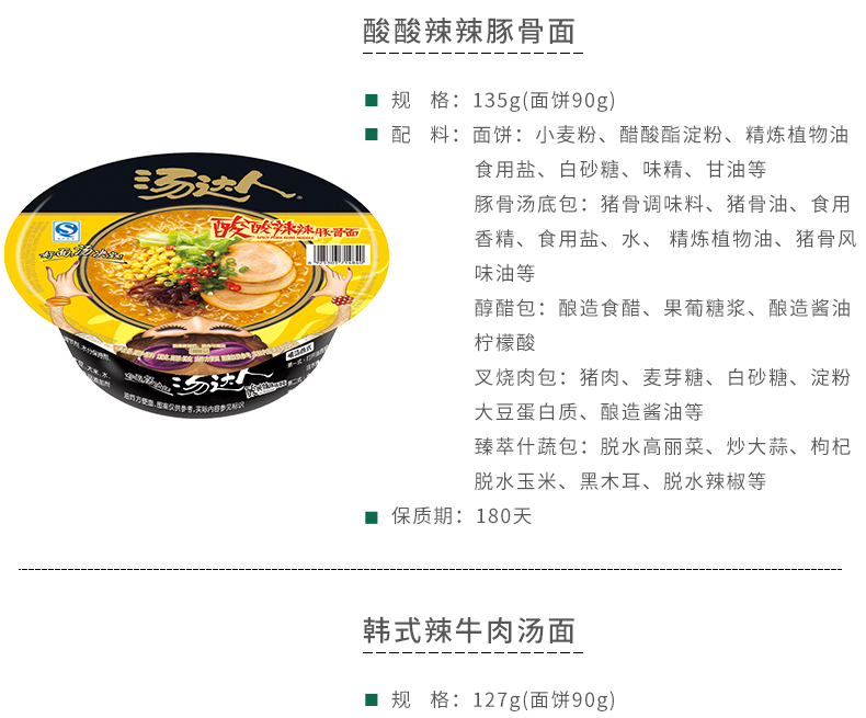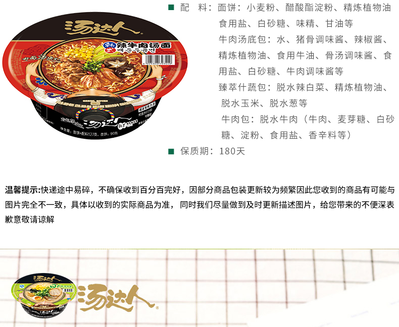 统一汤达人韩式辣牛肉汤面大碗面泡面127g 方便面
