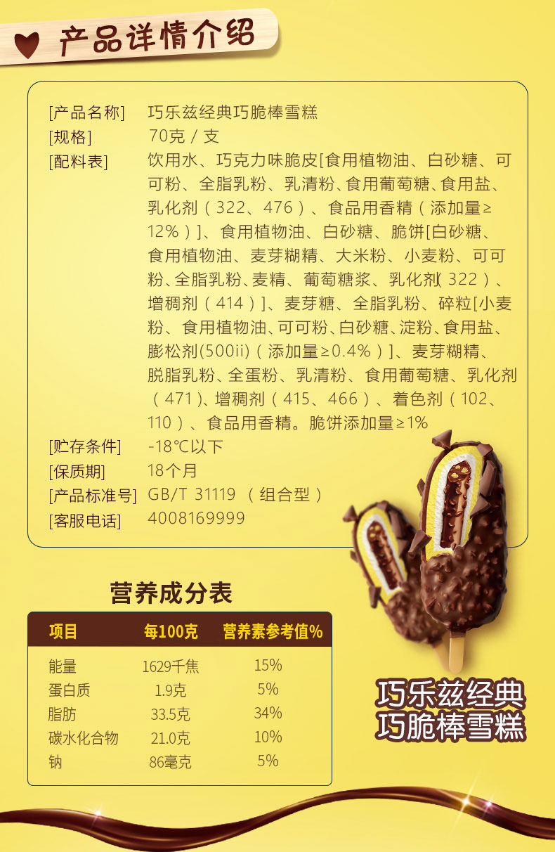 伊利 巧乐兹 经典巧脆棒系列巧克力口味雪糕冰淇淋75g雪糕冰糕批发