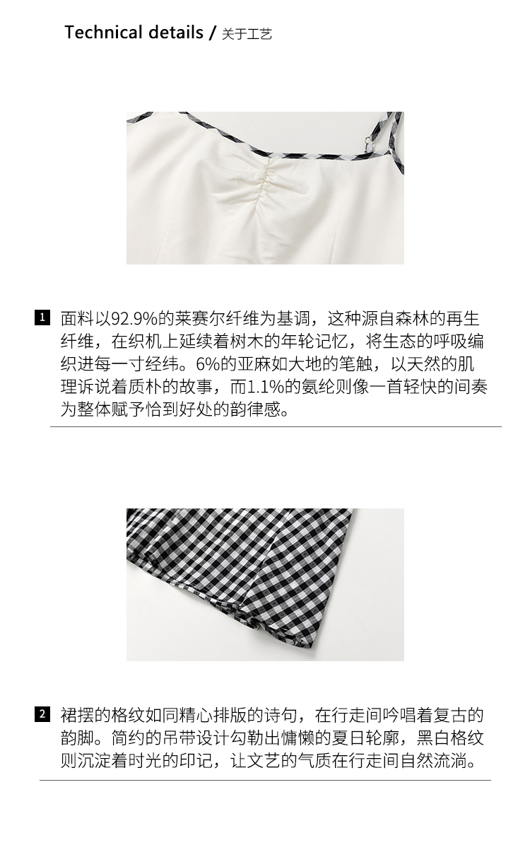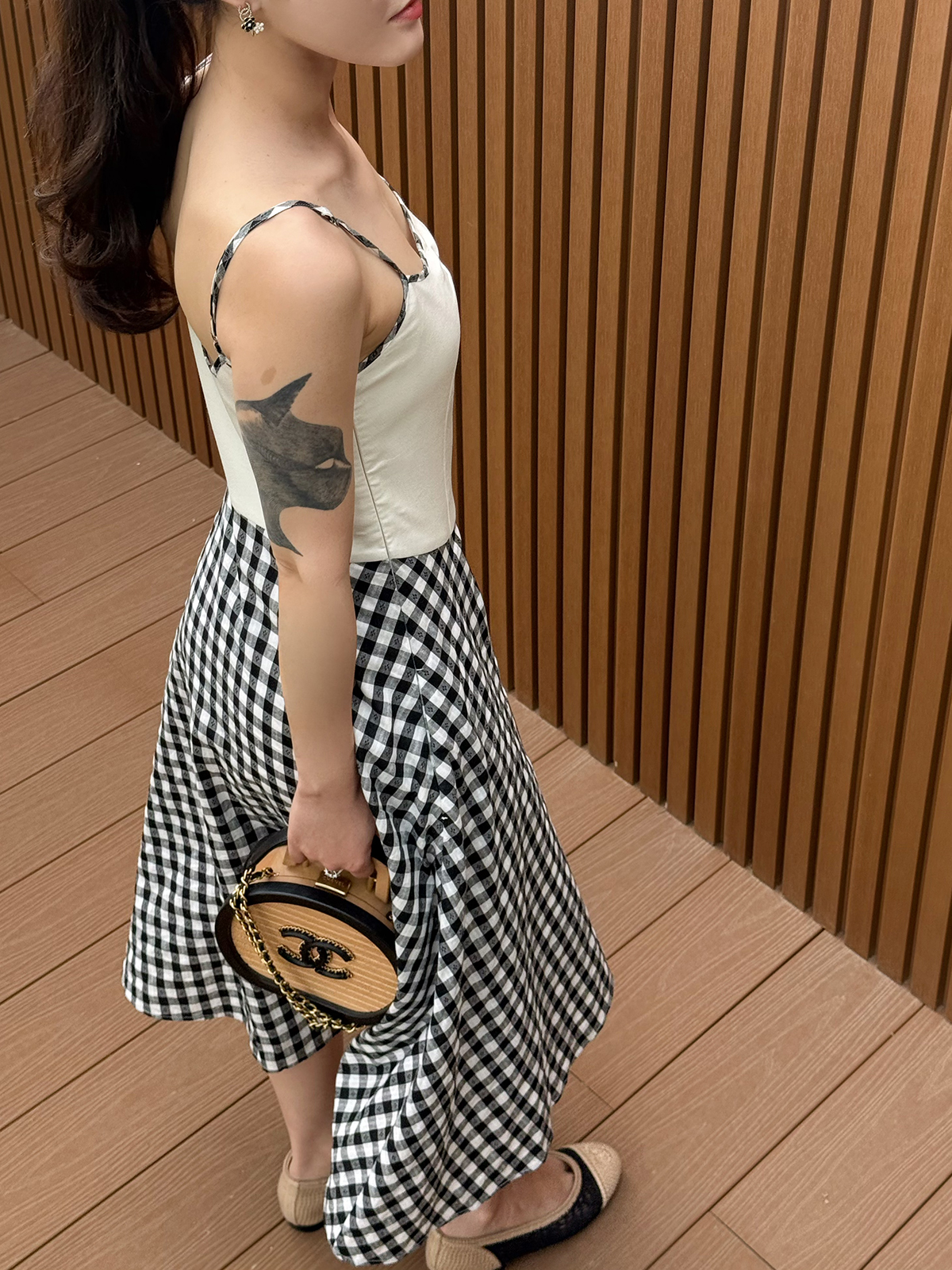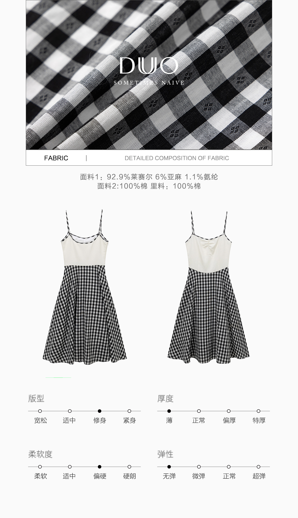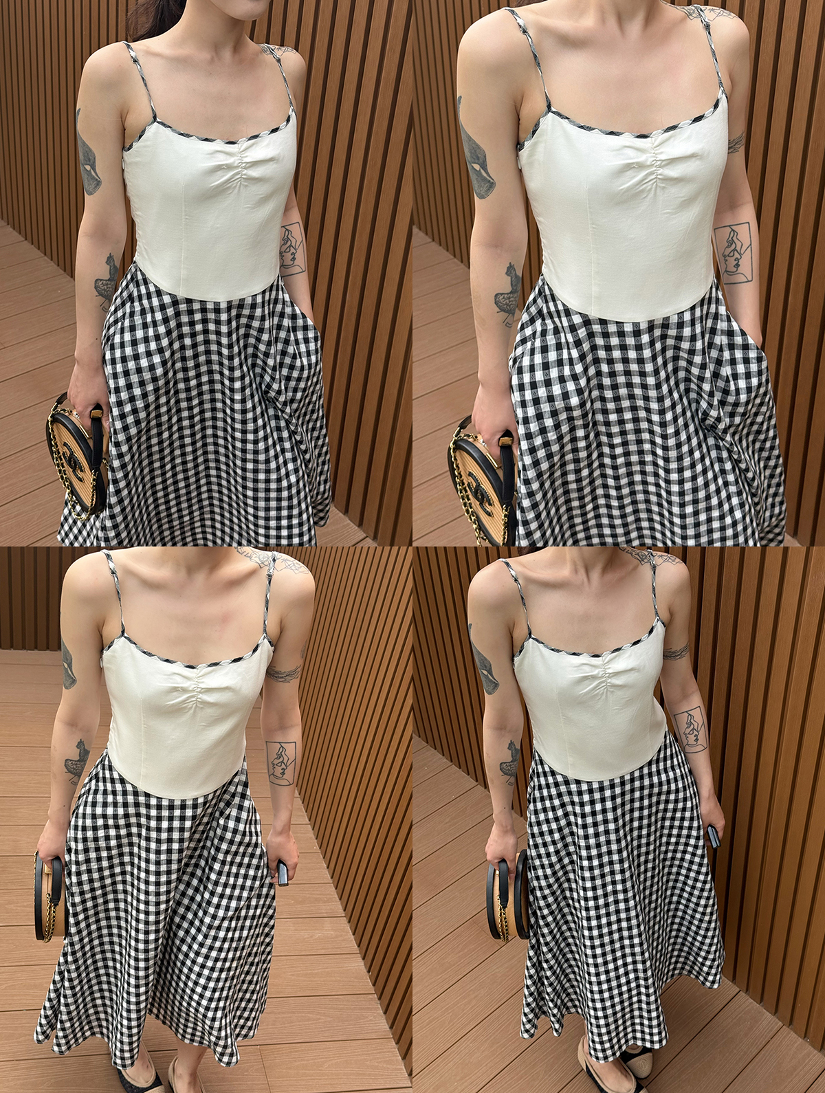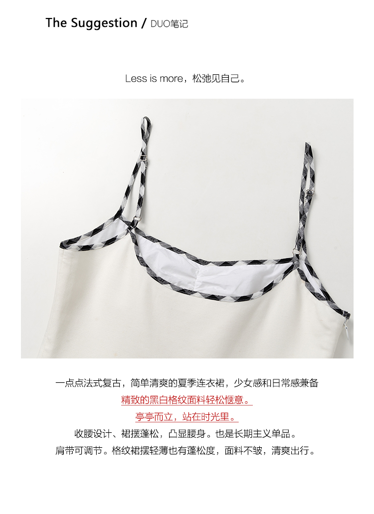 DUO智仙 长夏无边 法式格纹黑白吊带连衣裙