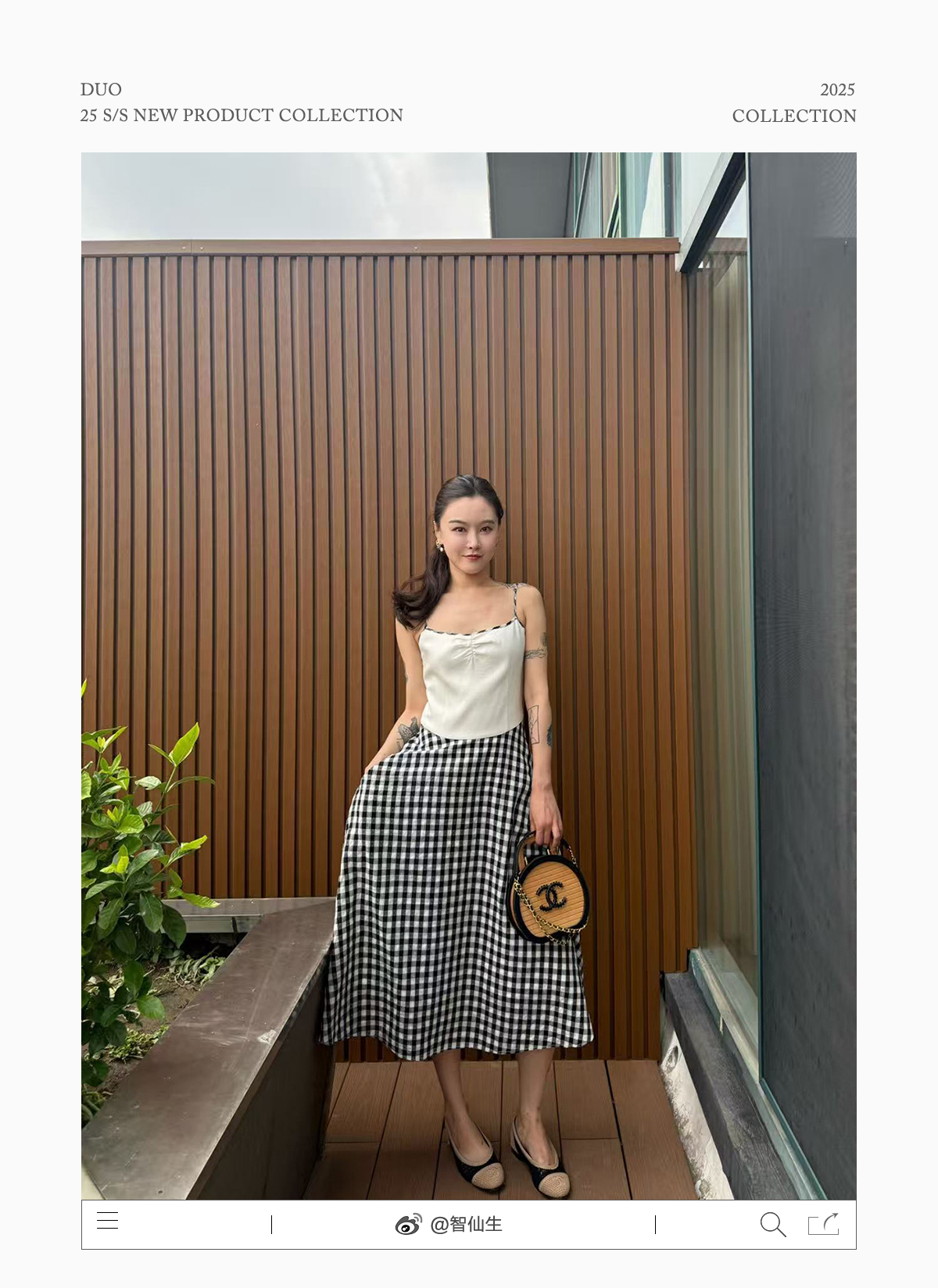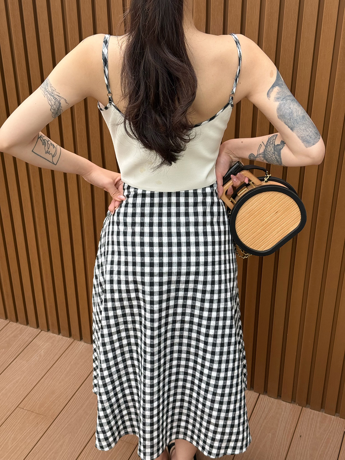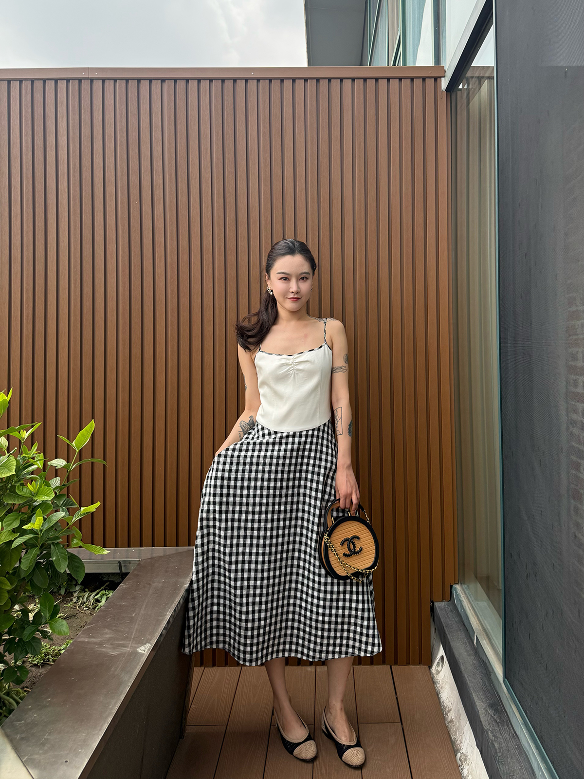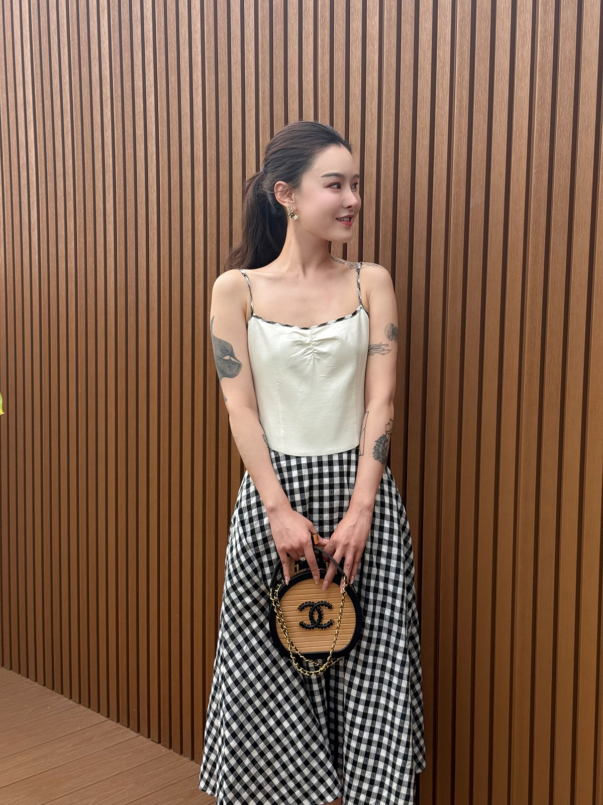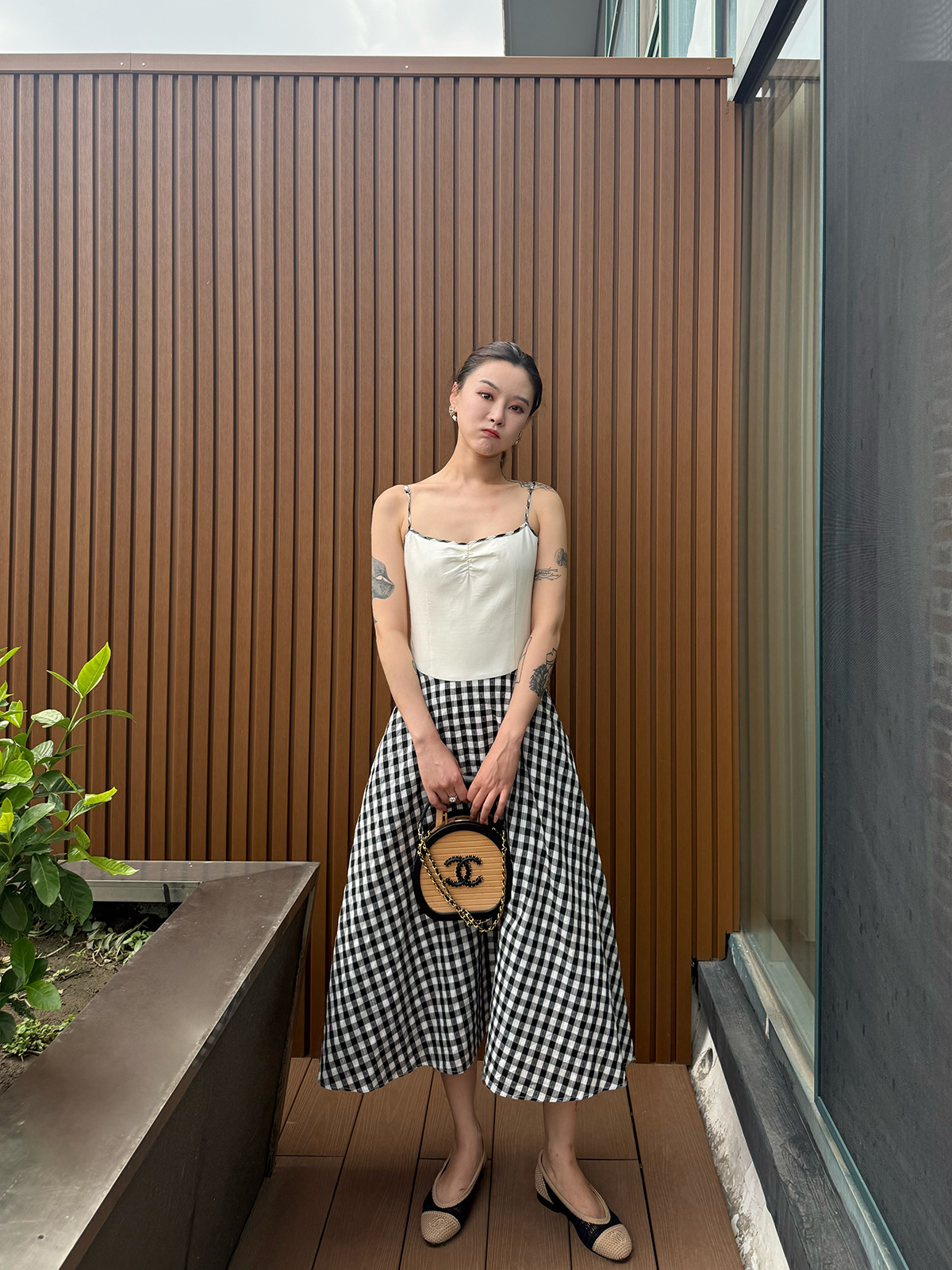DUO智仙 长夏无边 法式格纹黑白吊带连衣裙