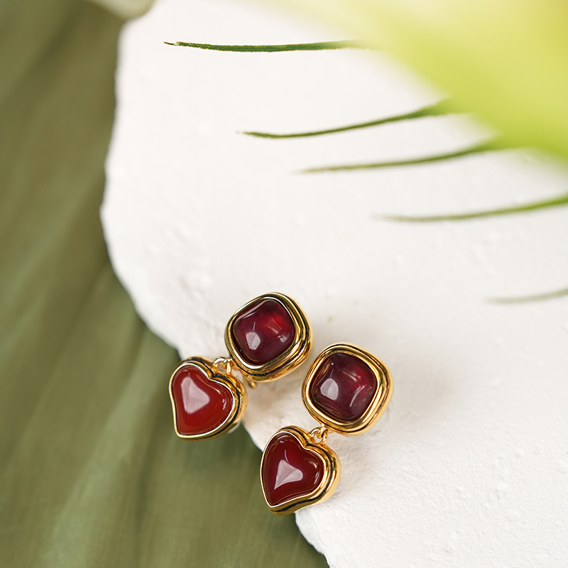 北京仓|Goossens Paris-BO PIN-勃艮第红 爱心 耳环[法国设计师]
