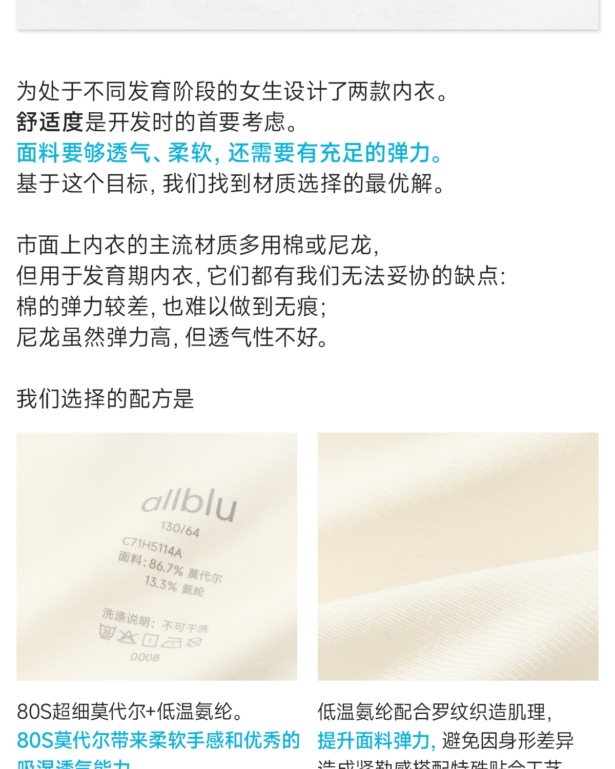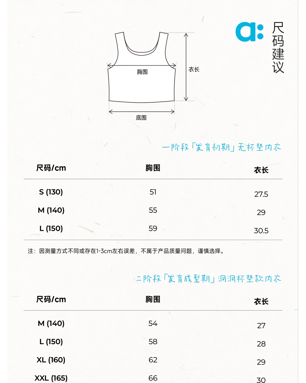 【达人专属】allblu幼岚【发育期内衣】儿童小学生女童背心文胸一二阶段A类