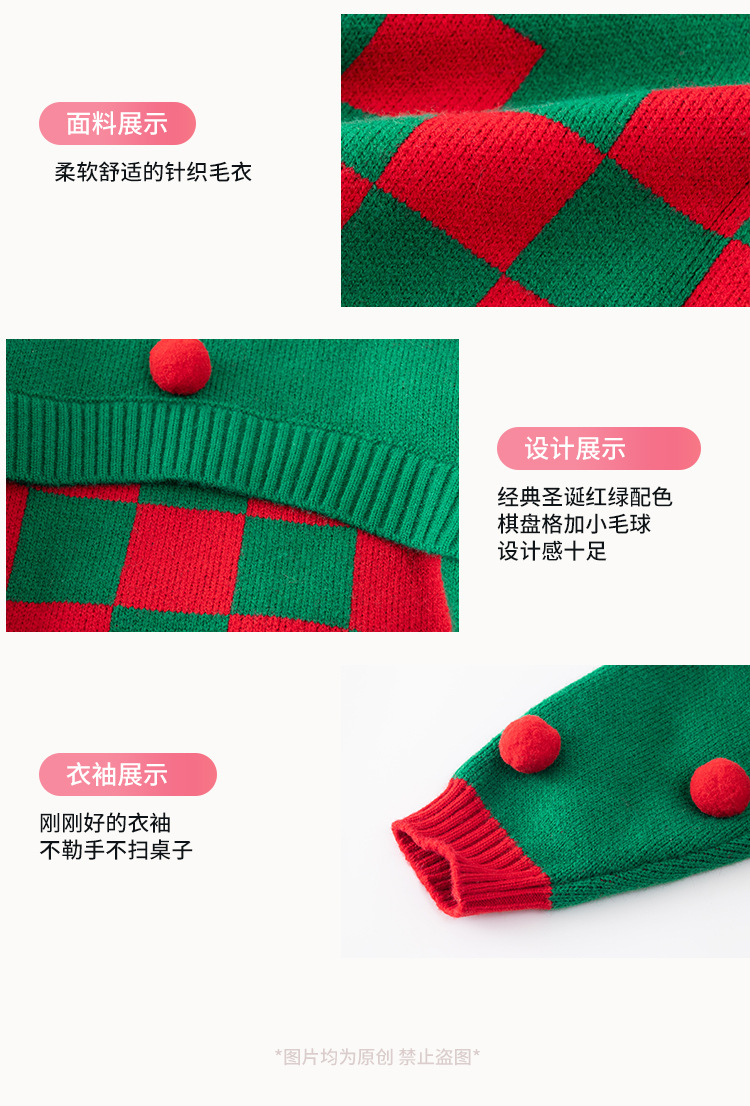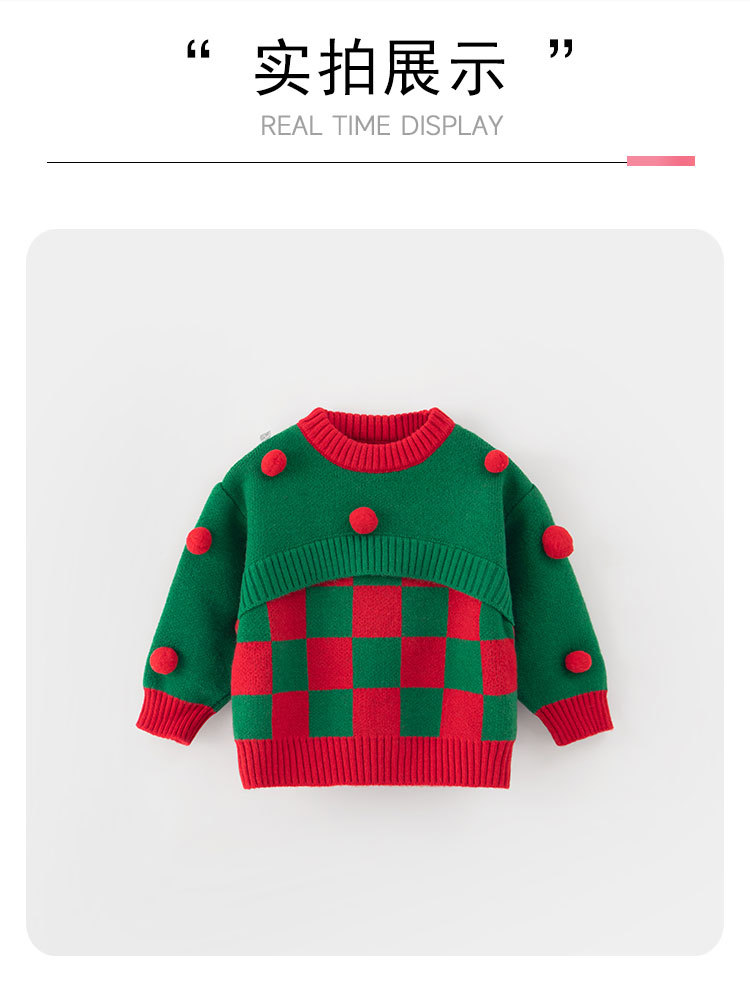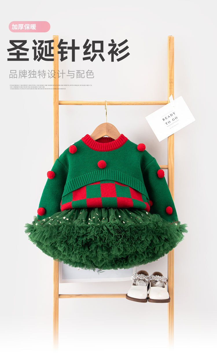 女童圣诞毛衣秋冬新款红色宝宝冬季加厚打底网红儿童圣诞节套头衫