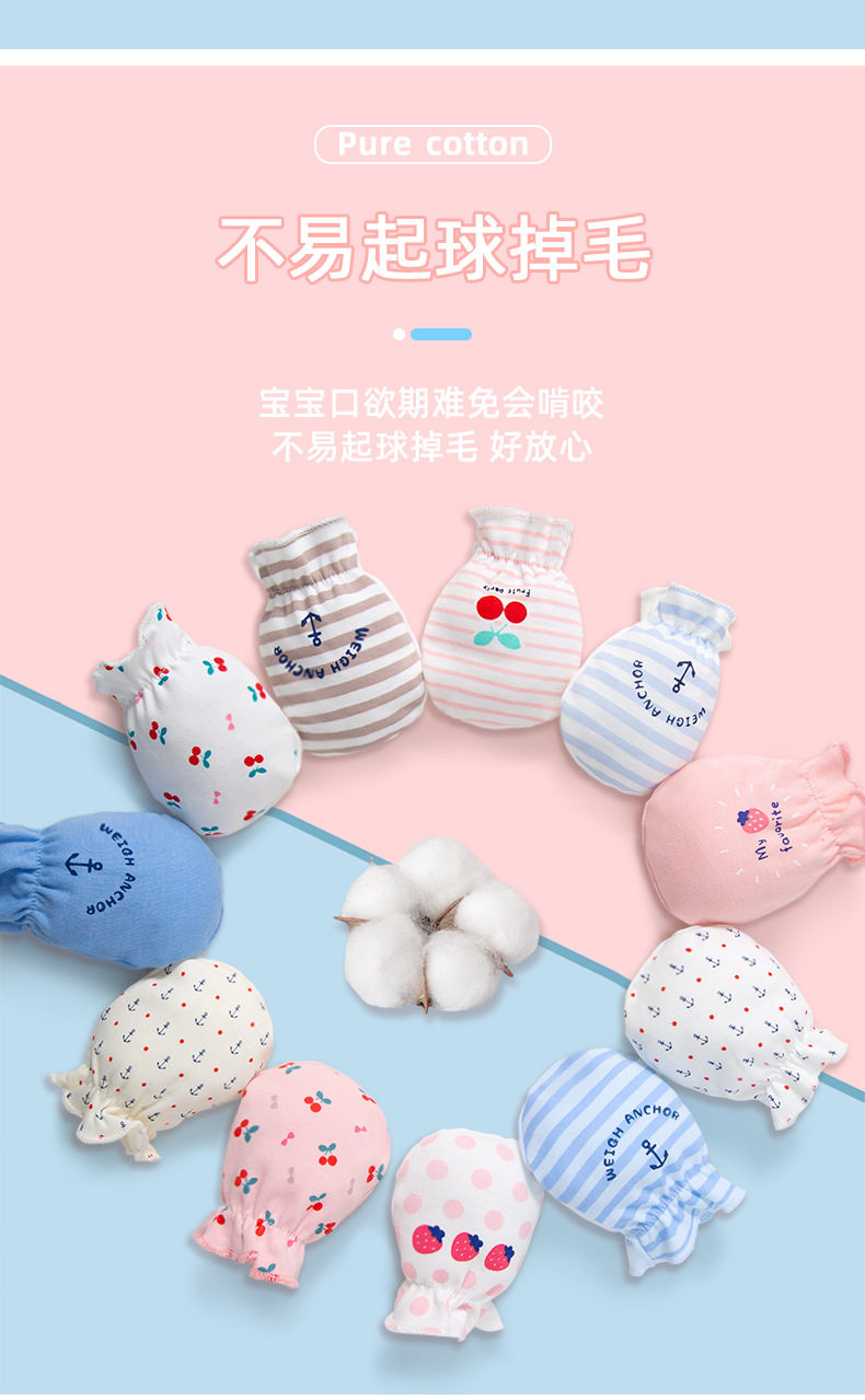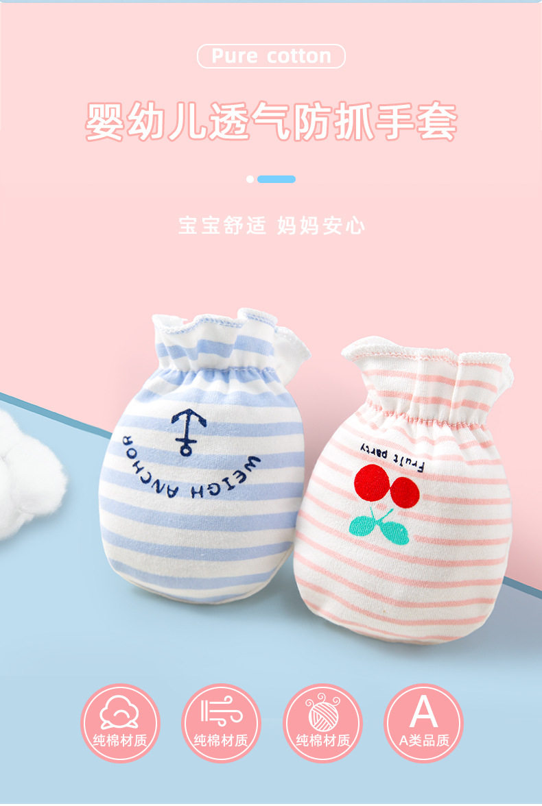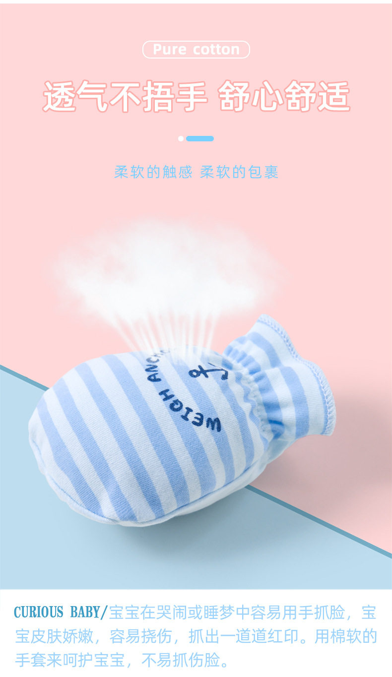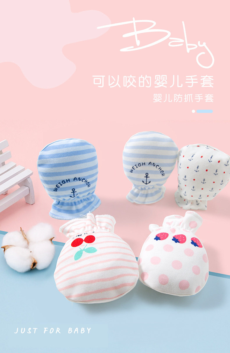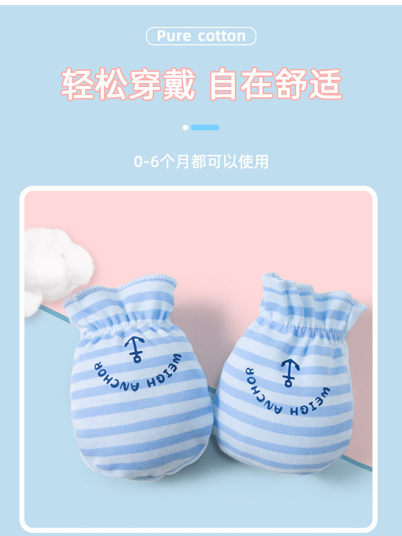 【爆品两双装】婴儿防抓手套A类纯棉可啃咬新生儿防抓脸护手神器透气高弹力脚套