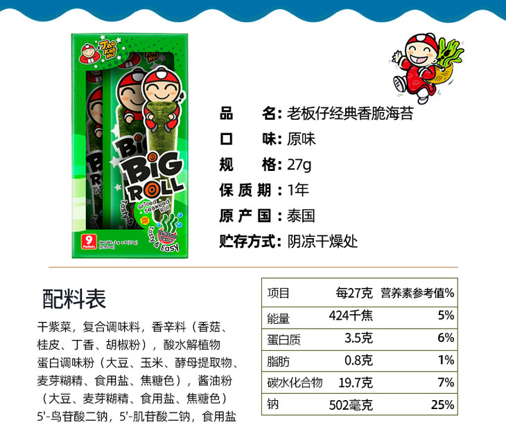 小老板经典原味香脆海苔27g