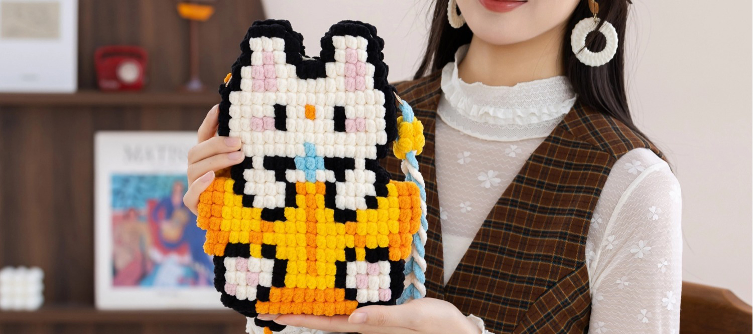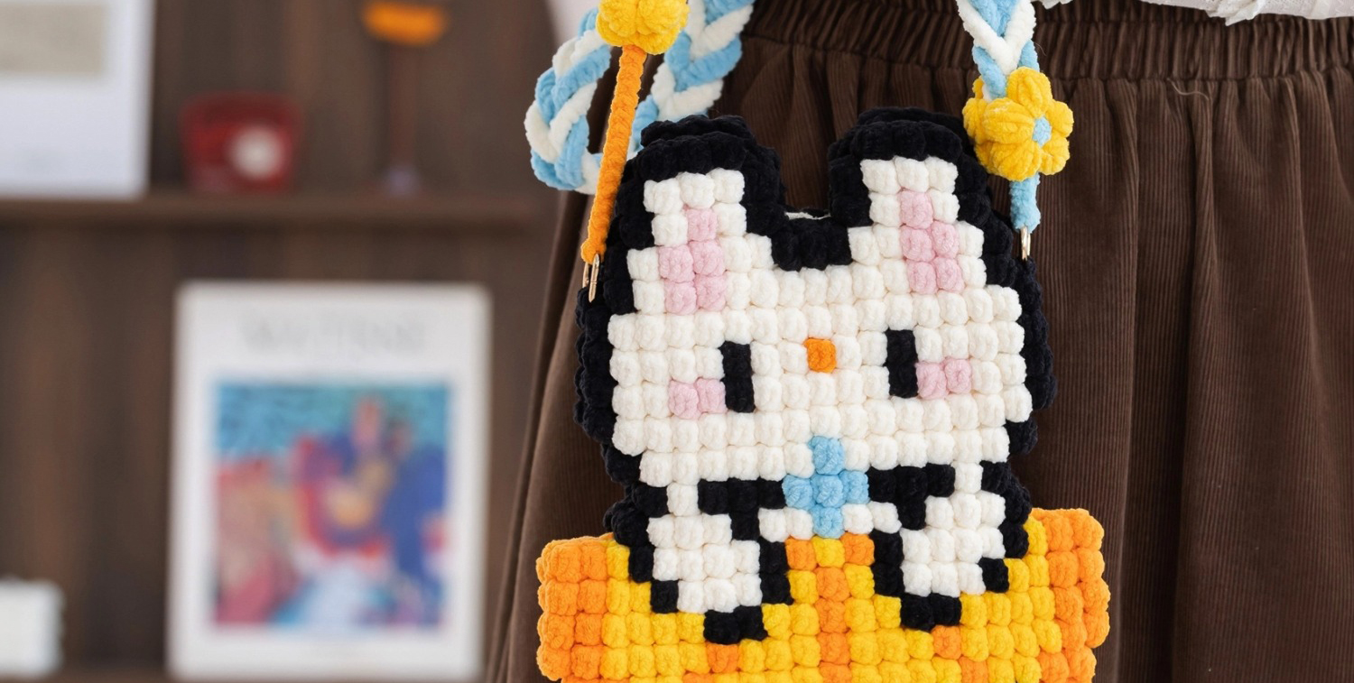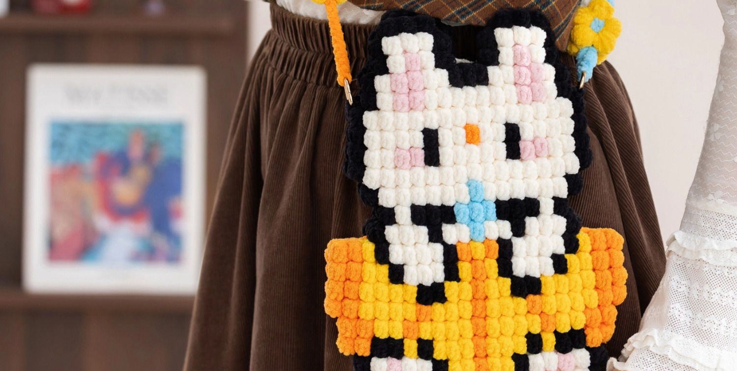 苏苏姐家萌豆手机包手工diy编织钩针毛线团自制手机包材料包