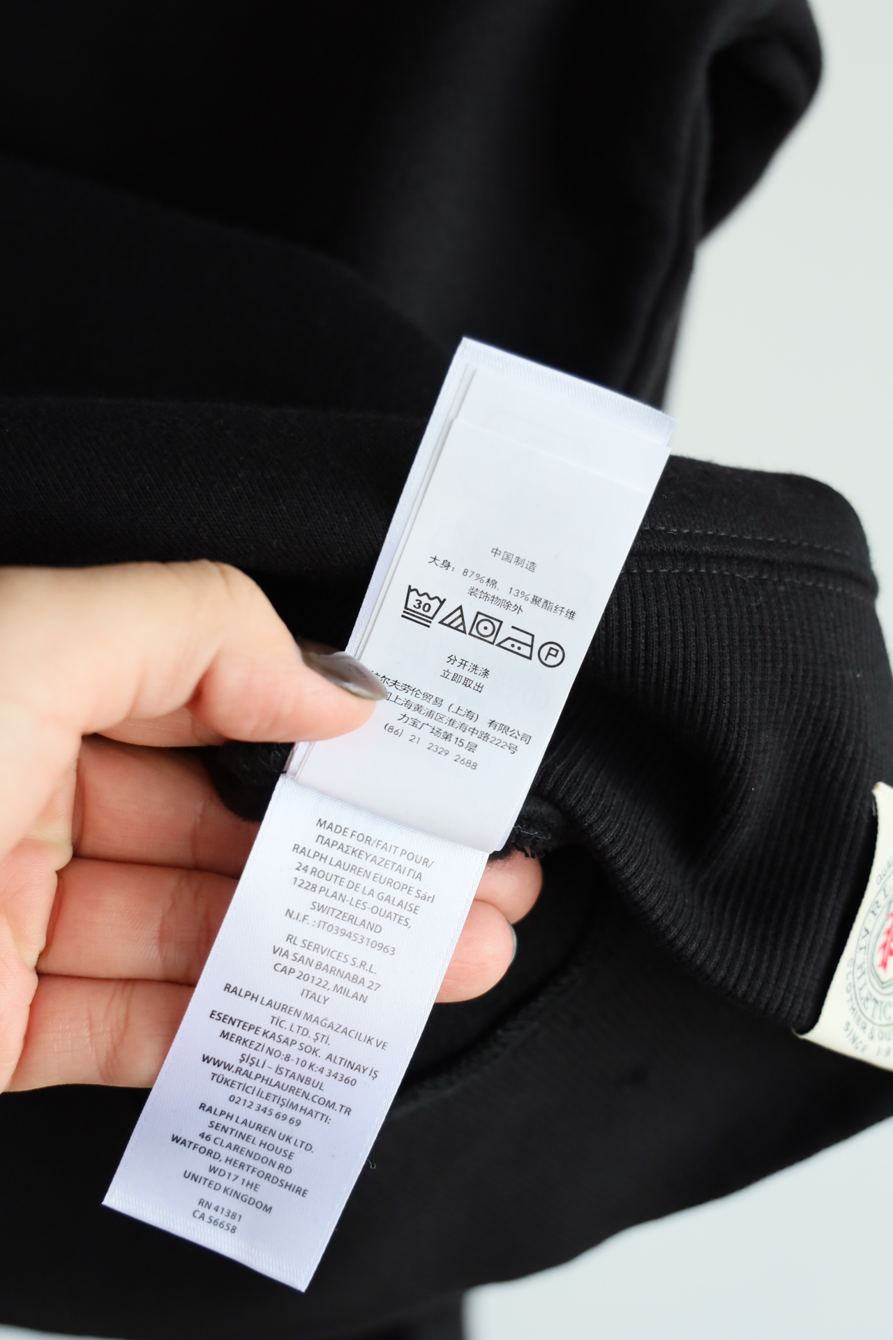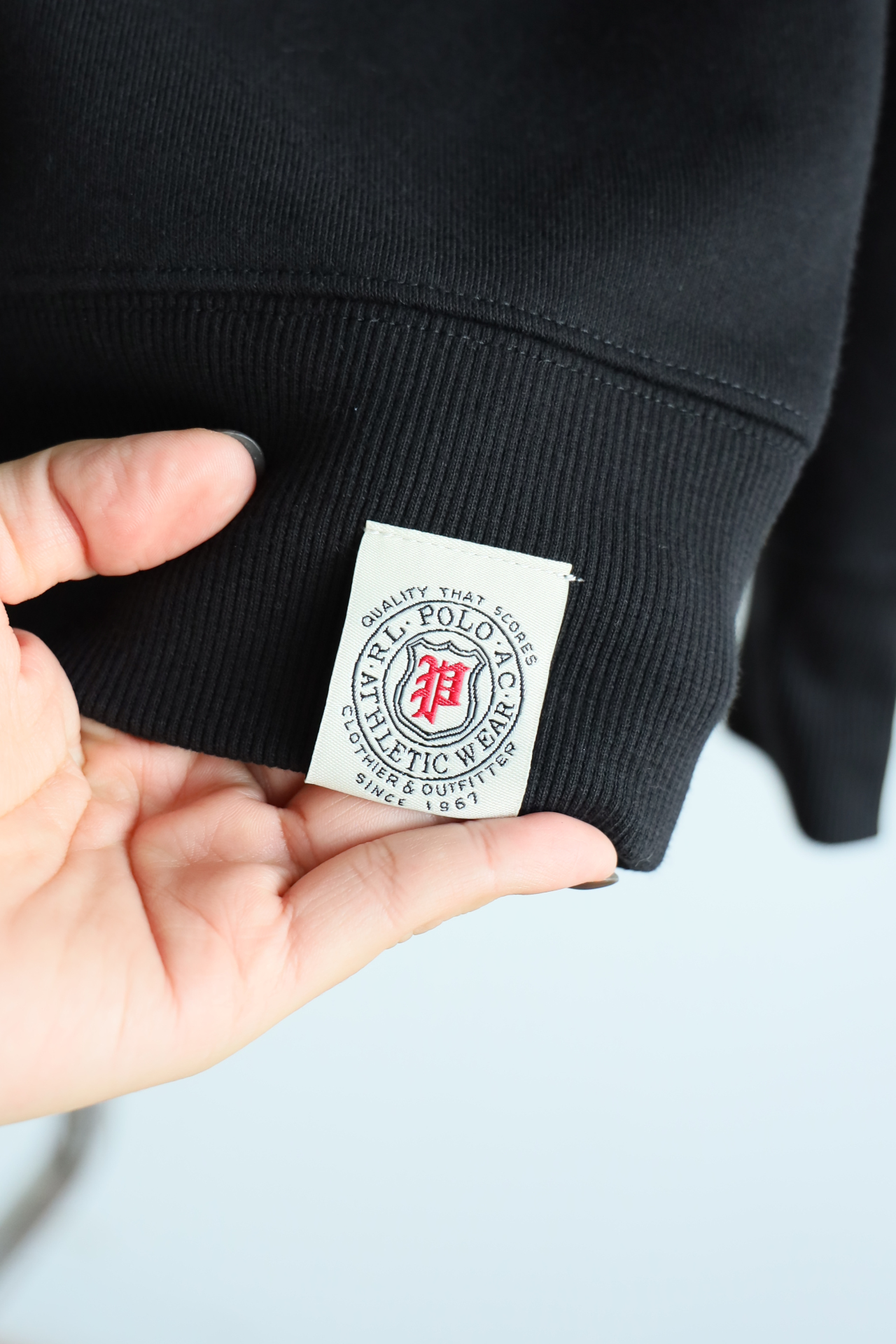 左侧下摆饰有R.L Po1o AC Ath1etic Wear字样标签