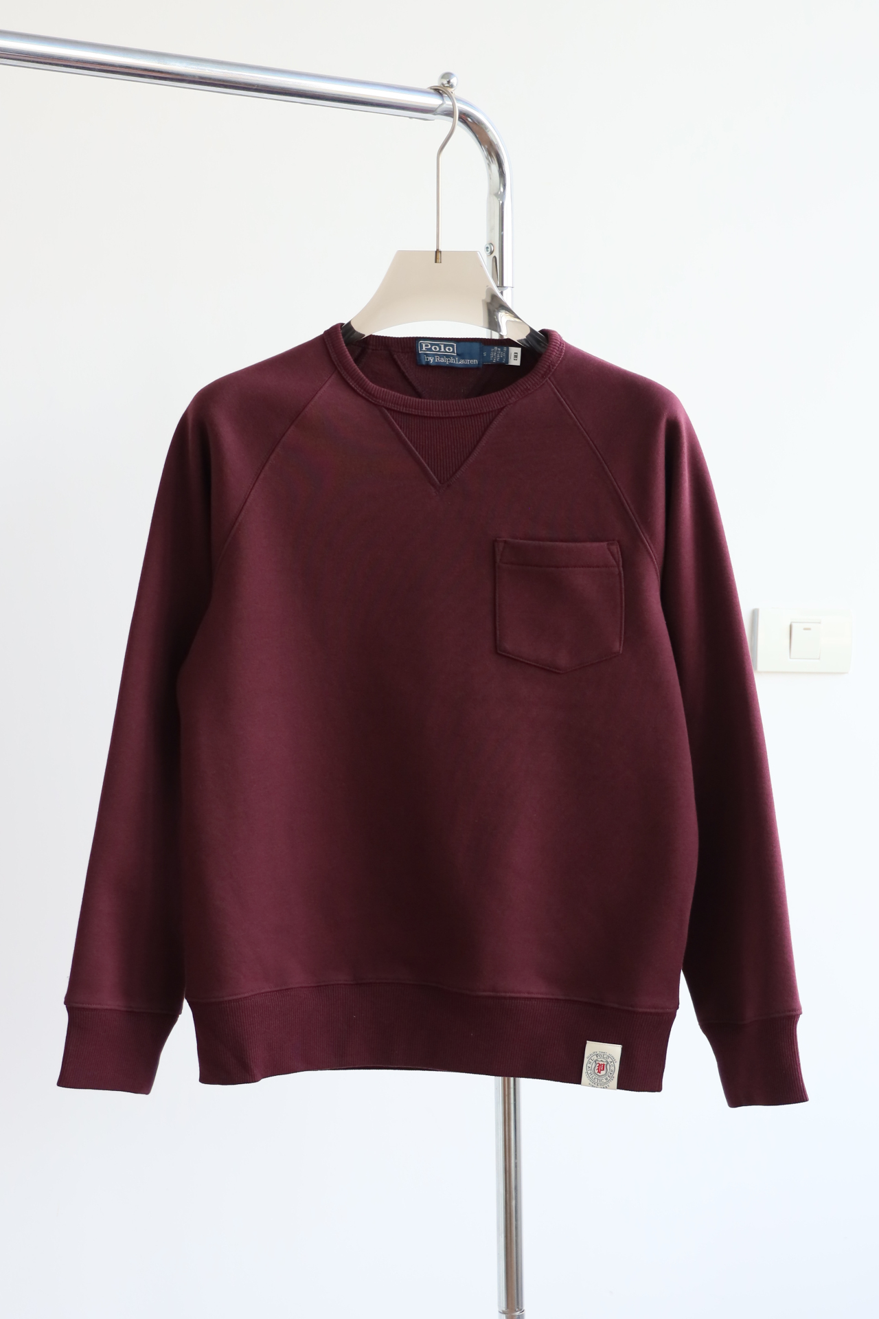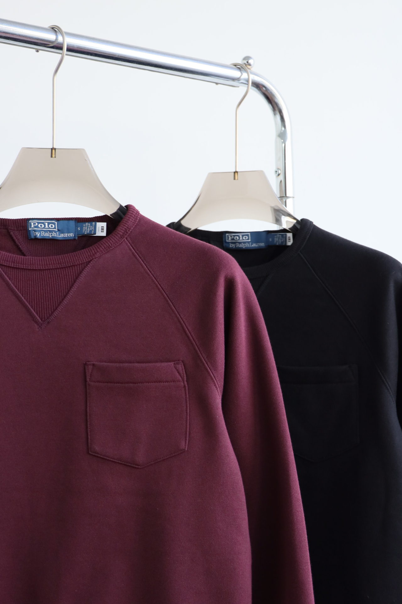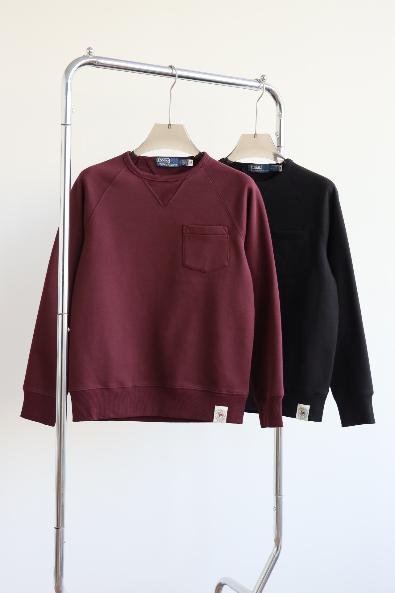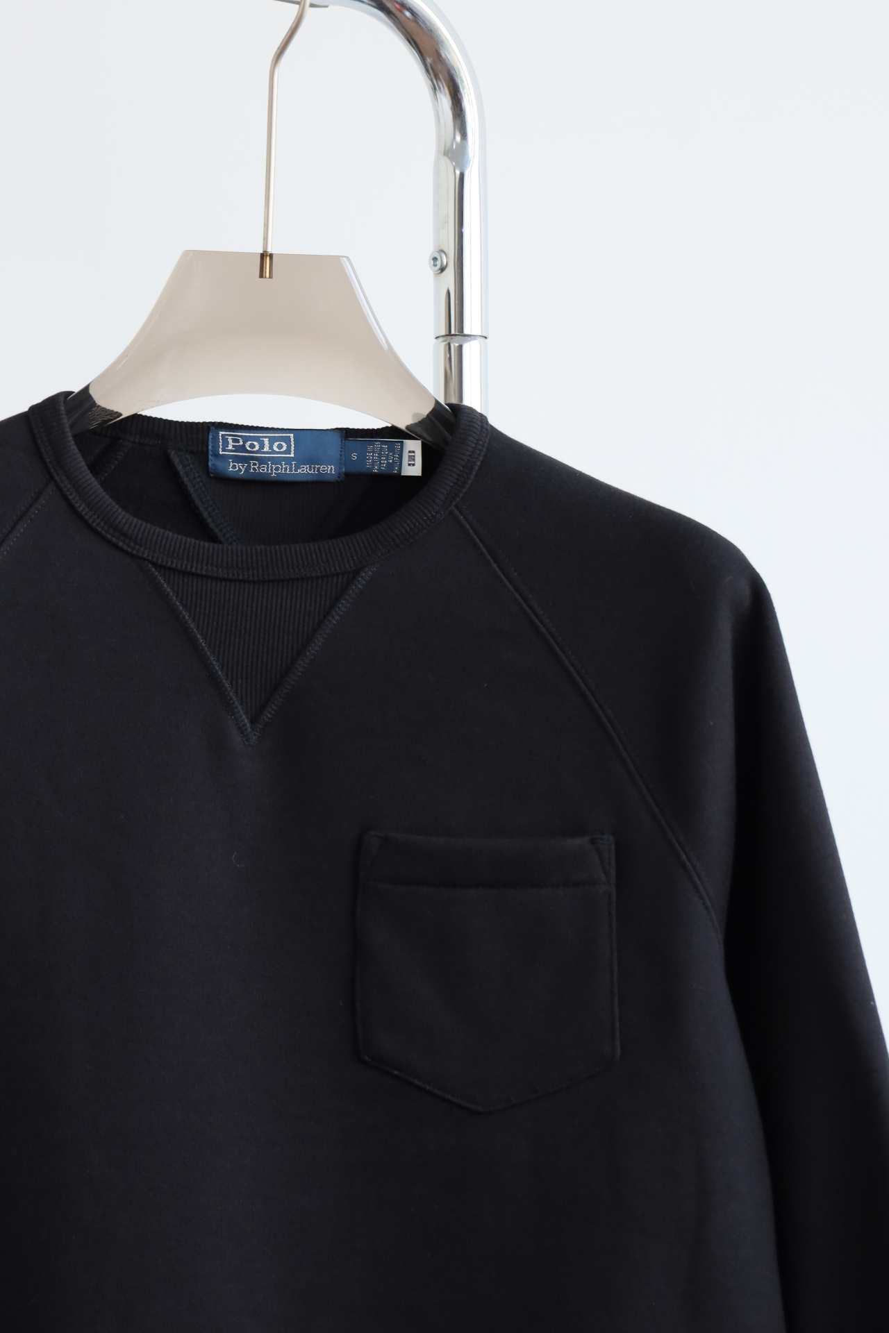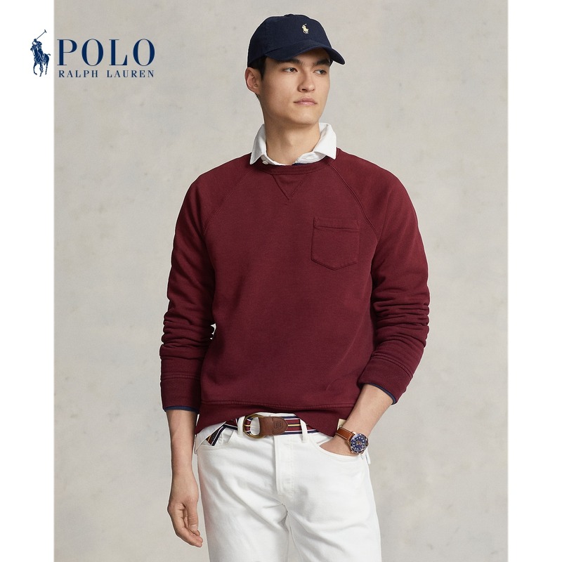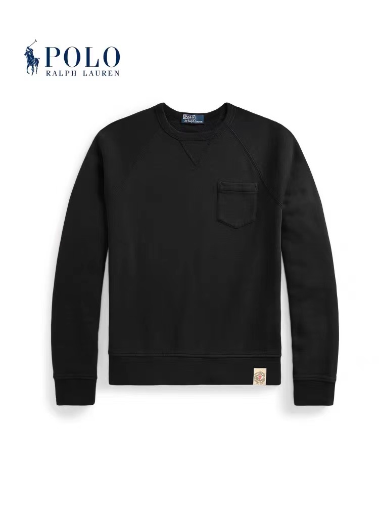 R.L 23年秋冬 成衣染色加绒布 复古口袋圆领卫衣
