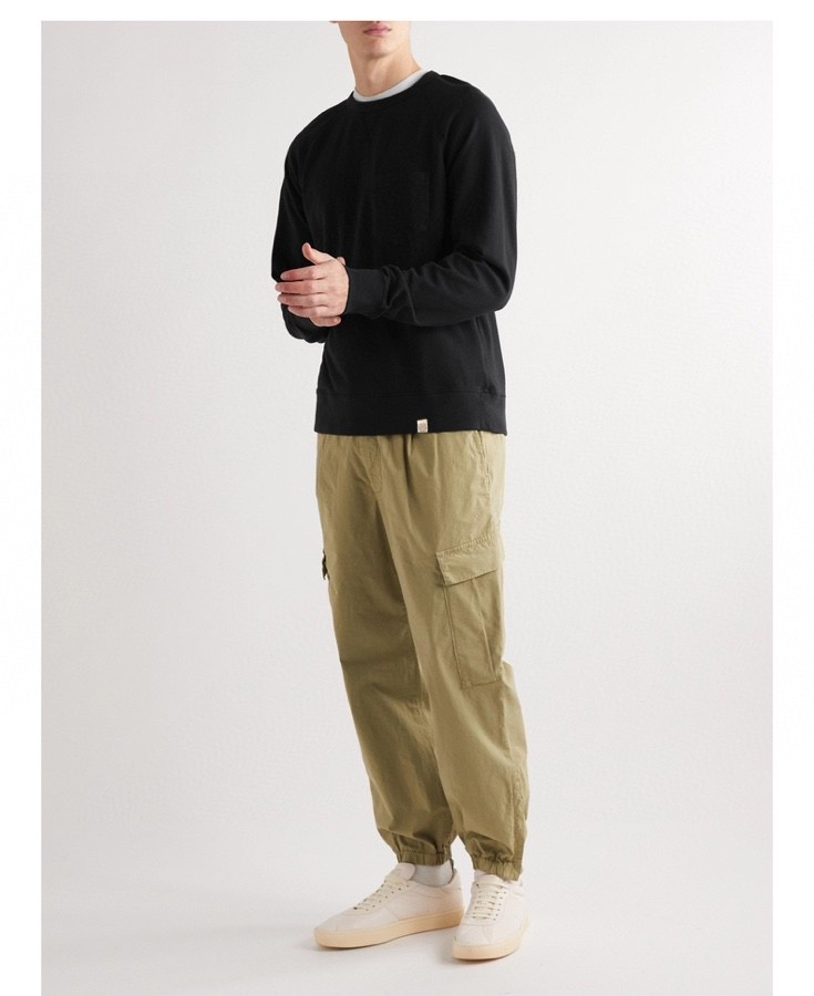这款运动衫经成衣染色处理,呈现久经穿着的复古外观