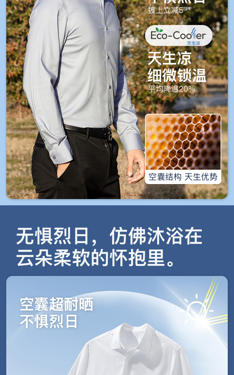 【莫代尔空瓤科技防晒衬衫】高端商务DP免烫男款抗菌速干长短袖凉感衬衫外套