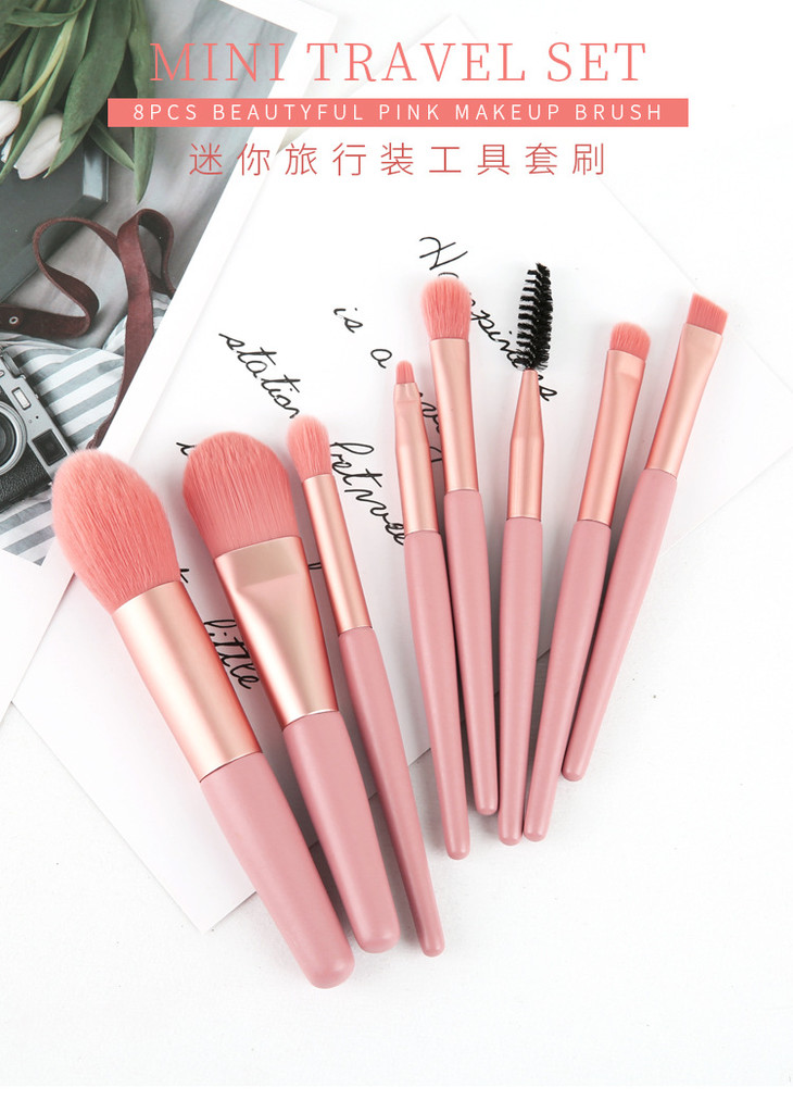 【美妆工具】*新款8支迷你化妆刷 哑光木柄便携软毛化妆涮套装美妆工具