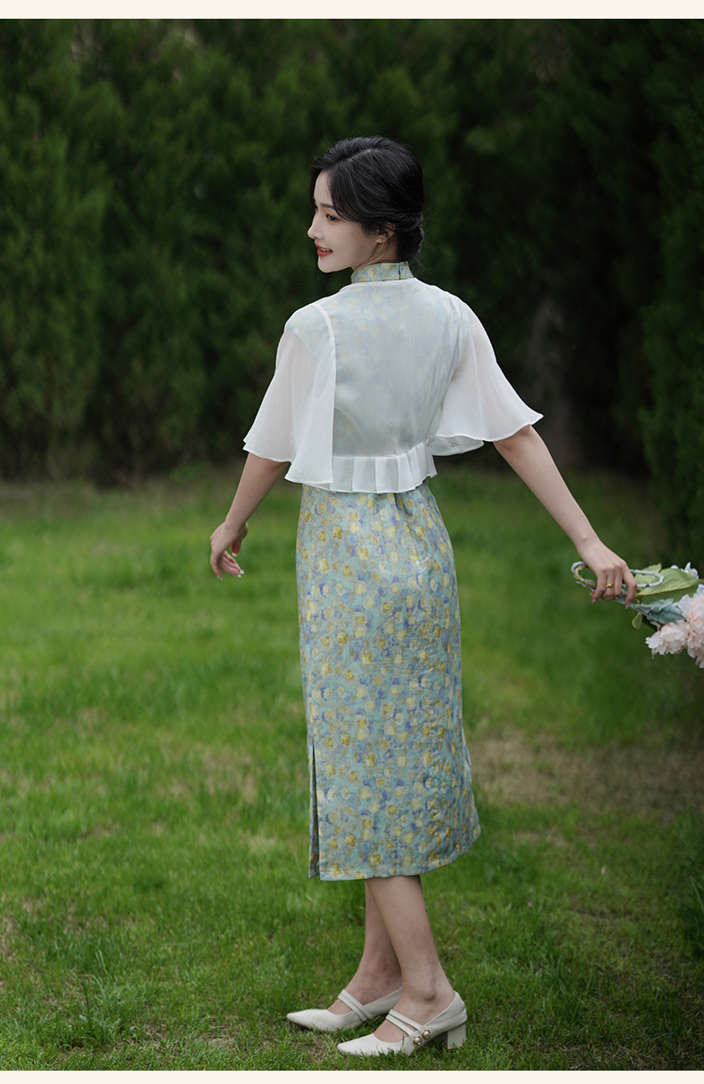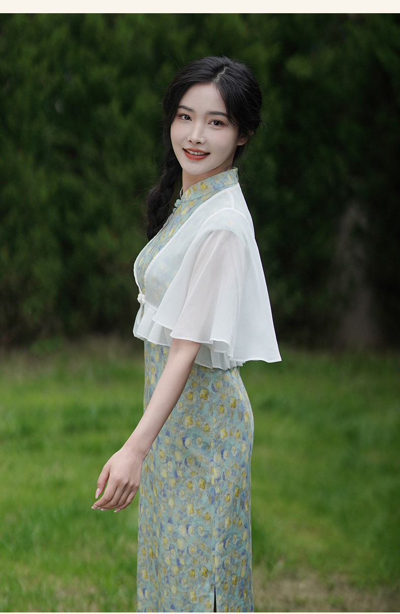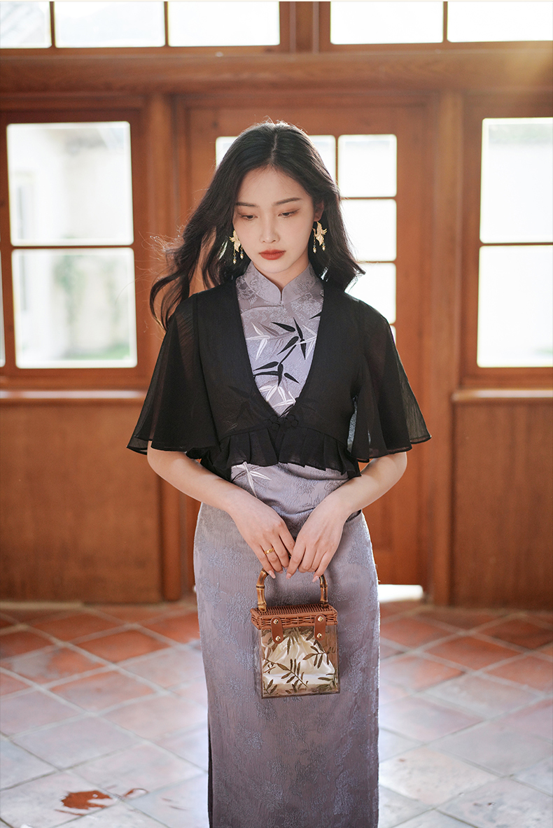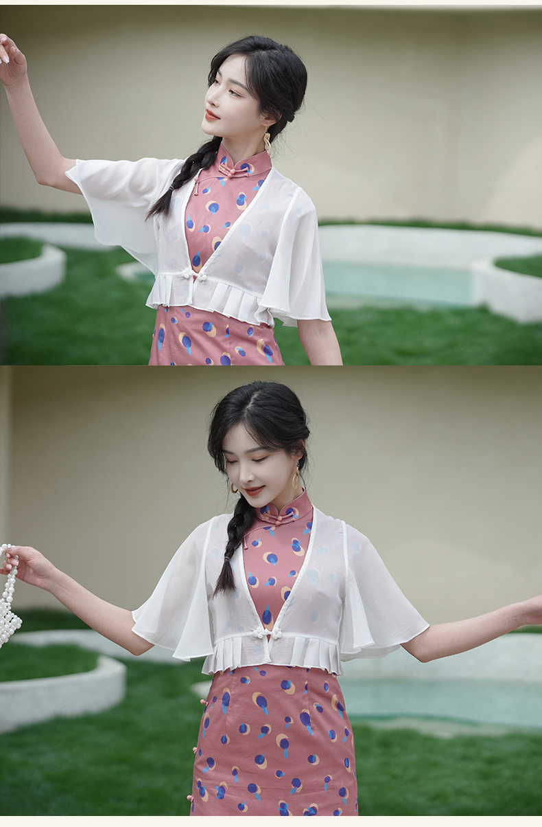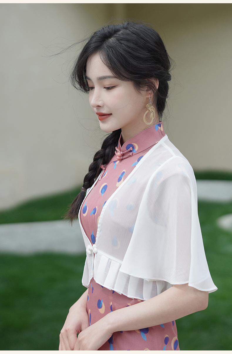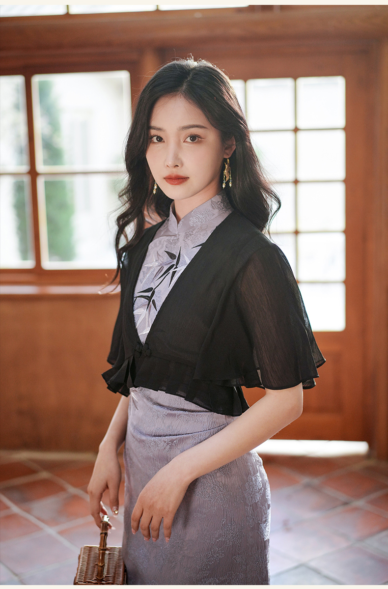 雪纺小开衫女薄款黑白色春夏季防晒旗袍空调衫外搭短袖款上衣舞苍