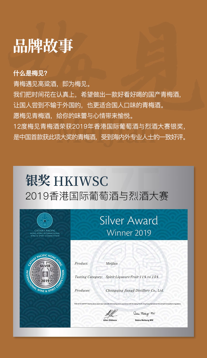 梅见青梅果酒12度女士低度甜酒微醺梅子酒 330ml/瓶