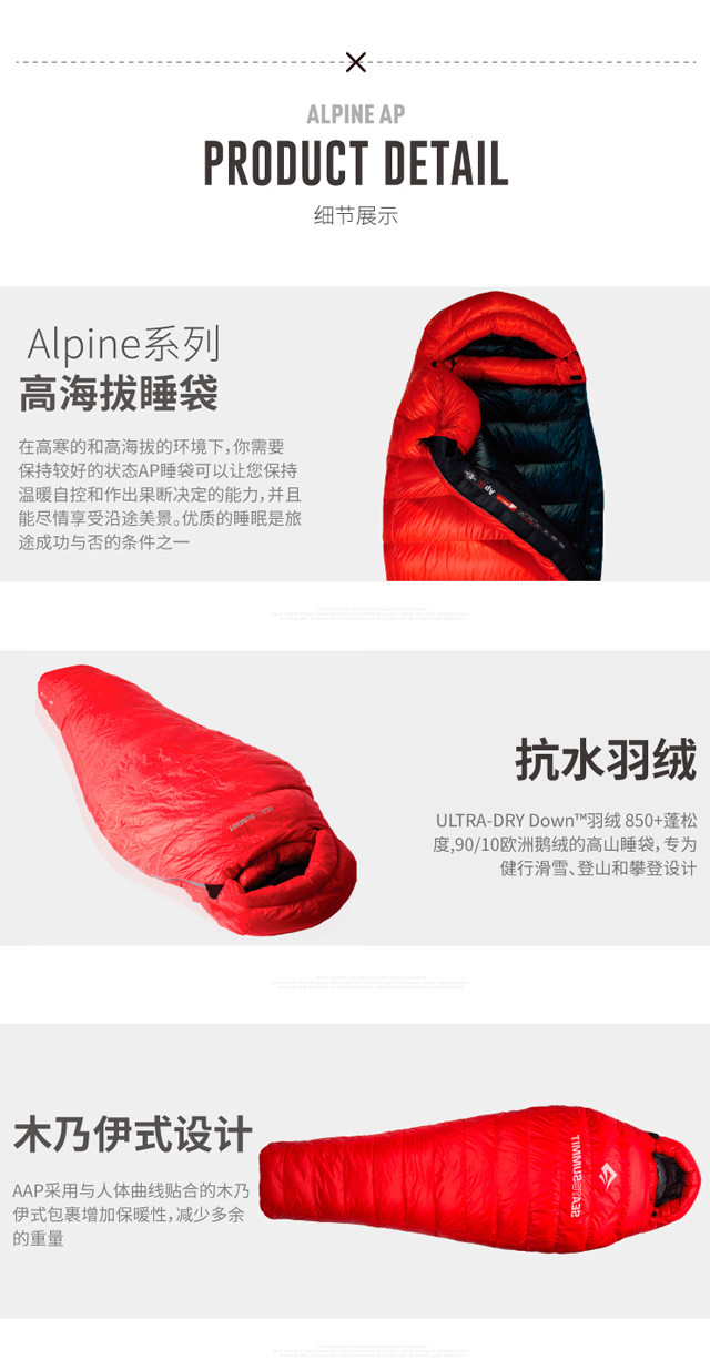 【预订款】sea to summit 高山羽绒睡袋 850+蓬松度 Ap系列