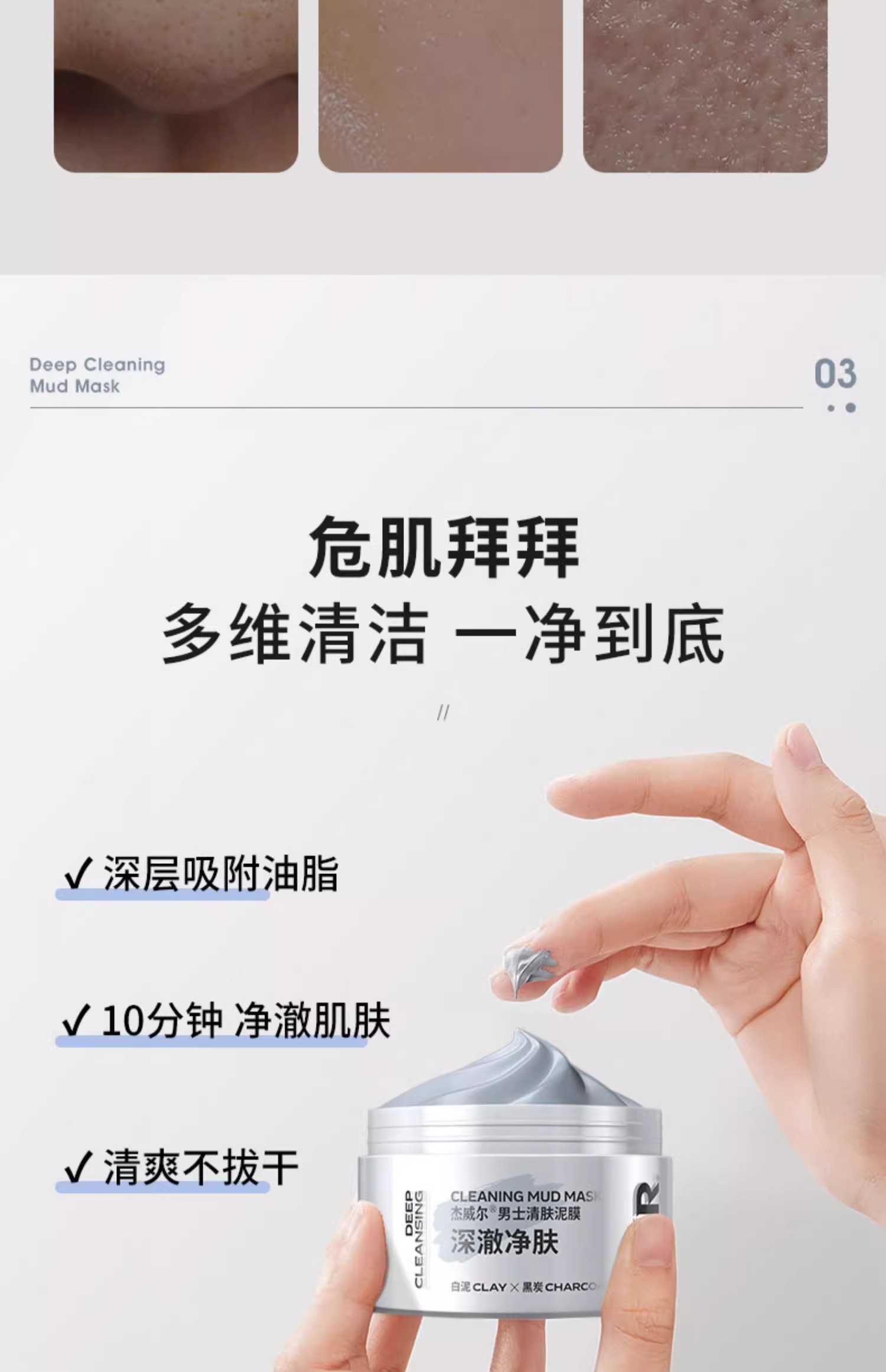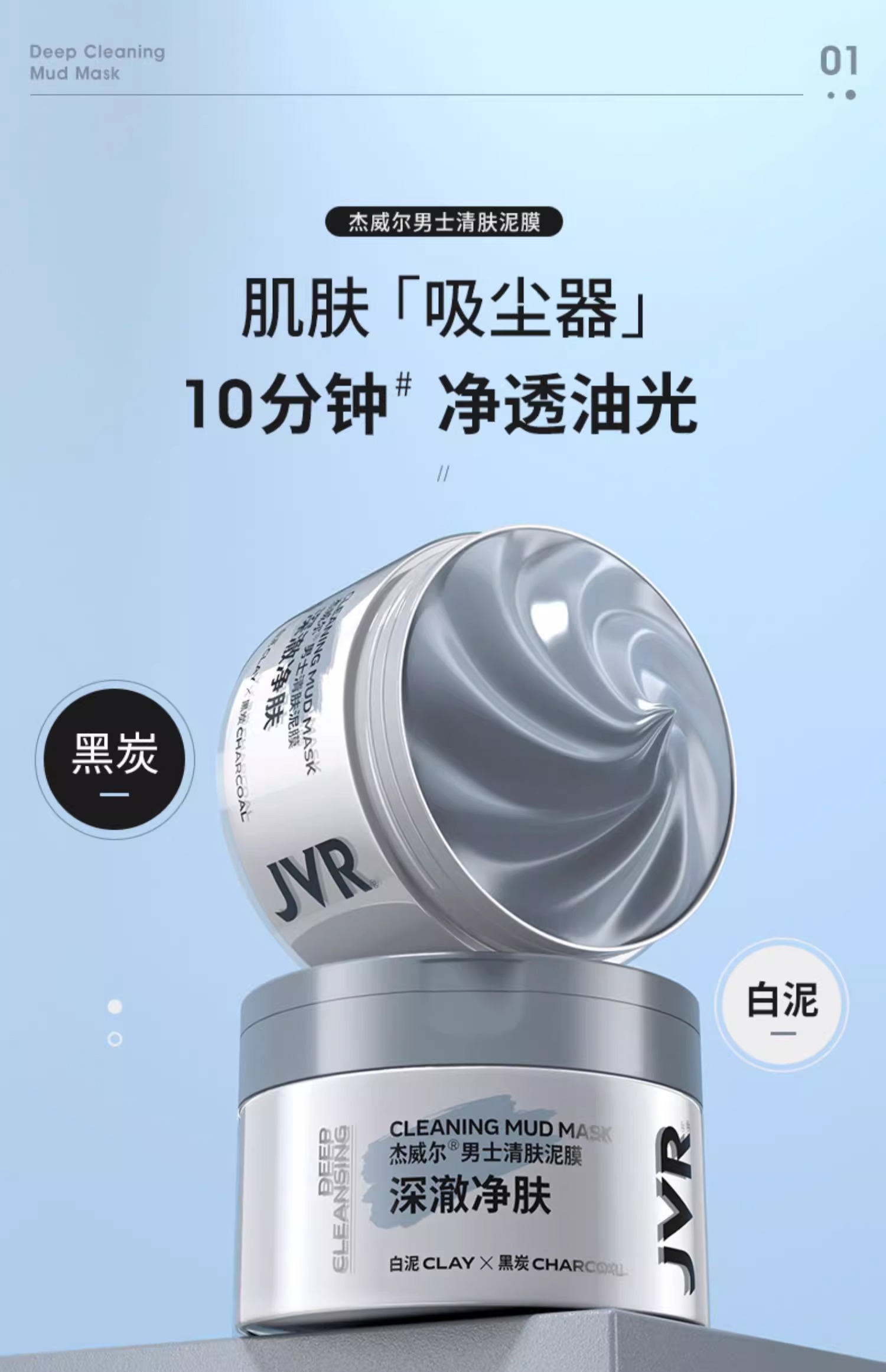 杰威尔清洁泥膜涂抹式面膜男士专用去油控油深层清洁脸部面部护肤品正品