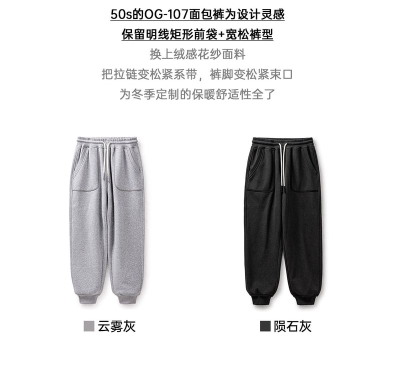 工装优选 美式复古OG107加绒卫裤运动休闲保暖松紧腰束脚裤男秋冬