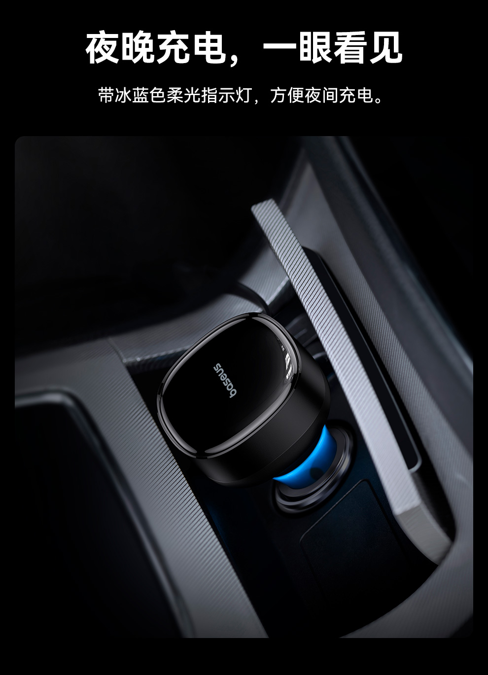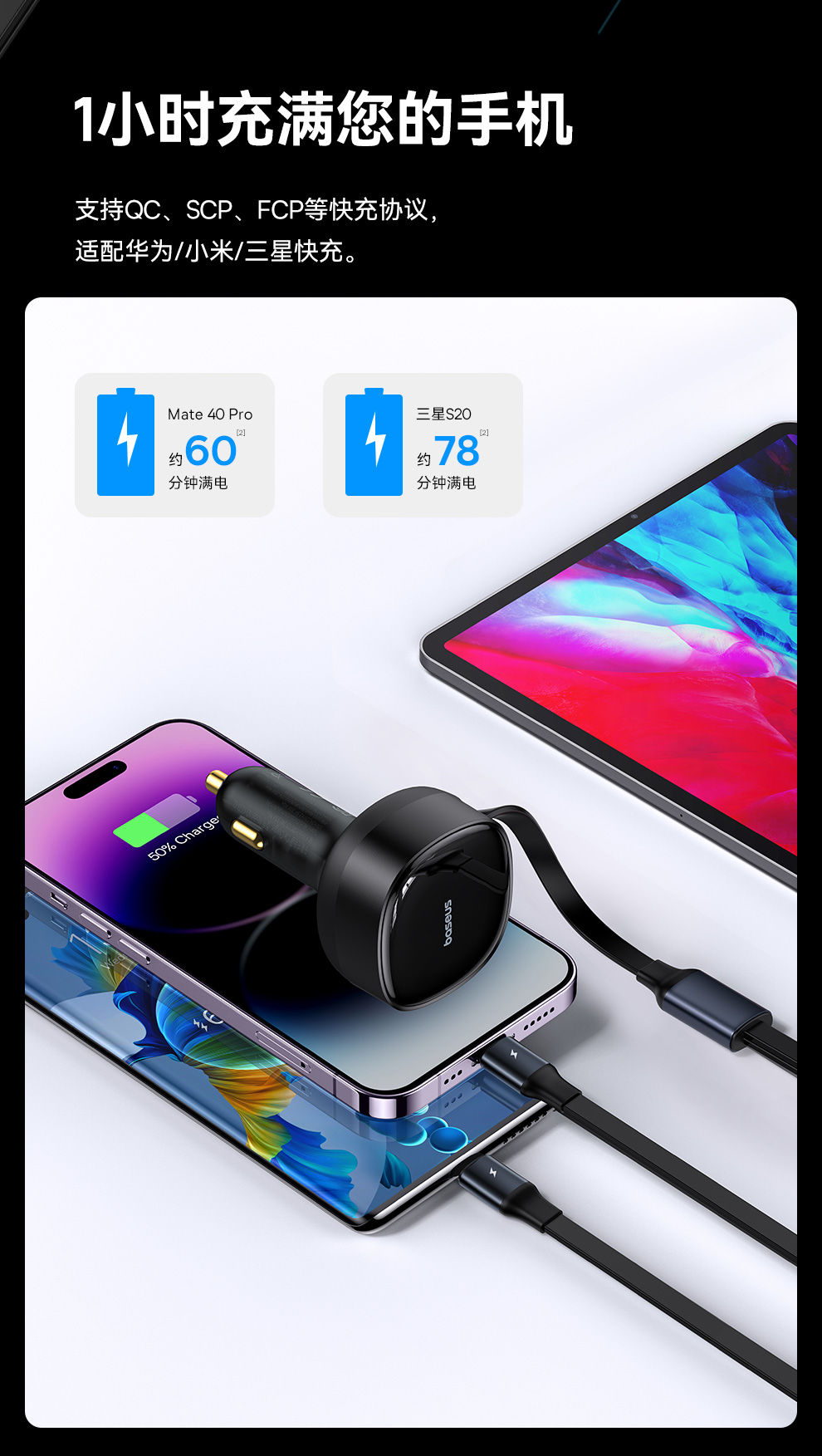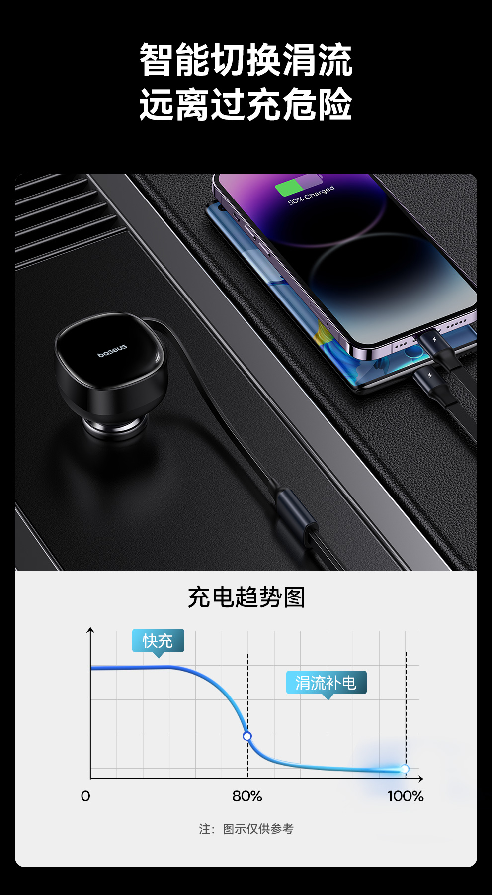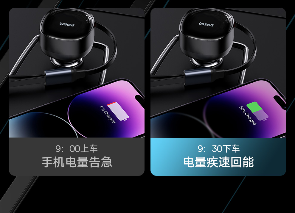 倍思 途享系列 伸缩车载充电器一拖二 2C 33W