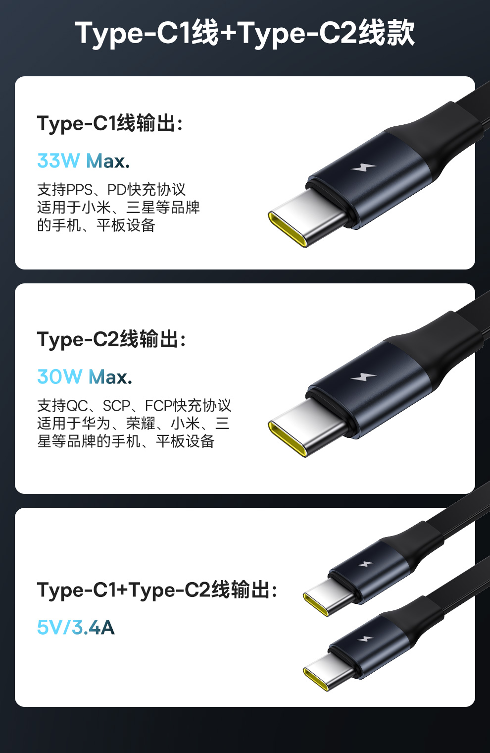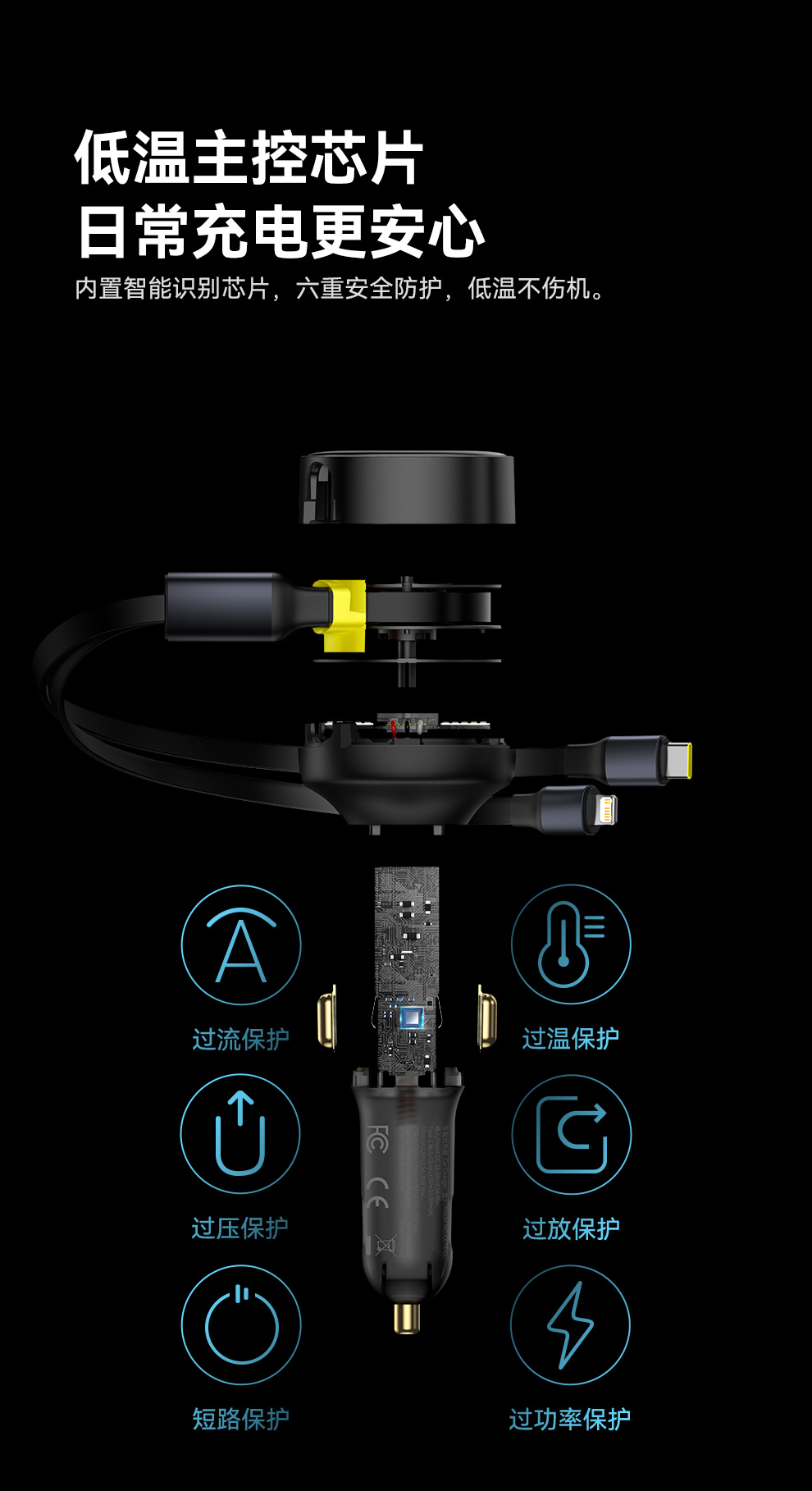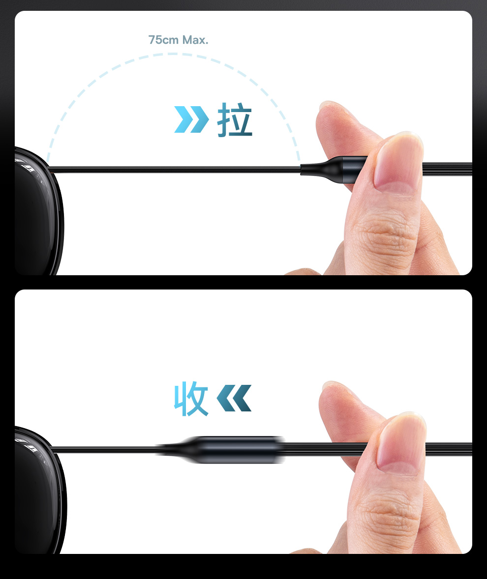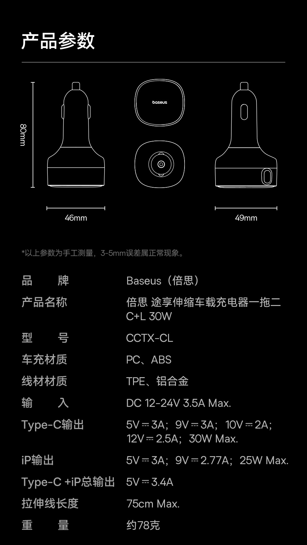 倍思 途享系列 伸缩车载充电器一拖二 2C 33W