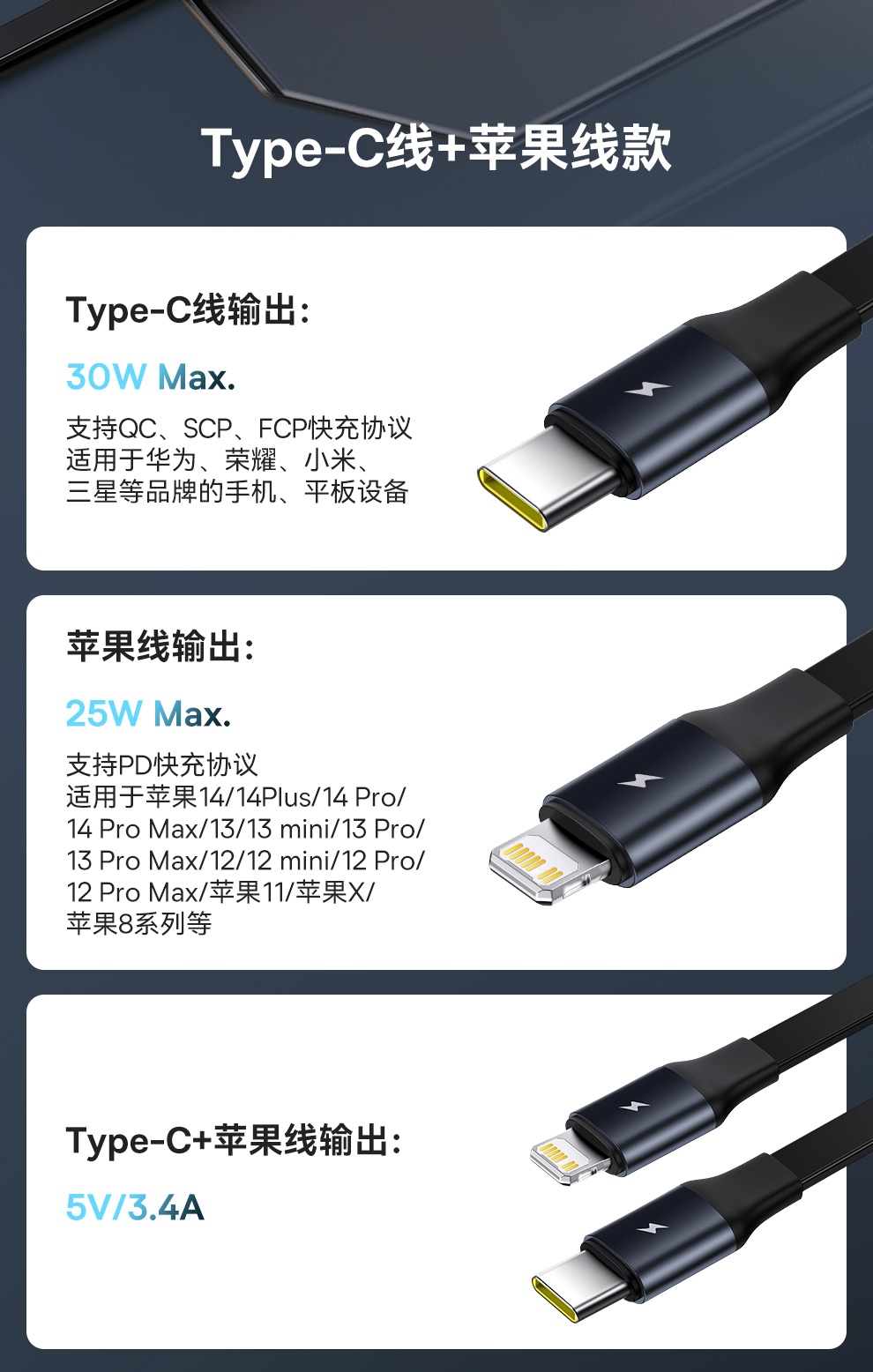 Q电2 数显快充移动电源 双线版 22.5W 带线充电宝