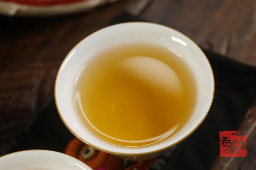 汤色油润莹澈,酽厚挂杯。杯底留香是老班章特有的花蜜香、兰香,野韵盎然,香气高扬,强烈持久。