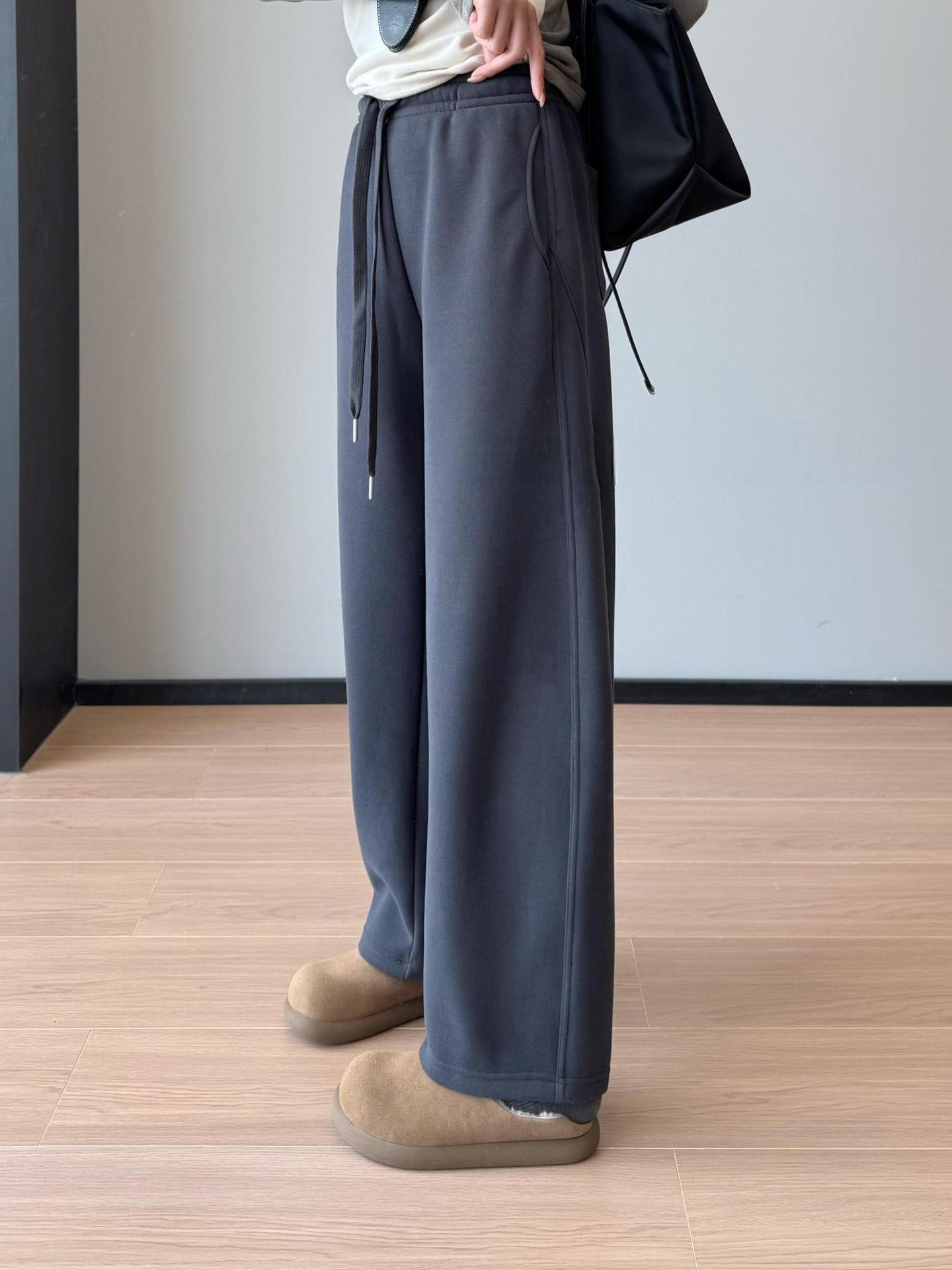 • 宽松直筒/阔腿剪裁:裤型利落不紧绷,能修饰腿型,
