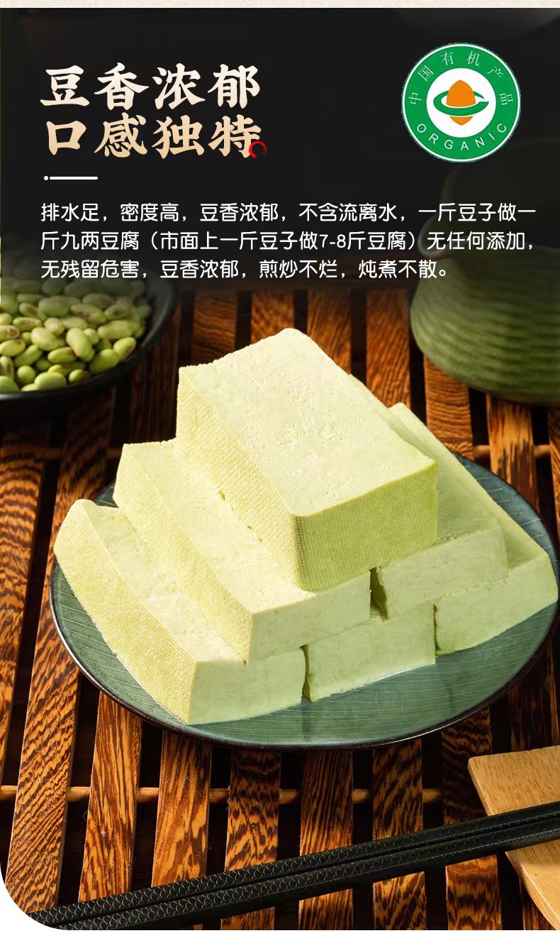 有机豆制品纯手工,嫩滑紧实,水煮健康有机营养双青豆腐