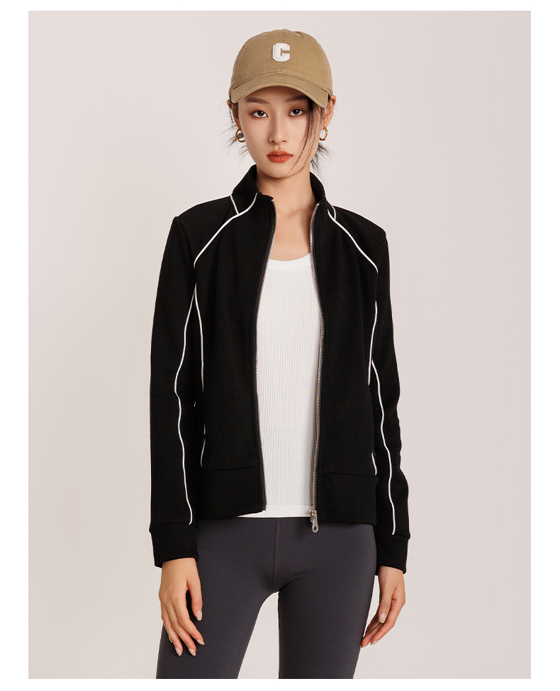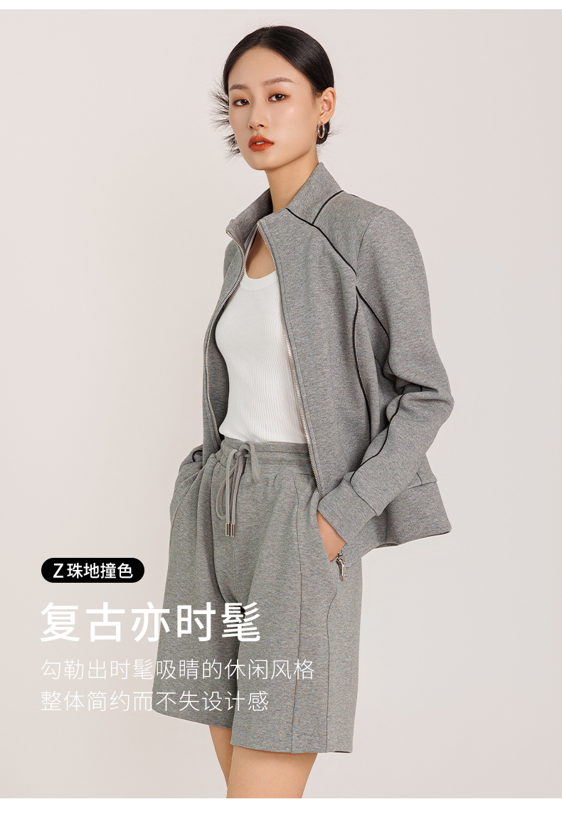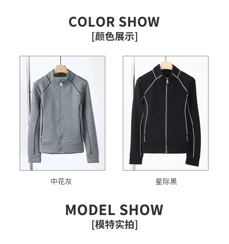 weyo女款珠地撞色线迹轻奢运动风小立领拉链上衣882051 商品图3