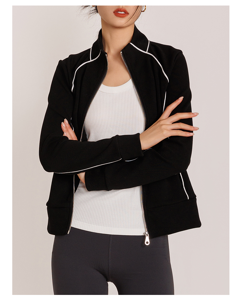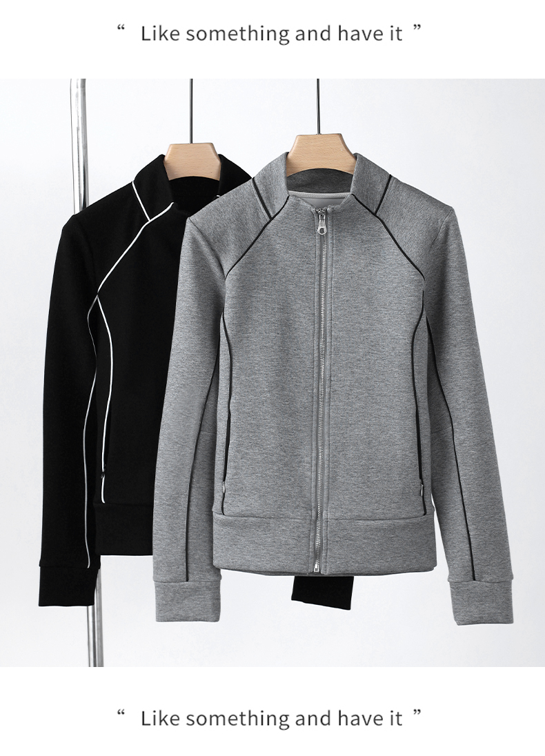 weyo女款珠地撞色线迹轻奢运动风小立领拉链上衣882051 商品图0