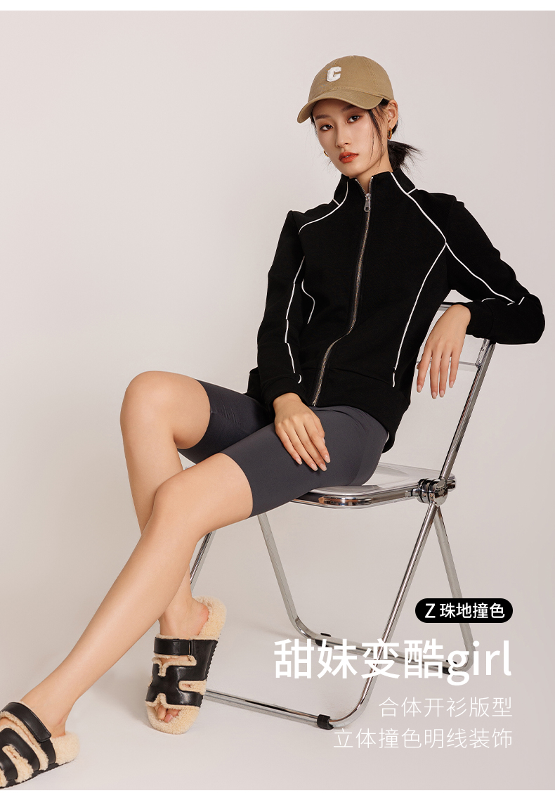 weyo女款珠地撞色线迹轻奢运动风小立领拉链上衣882051 商品图1