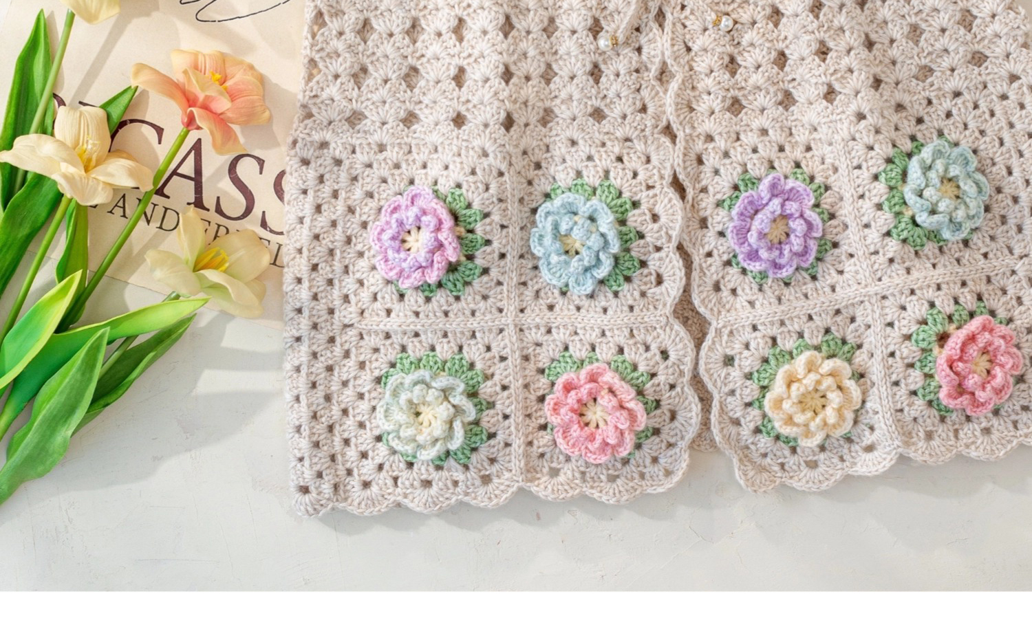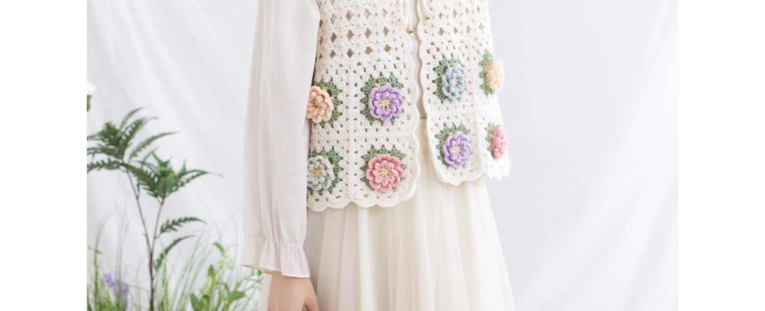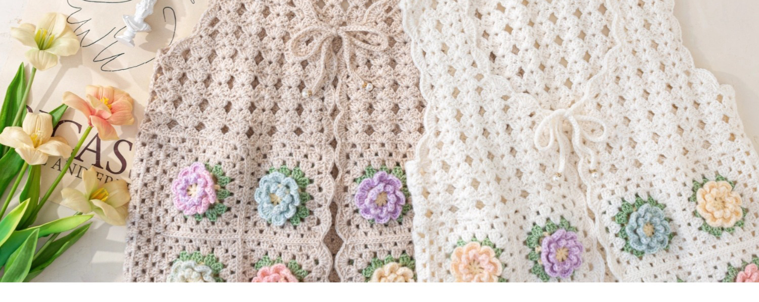 苏苏姐家云朵花饰马甲手工编织自制DIY钩针材料包毛线团打发时间