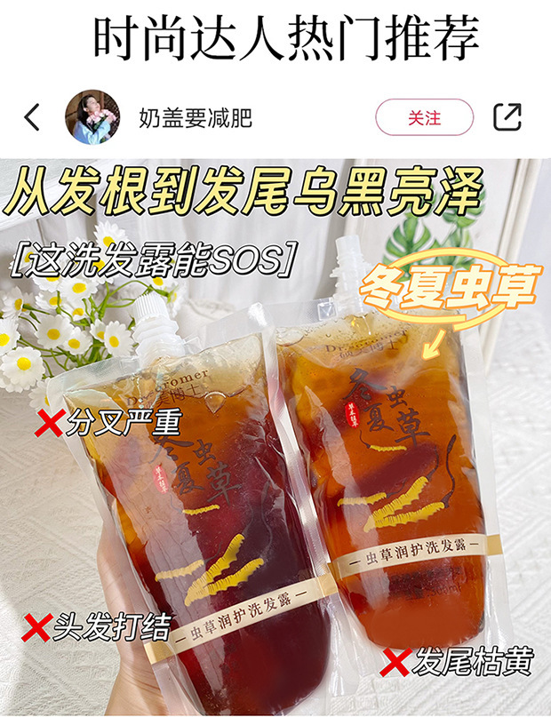 【福利❗️29.9抢2袋🔥虫草润护洗发露】草本成分,温和滋养,养发护发!控油蓬松滋养护发冬虫夏草洗发水袋装