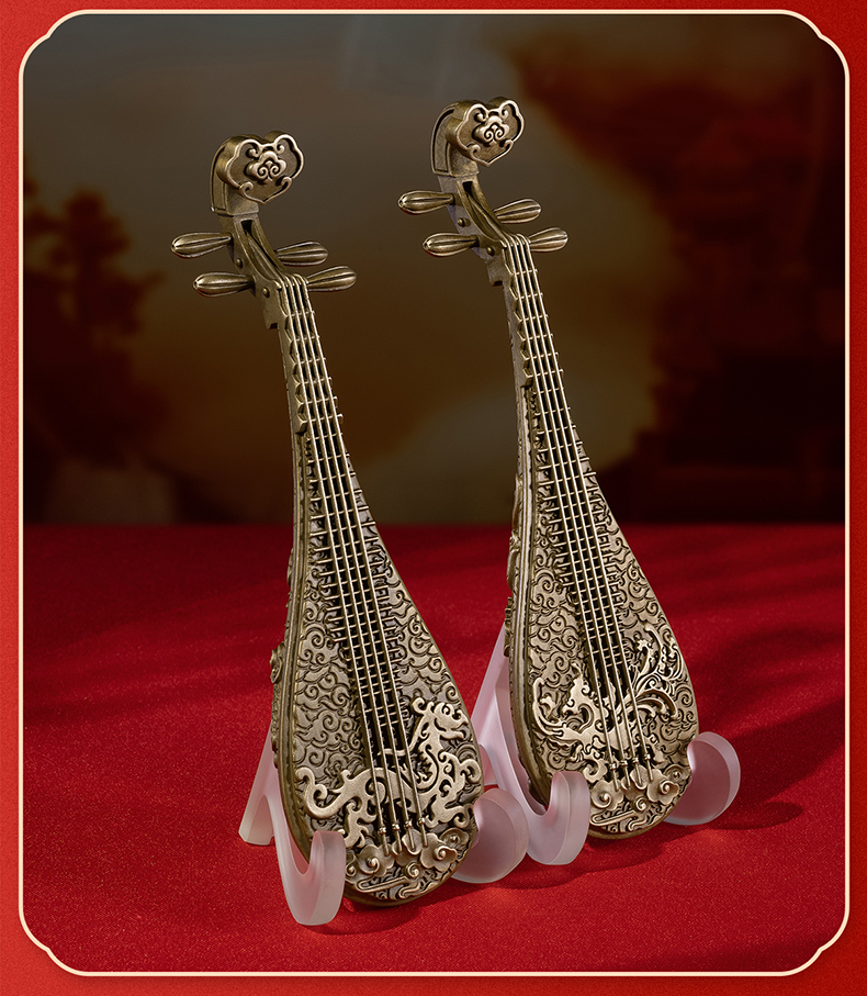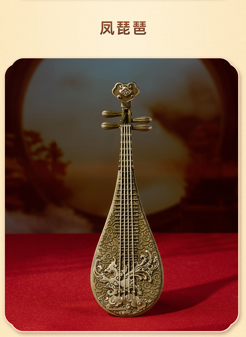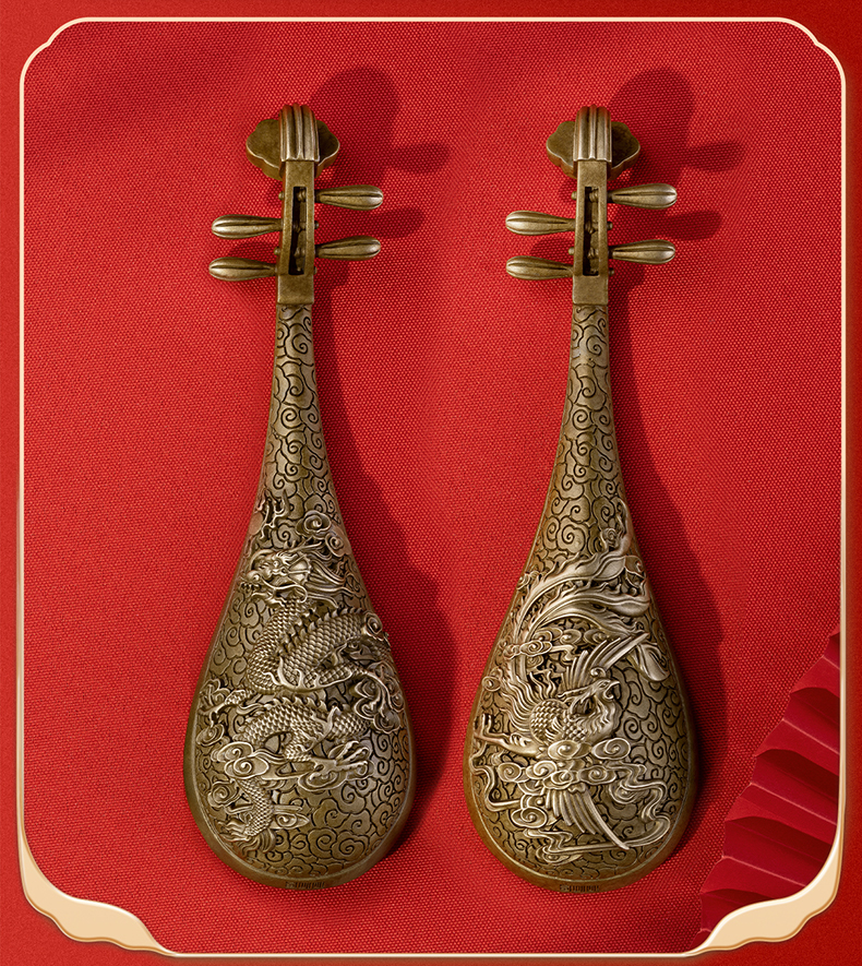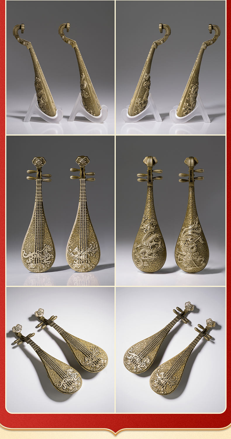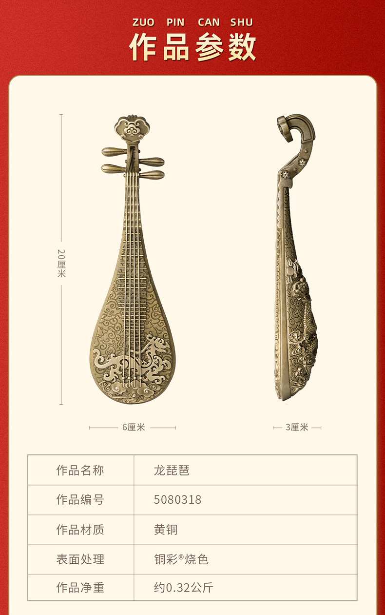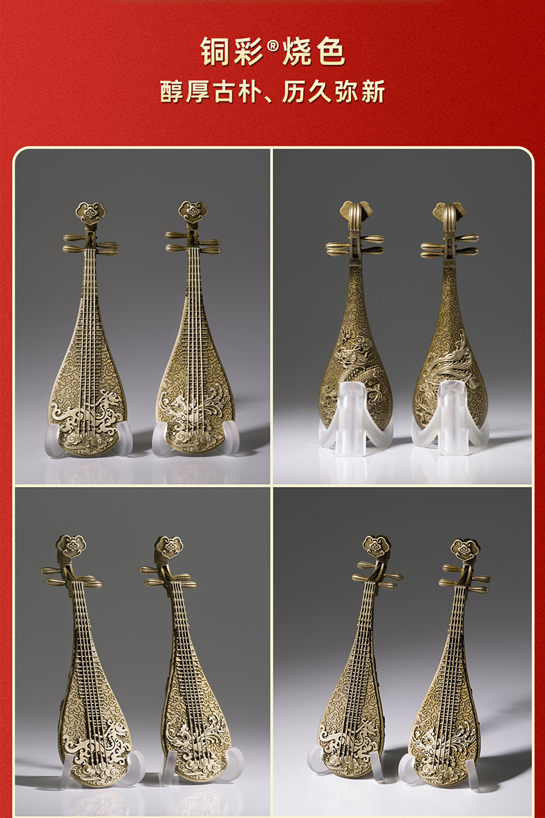 铜师傅《龙凤琵琶》客厅桌面铜乐器摆件 家居装饰工艺品 送礼摆件