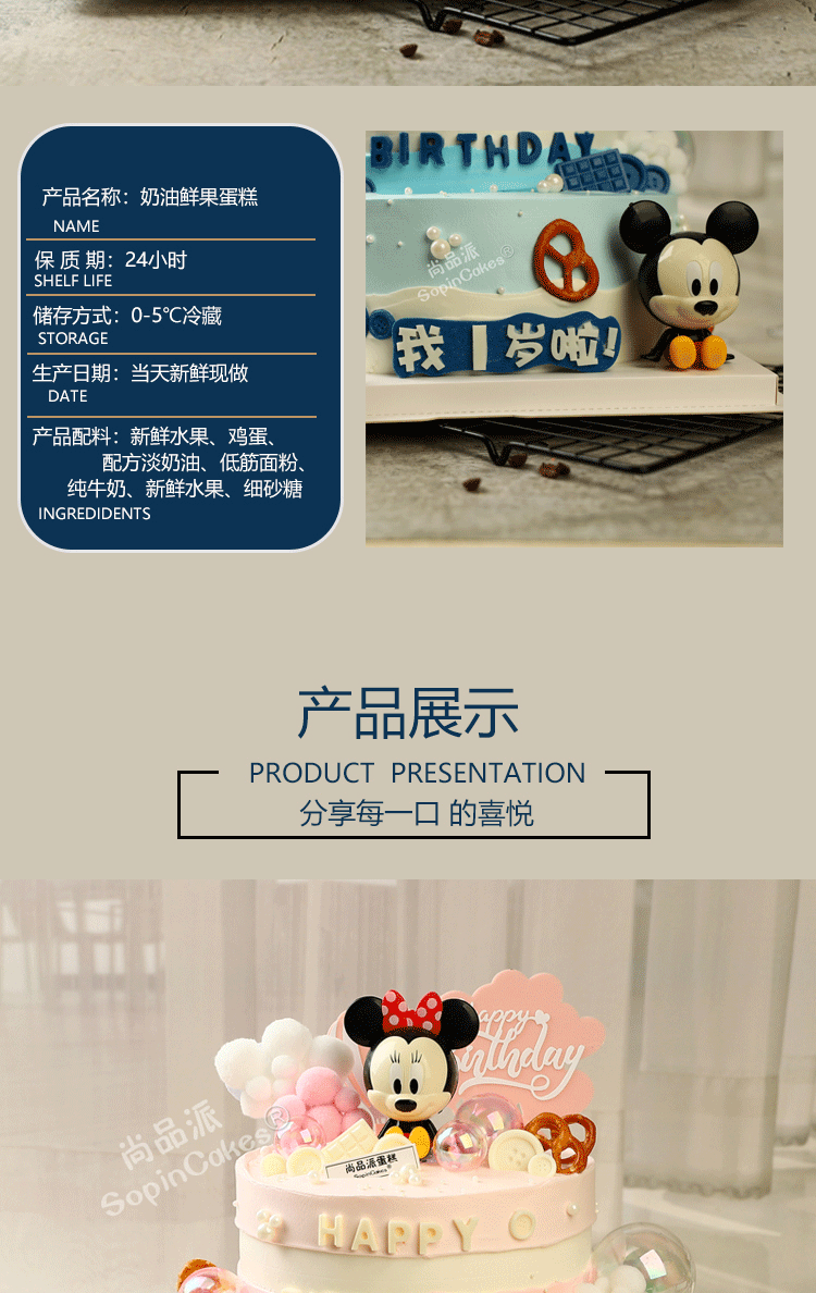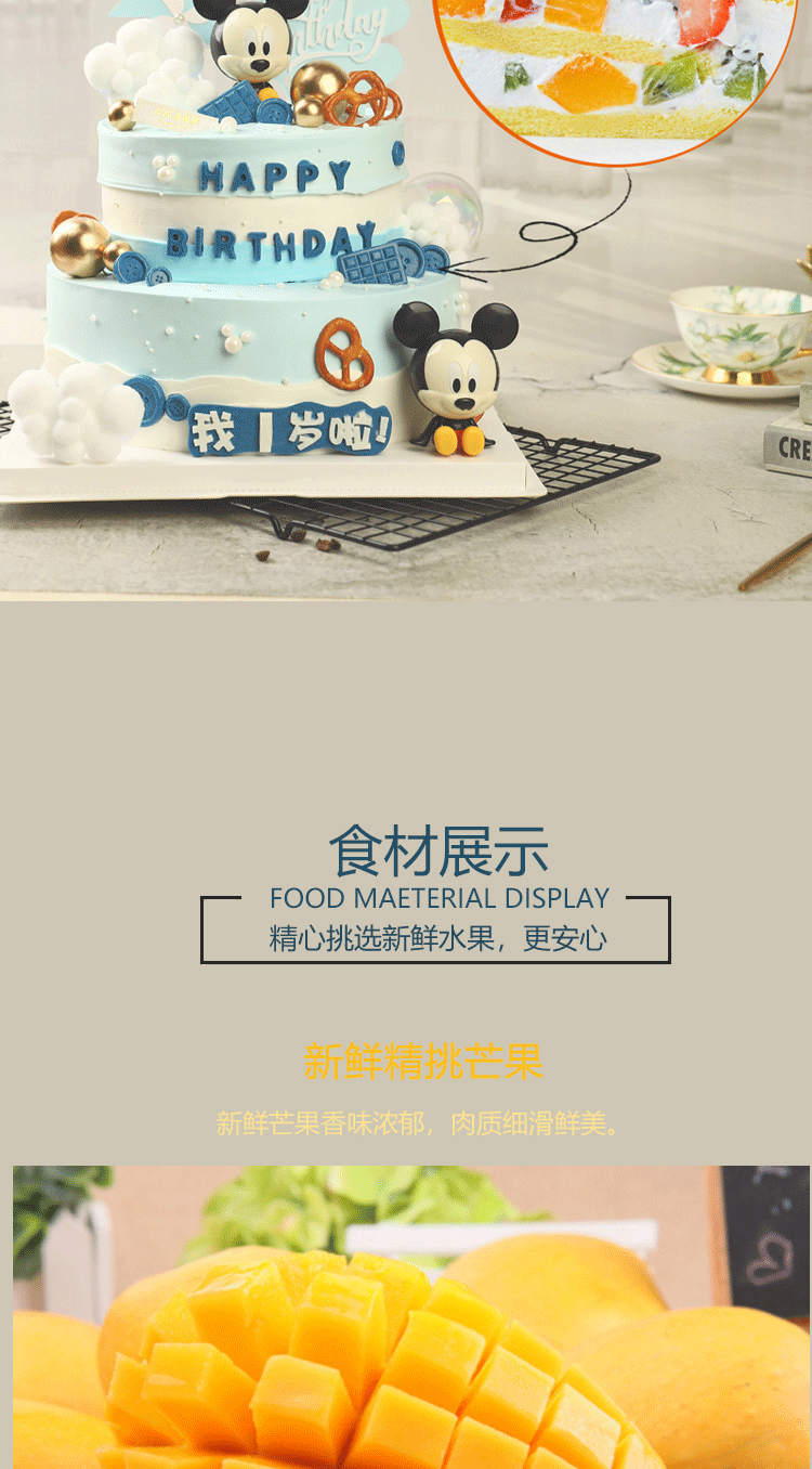 【周岁纪念版】米奇鲜果蛋糕,男女版可选【惠州】